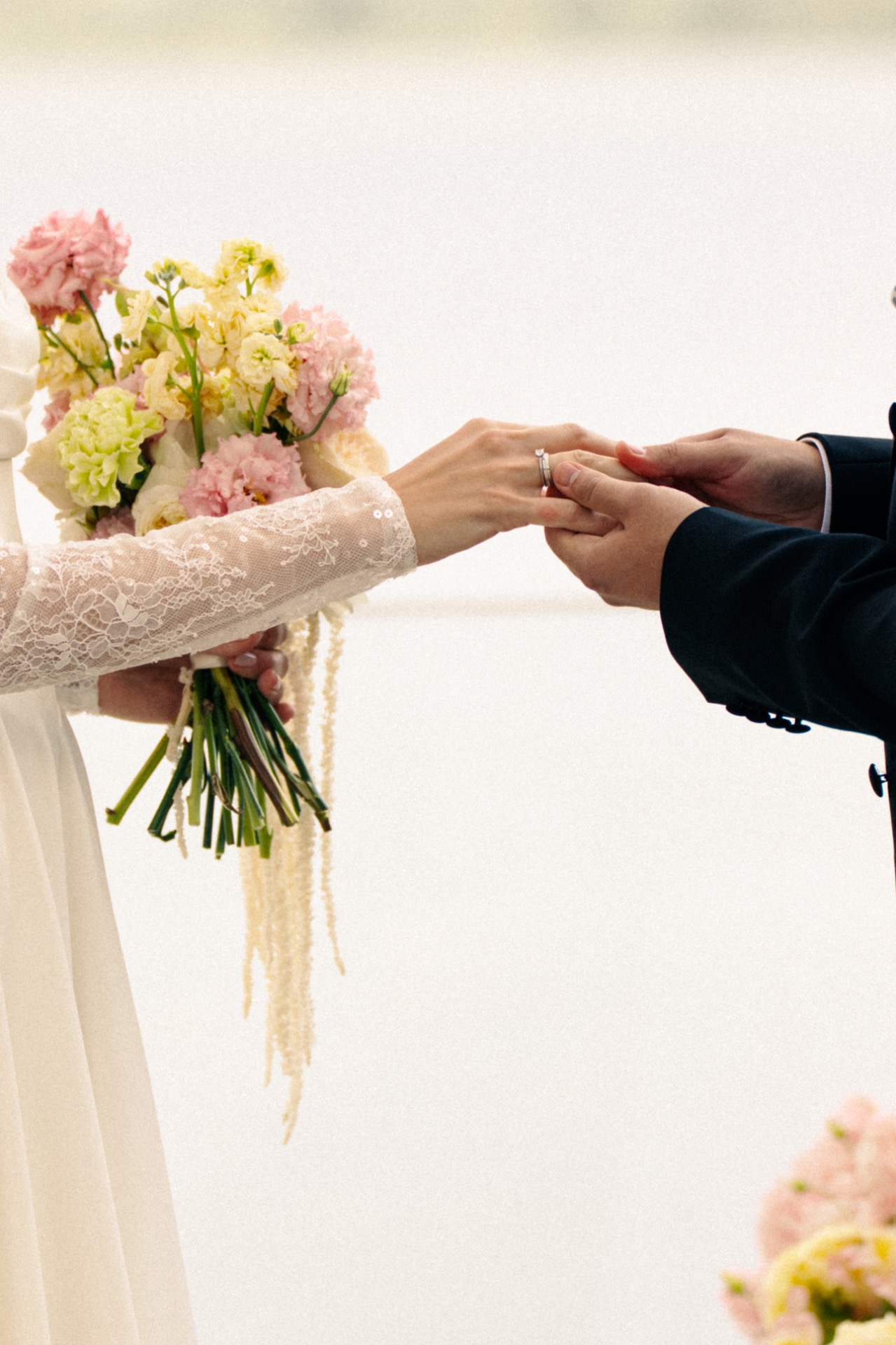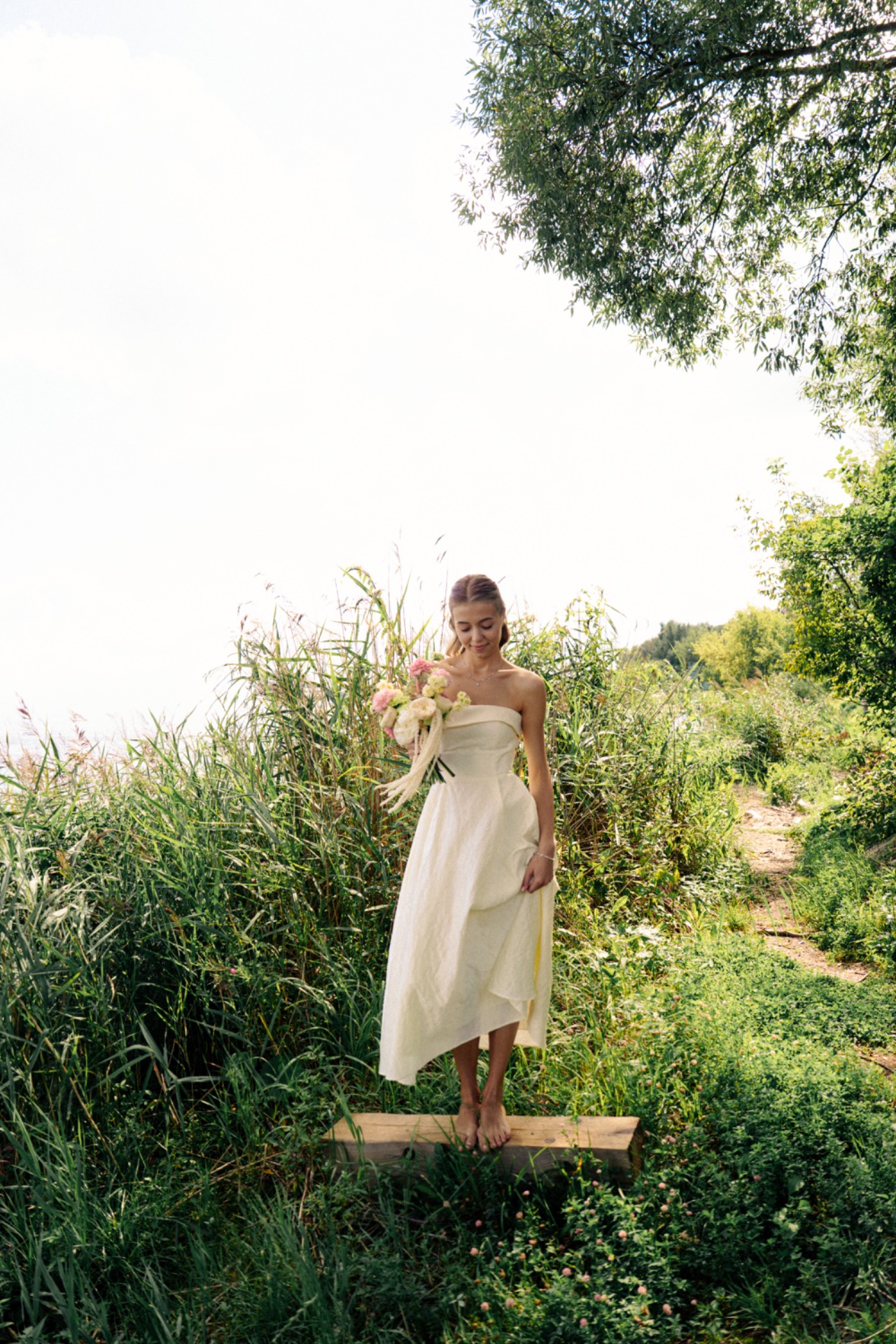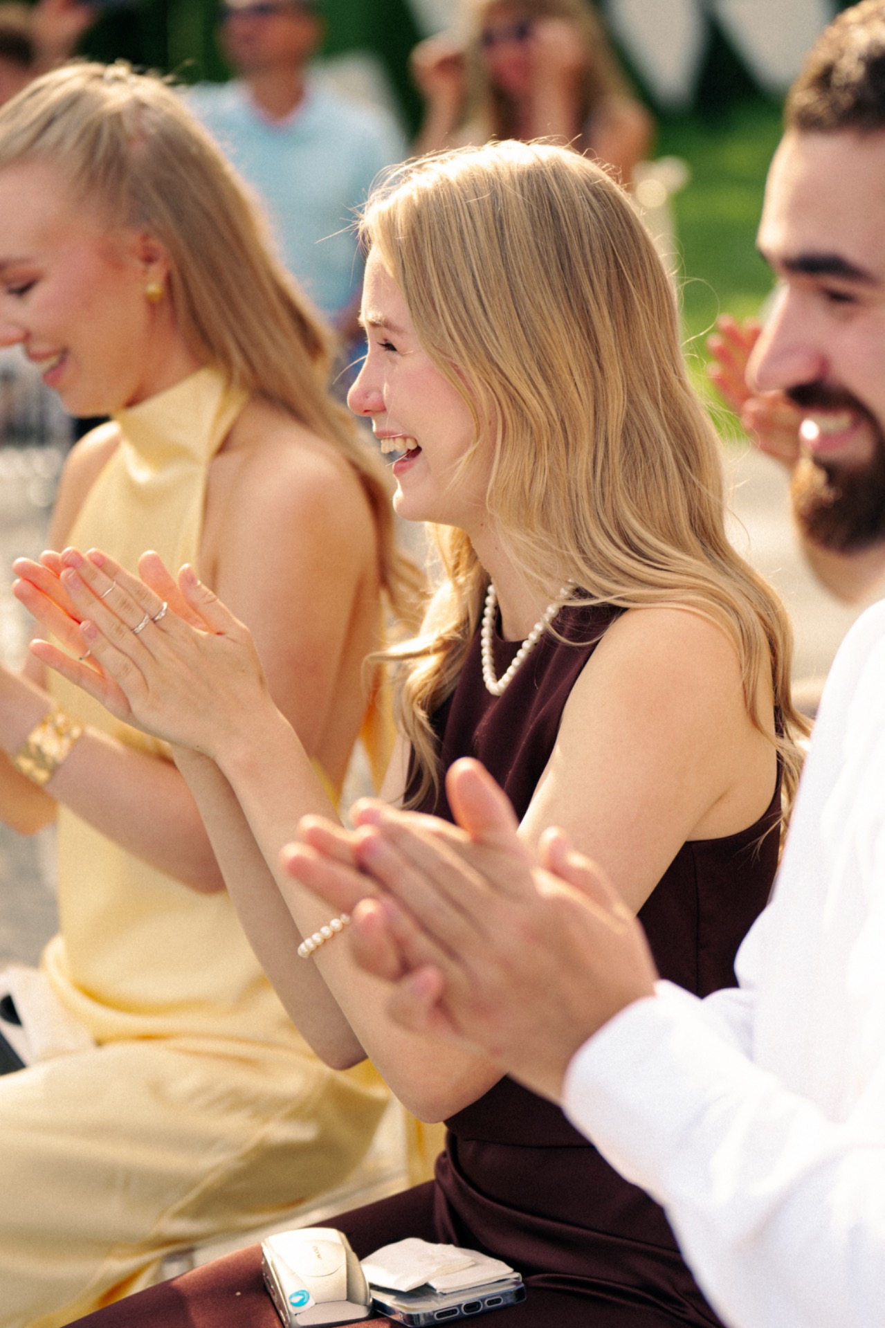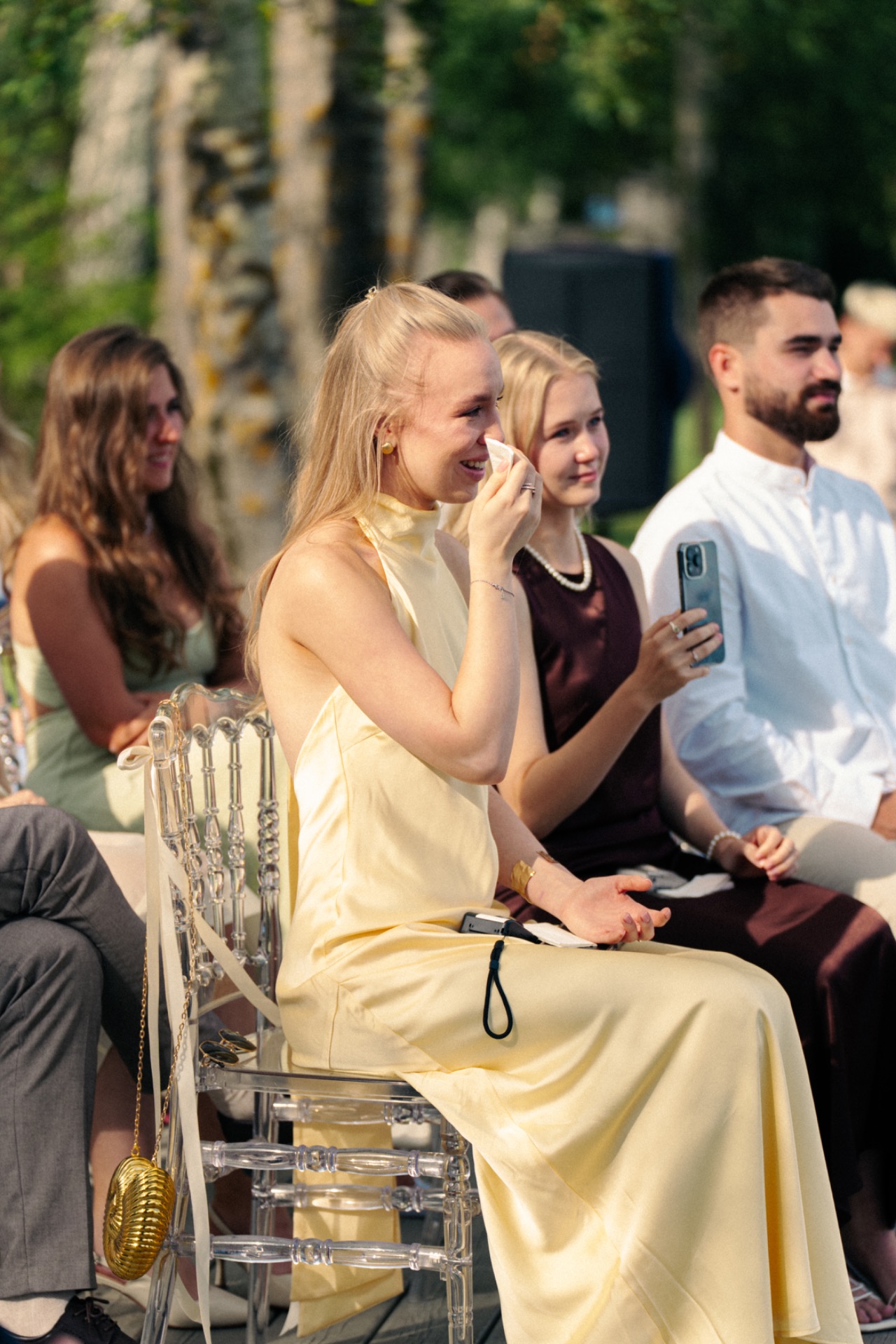 Мы провели небольшую утреннюю фотосессию, побегали босиком по траве и начали готовиться к церемонии. Она была очень трогательной — мы успели посмеяться и поплакать. А ещё нам всё время хотелось обнимать и целовать друг друга. В тот момент любовь просто переполняла нас!