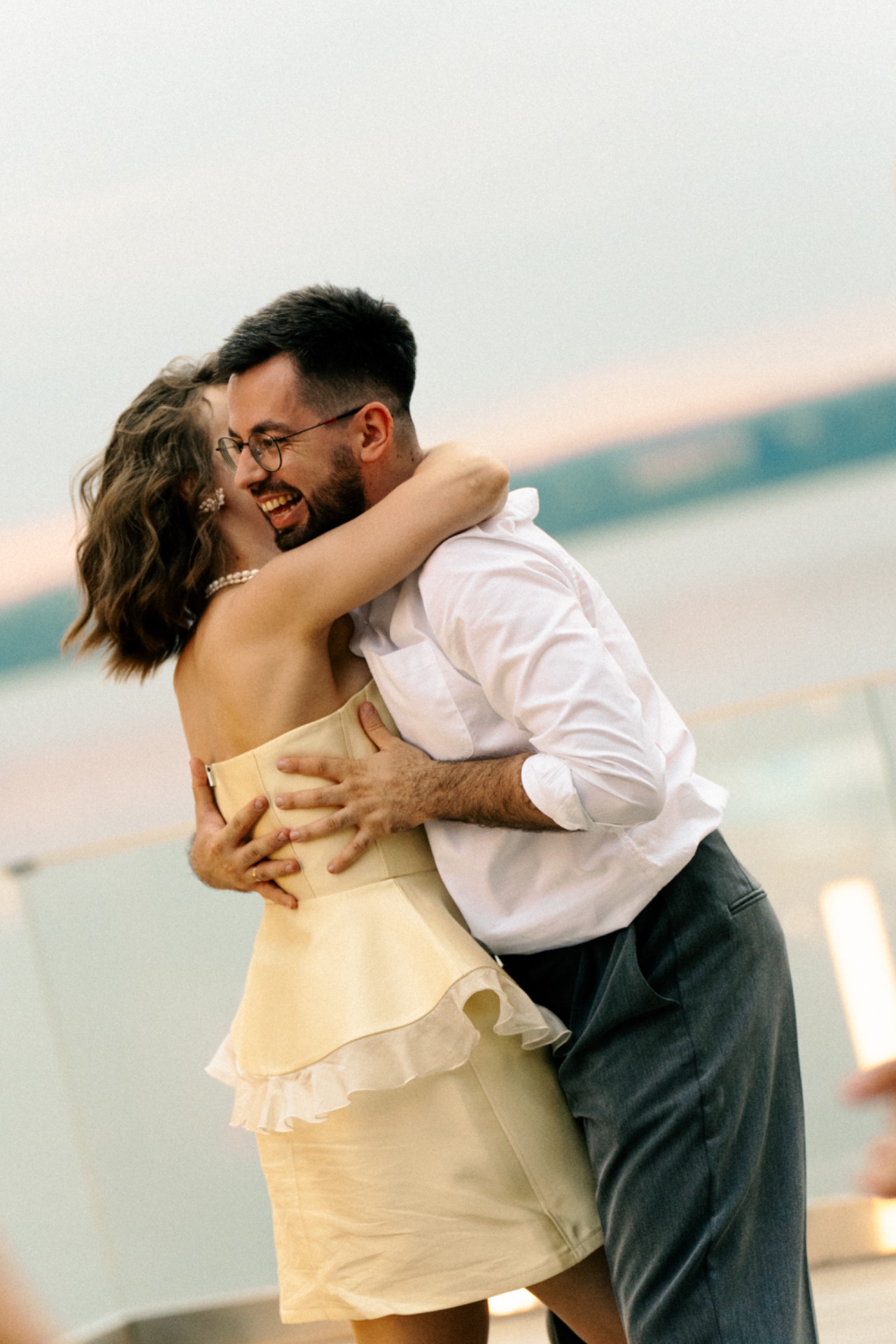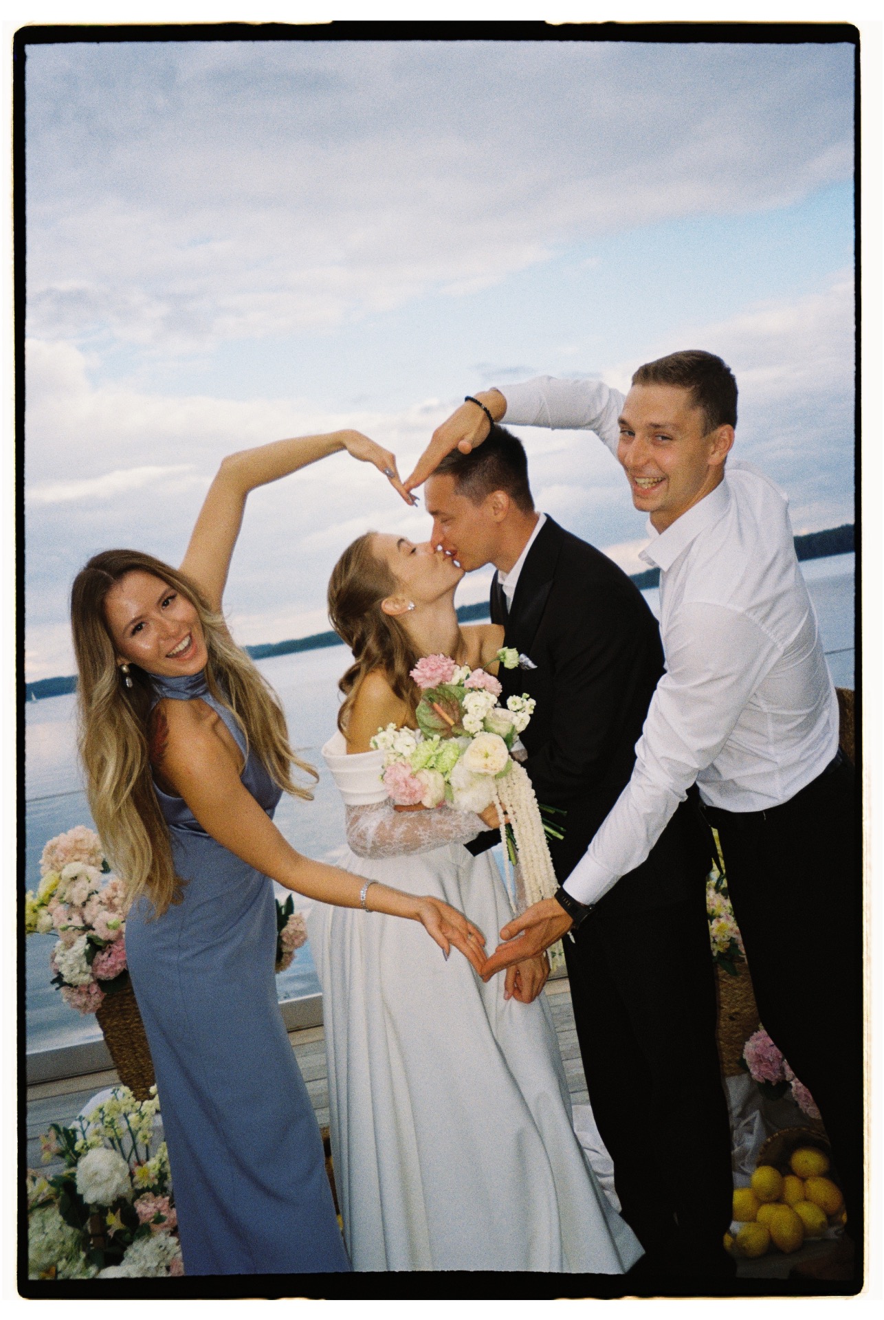 Так как мы приехали в период межсезонья, пирс с лодочками был закрыт. Но Лёша каким-то чудом сумел договориться, и его открыли только для нас двоих. Там Лёша встал на одно колено и произнёс: «Я хочу создать с тобой семью». Момент был настолько трогательным, что все воспоминания о нём у меня до сих пор как в тумане. Это было невероятно романтично.
