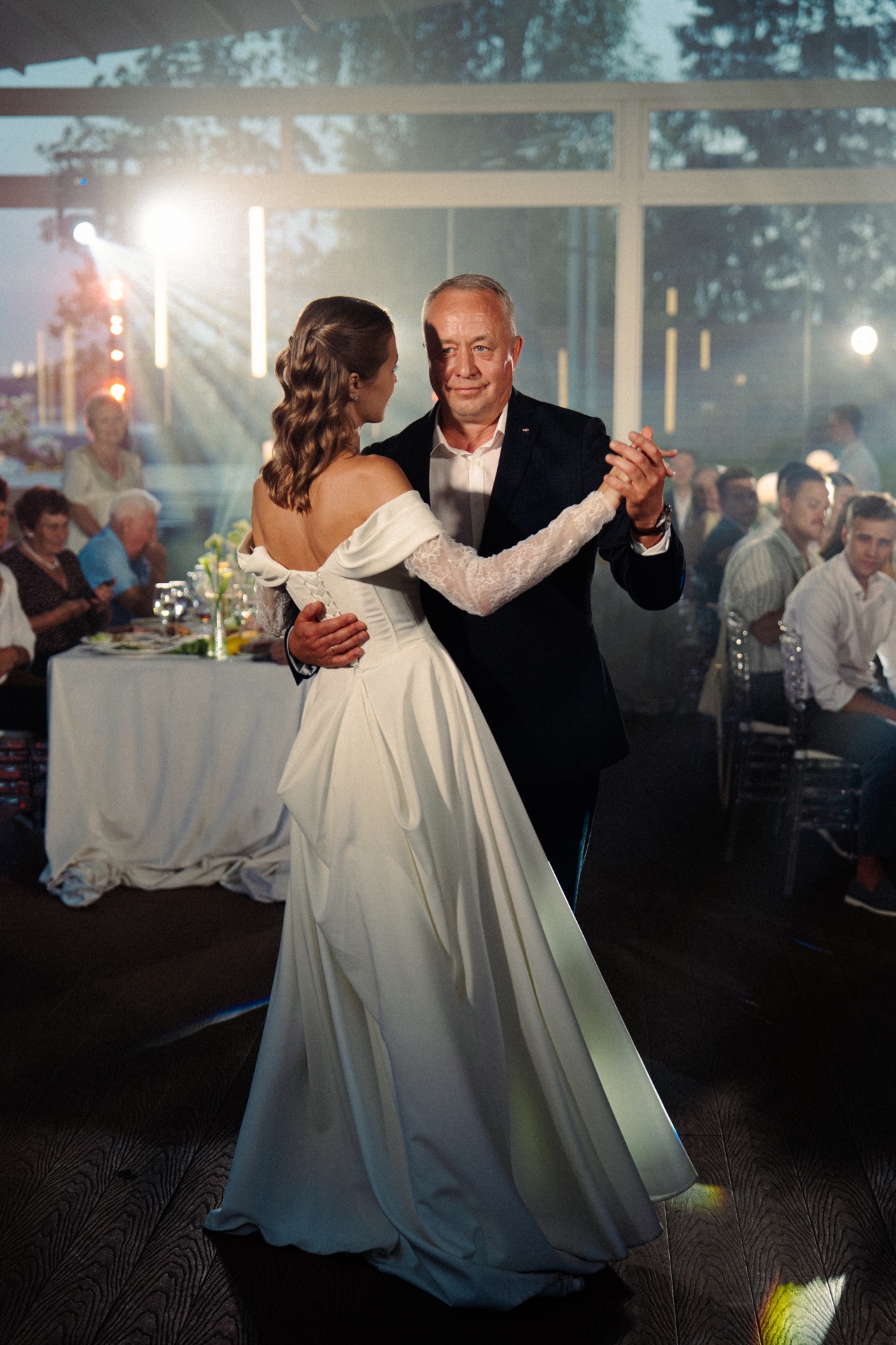 Все тосты наших гостей были очень искренними и душевными. Особенно трогательными моментами праздника стали танец с папой и наш первый танец с Лёшей. Мы с папой кружились под песню Агутина «Отец рядом с тобой». А половину своего первого танца мы с Лёшей разделили вместе с гостями, сделав этот момент ещё теплее.