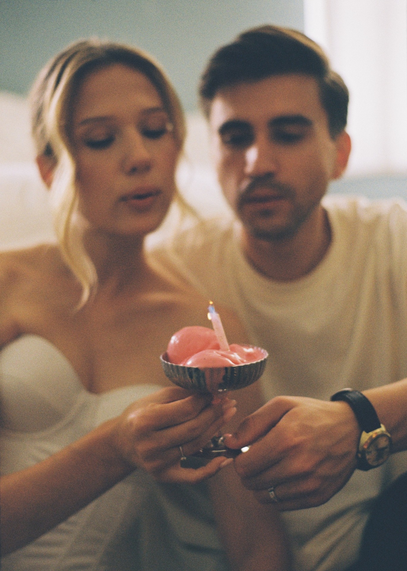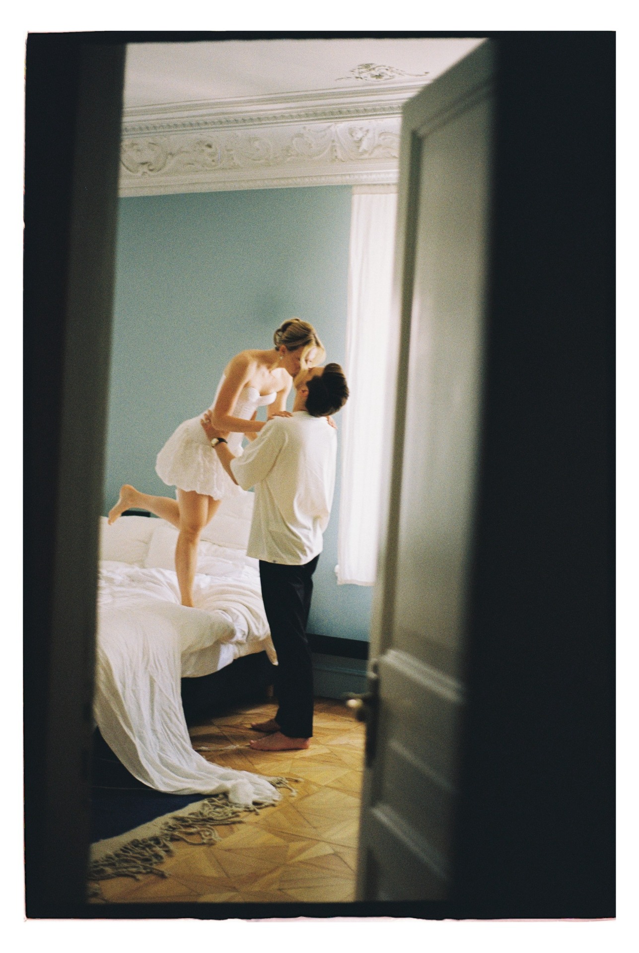 В первый день у нас была роспись в Грибоедовском ЗАГСе и фотосессия, которую гроза превратила в весёлое приключение: мы бегали по лужам, смеялись и были абсолютно счастливы. После мы укрылись в отеле «Рихтер», где и началось наше уютное свадебное утро.