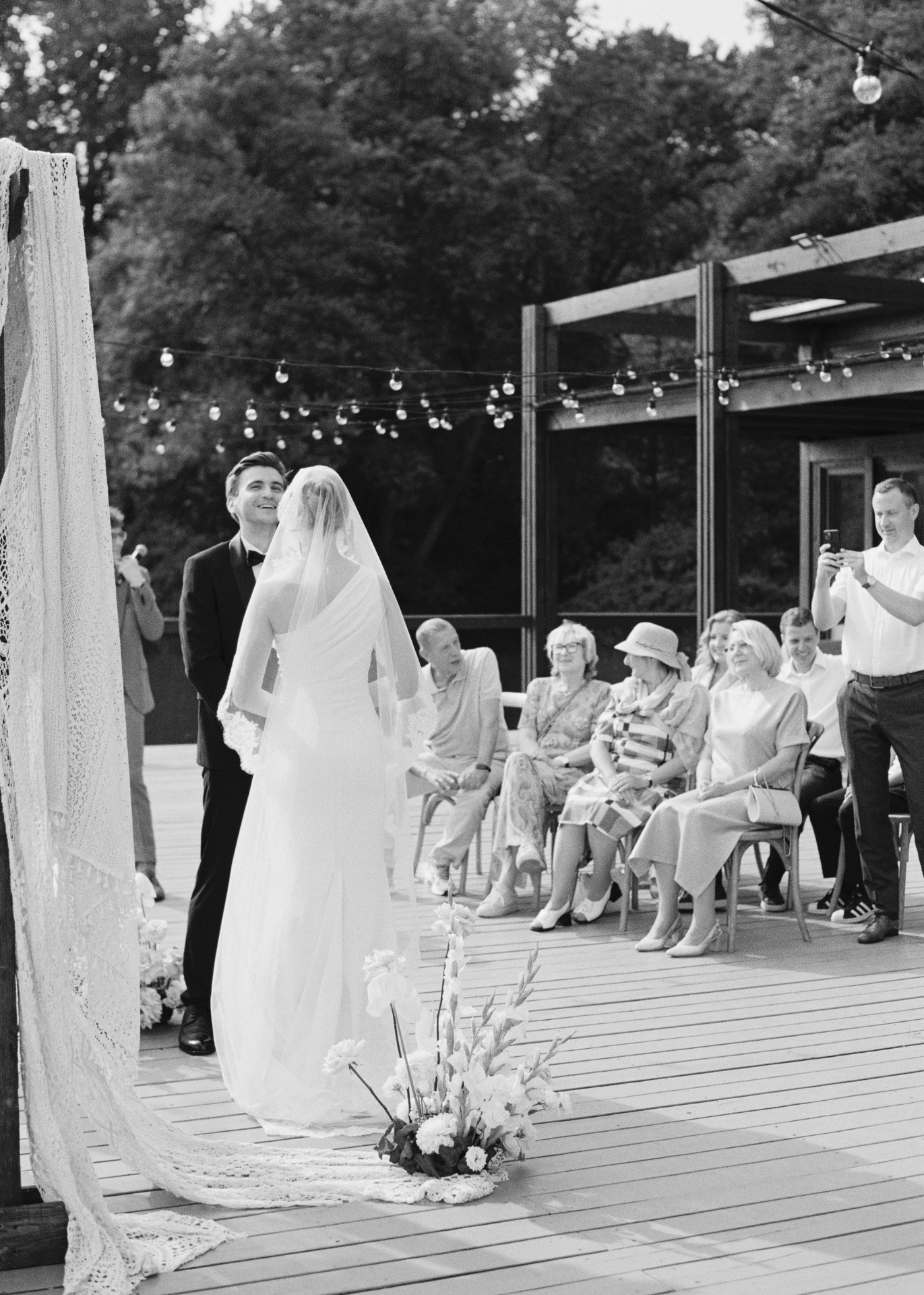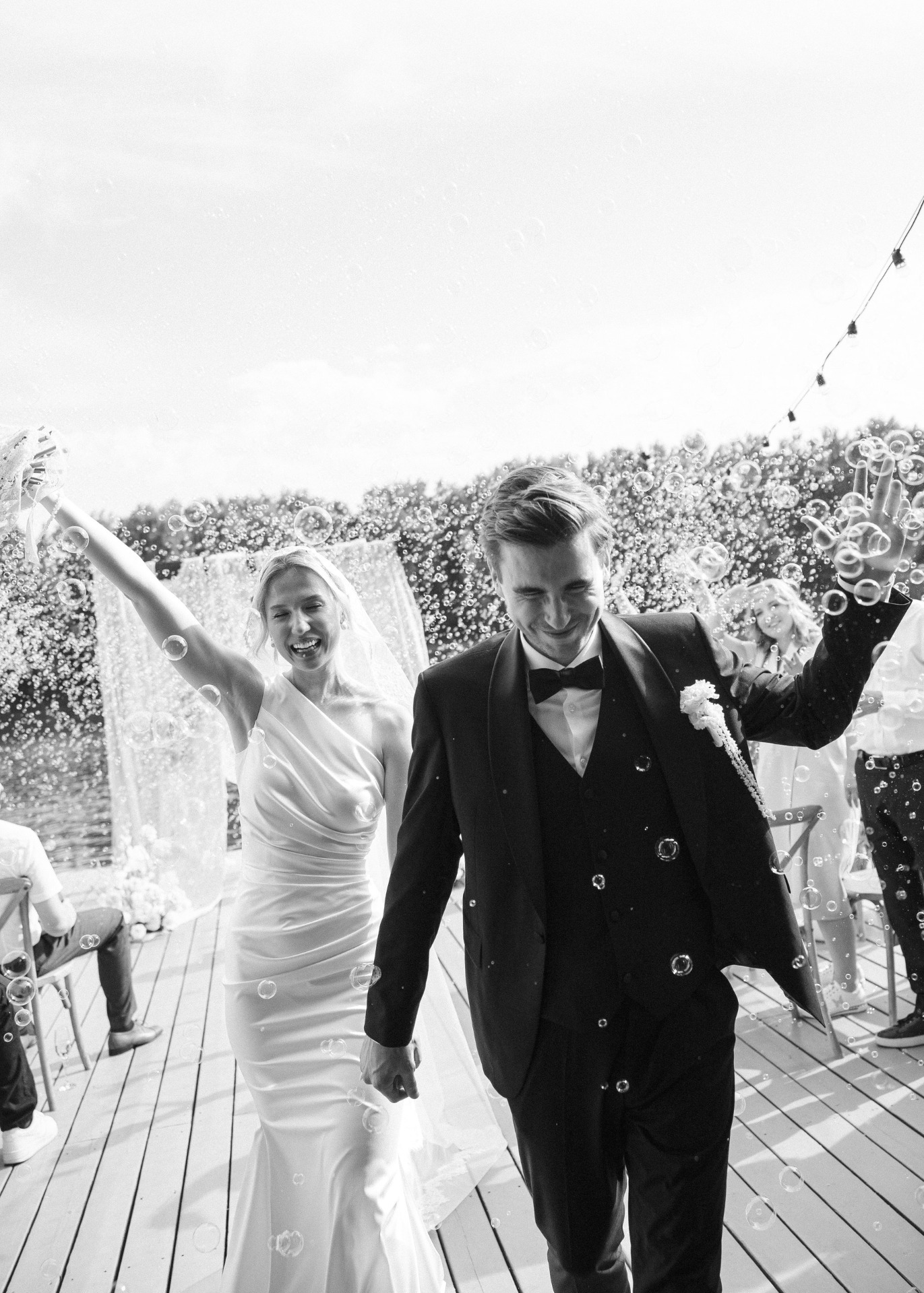 Перед выходом на церемонию моё сердце колотилось, но стоило встретиться взглядами с Кириллом — и я поймала абсолютное спокойствие. Наш близкий друг провёл церемонию, гости окружили нас мыльными пузырями, и это было по-настоящему волшебно.