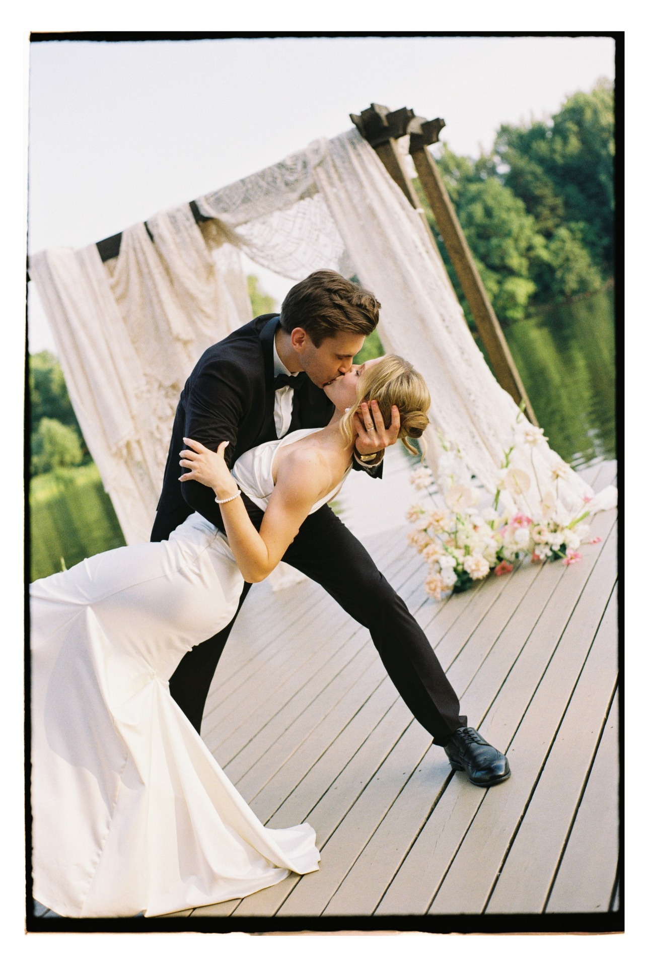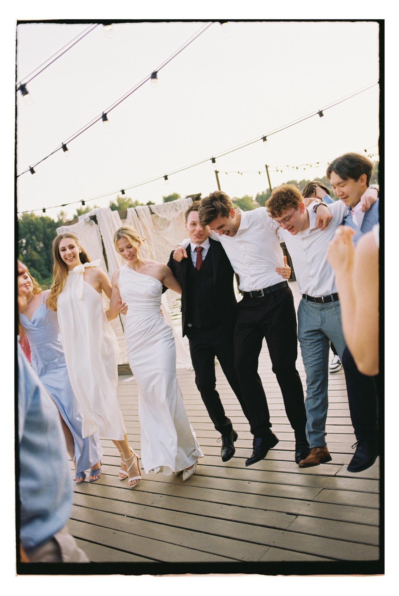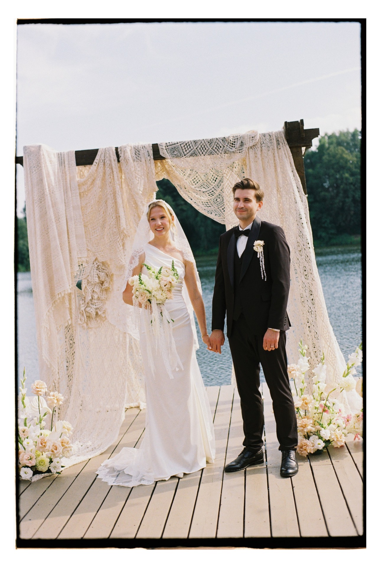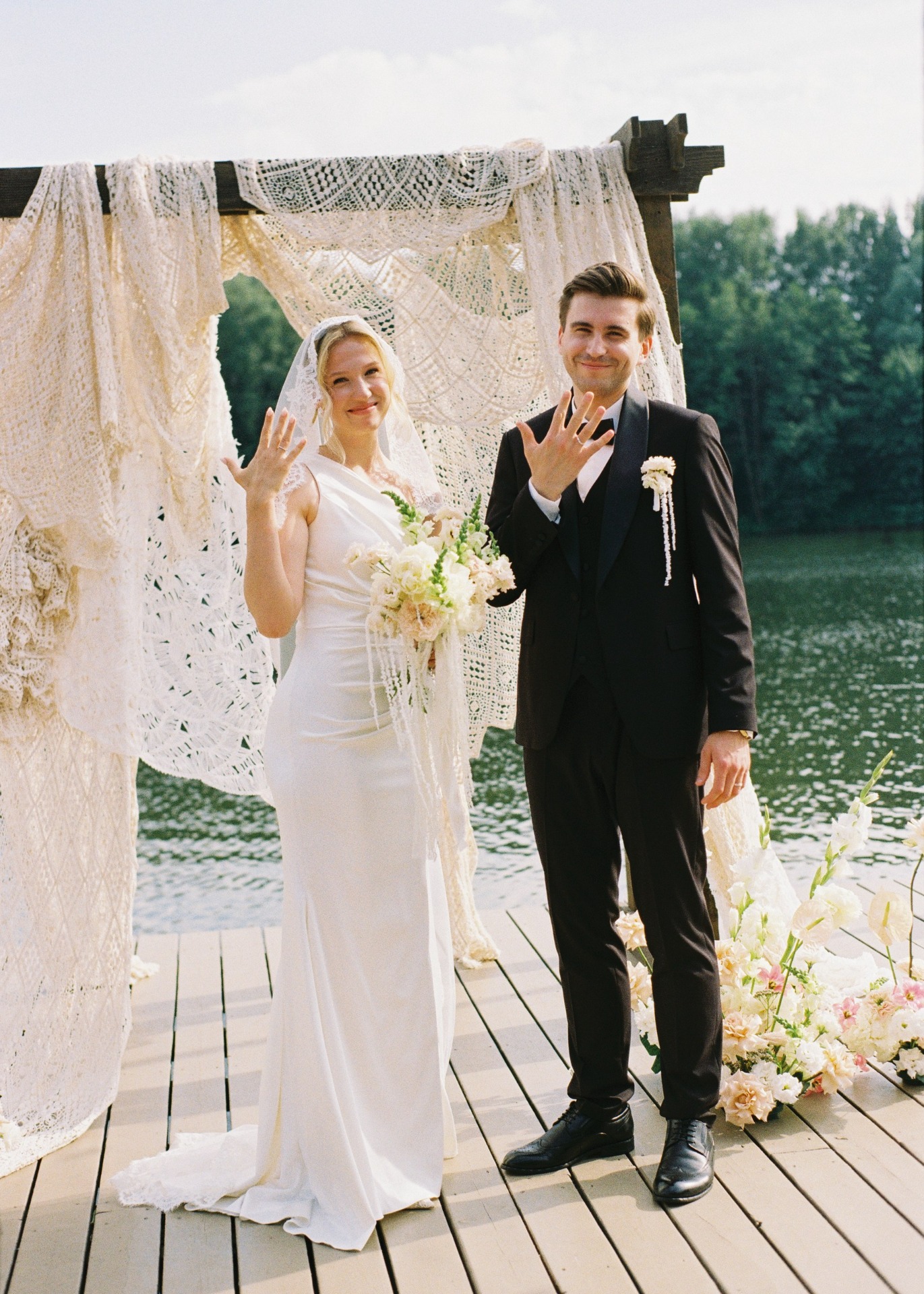 Мы решили разделить роспись и торжество: в ЗАГС пригласили только самых близких, а свадьбу отметили отдельно — на природе, у пруда в лесу. Нам хотелось уединения и того самого ощущения, как в момент предложения на диком пляже.