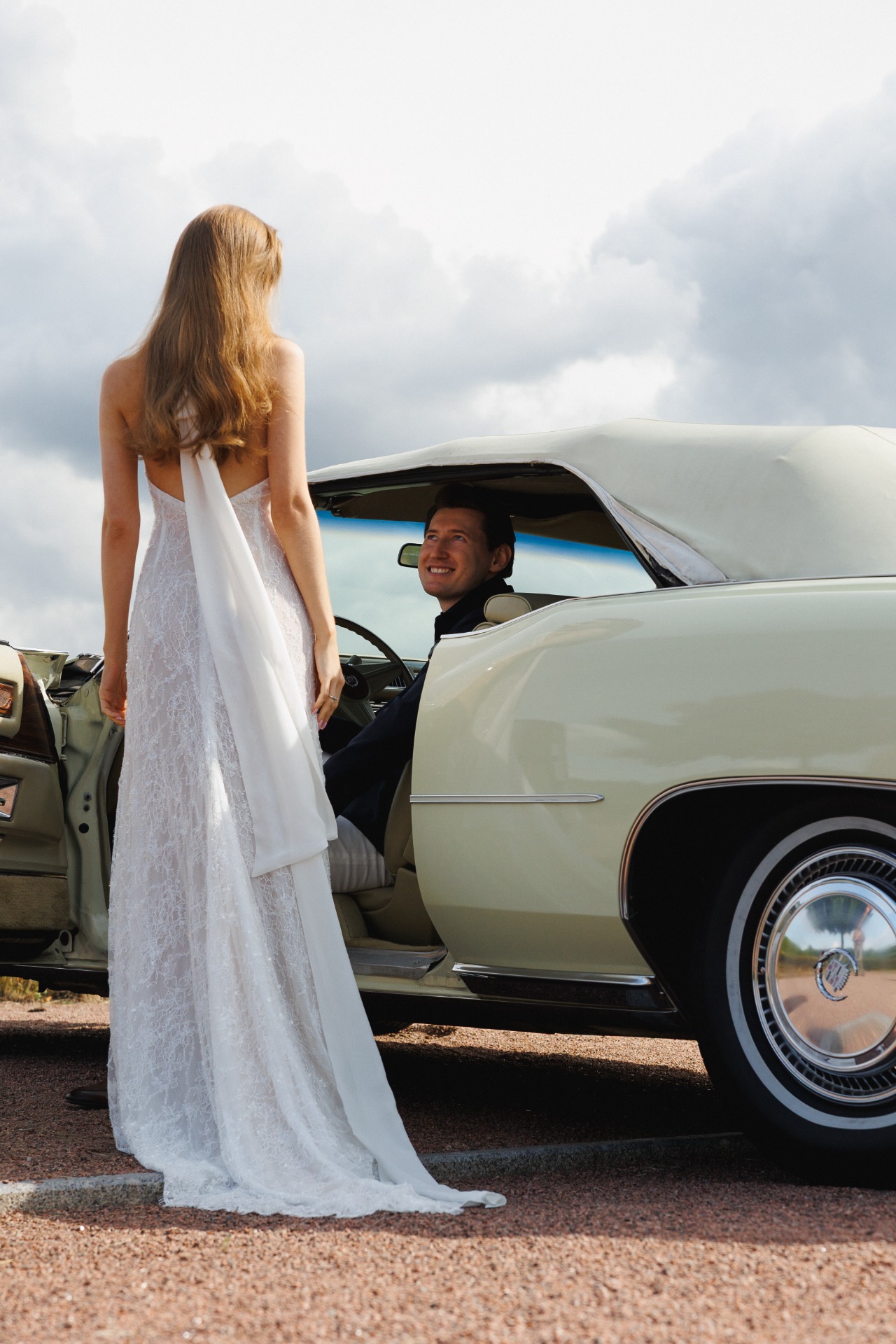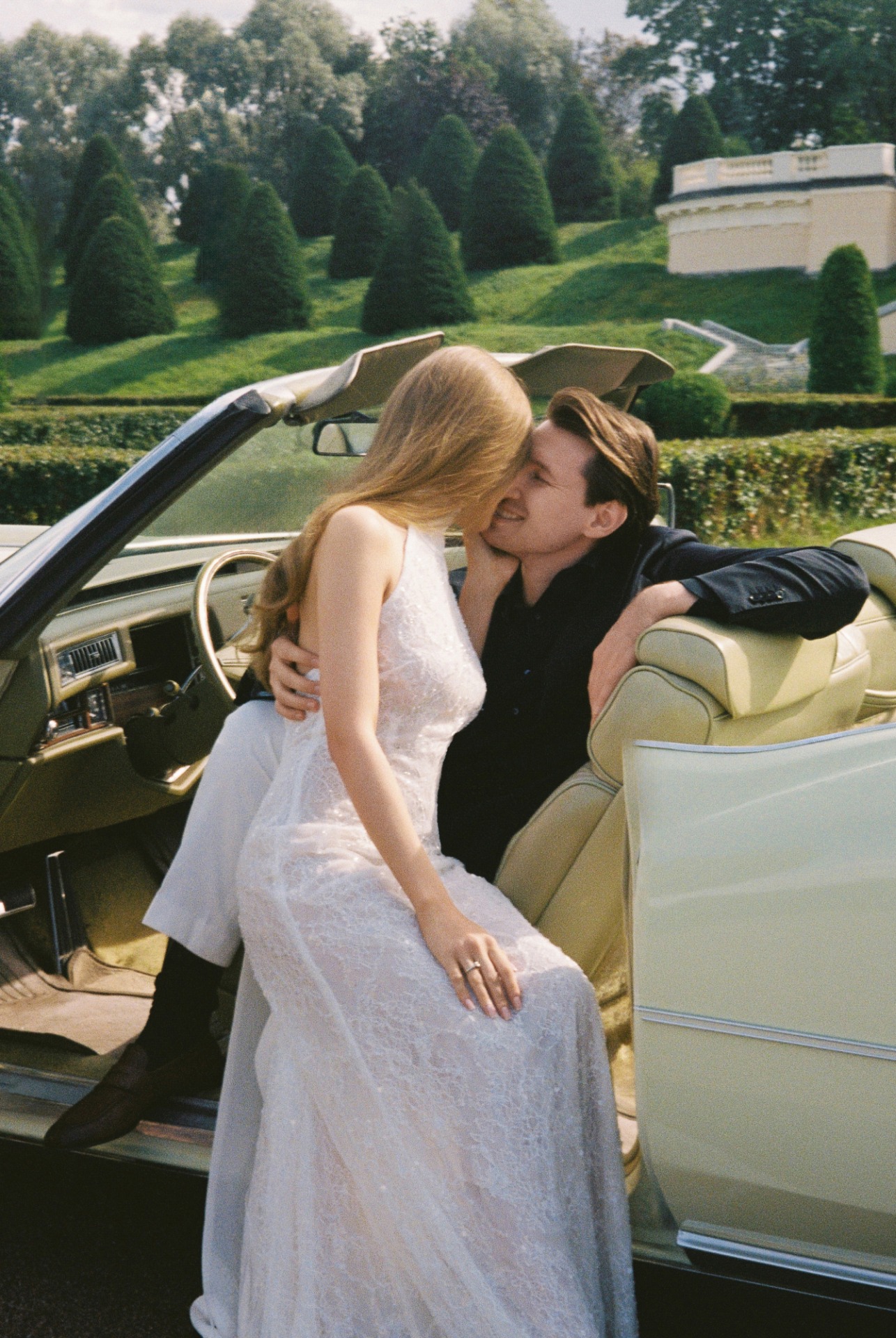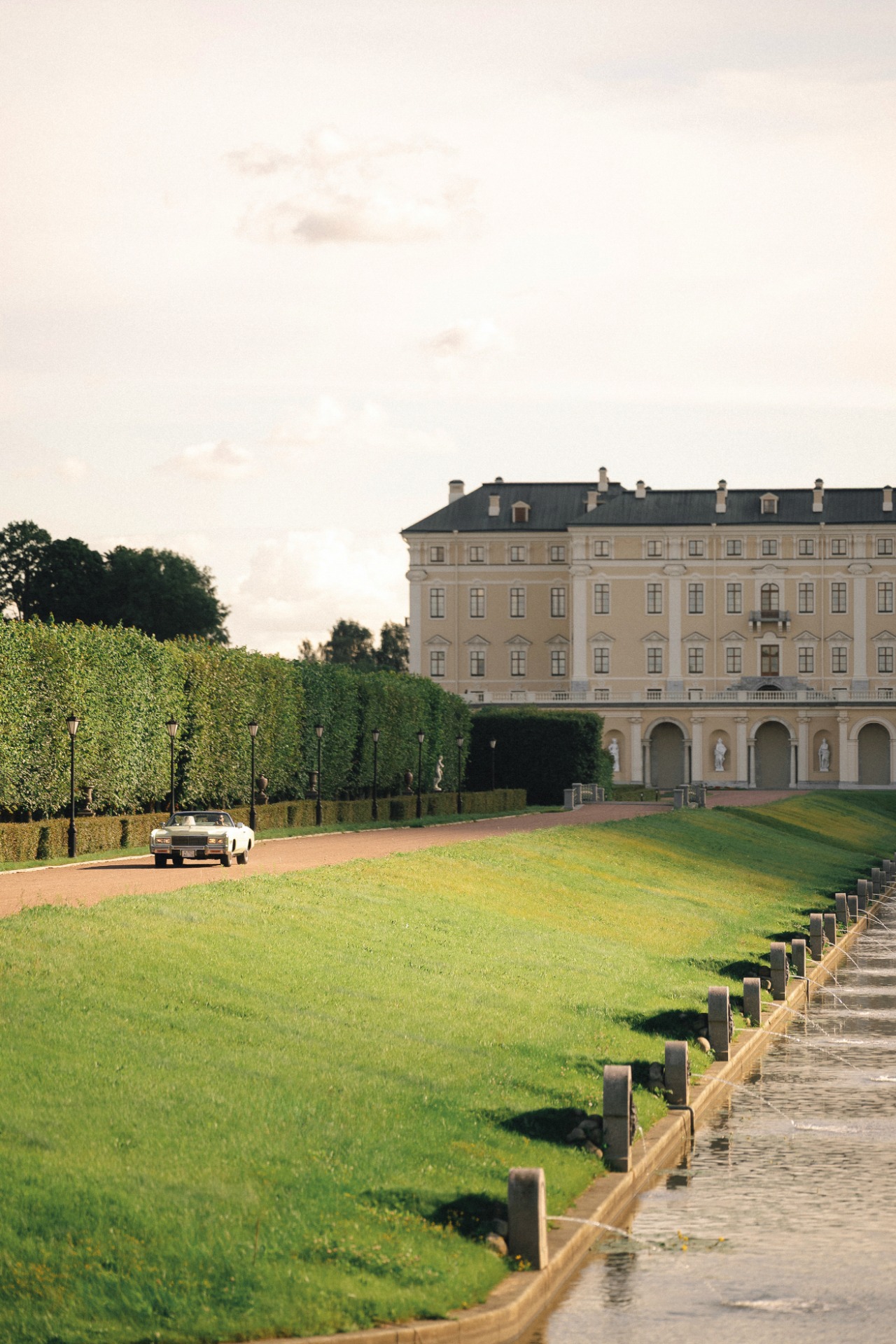 По сценарию я должна была эффектно появиться, подъехав на ретро-машине к Петровскому острову, где меня уже ждали Георгий и гости. С самого утра было пасмурно, но в момент моего появления вышло солнце.