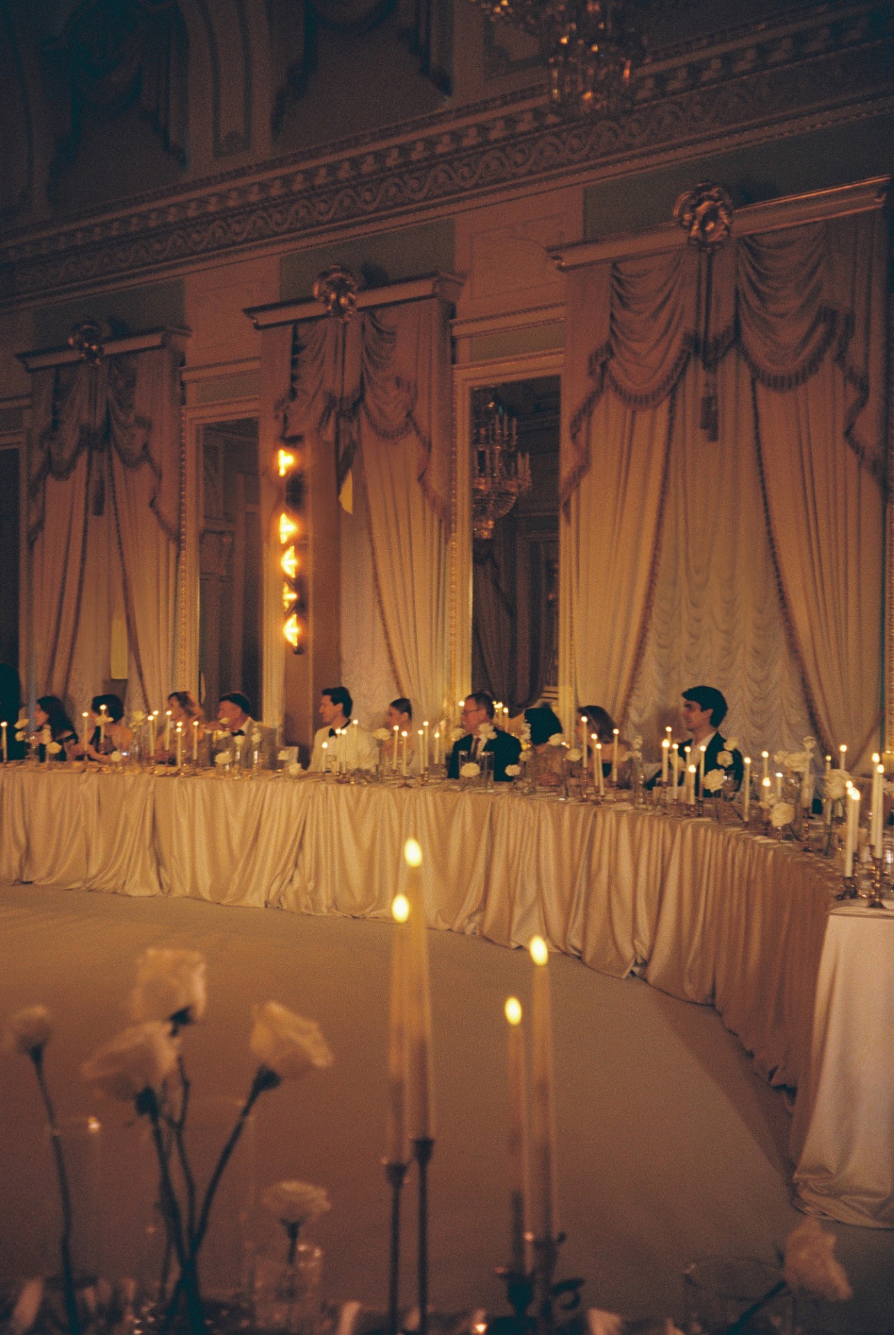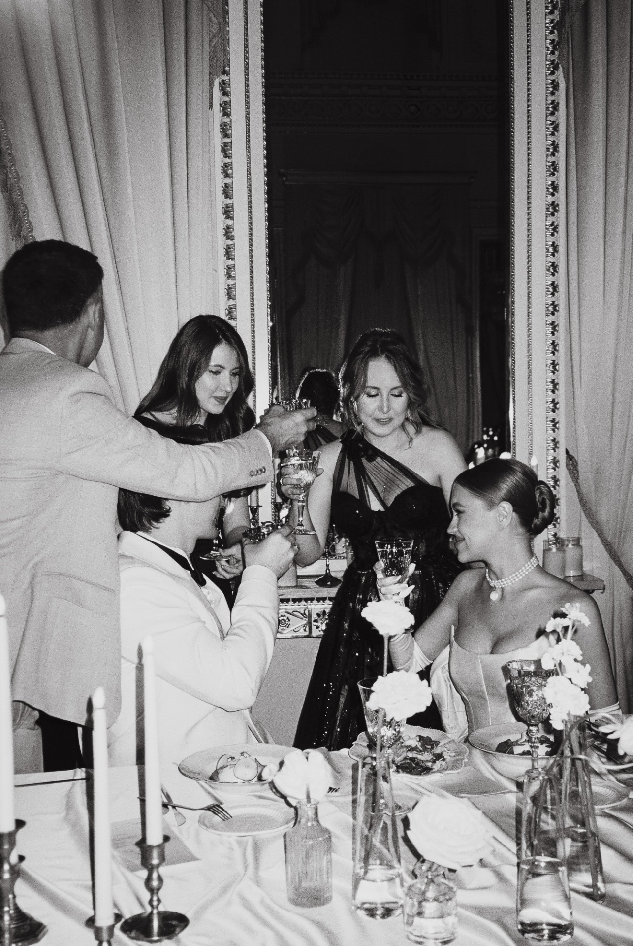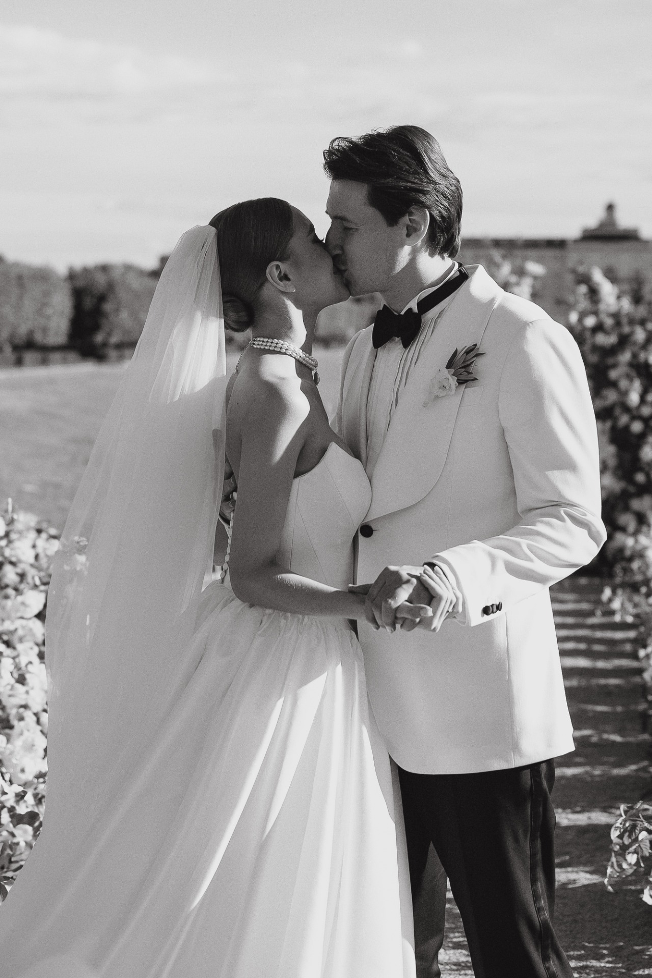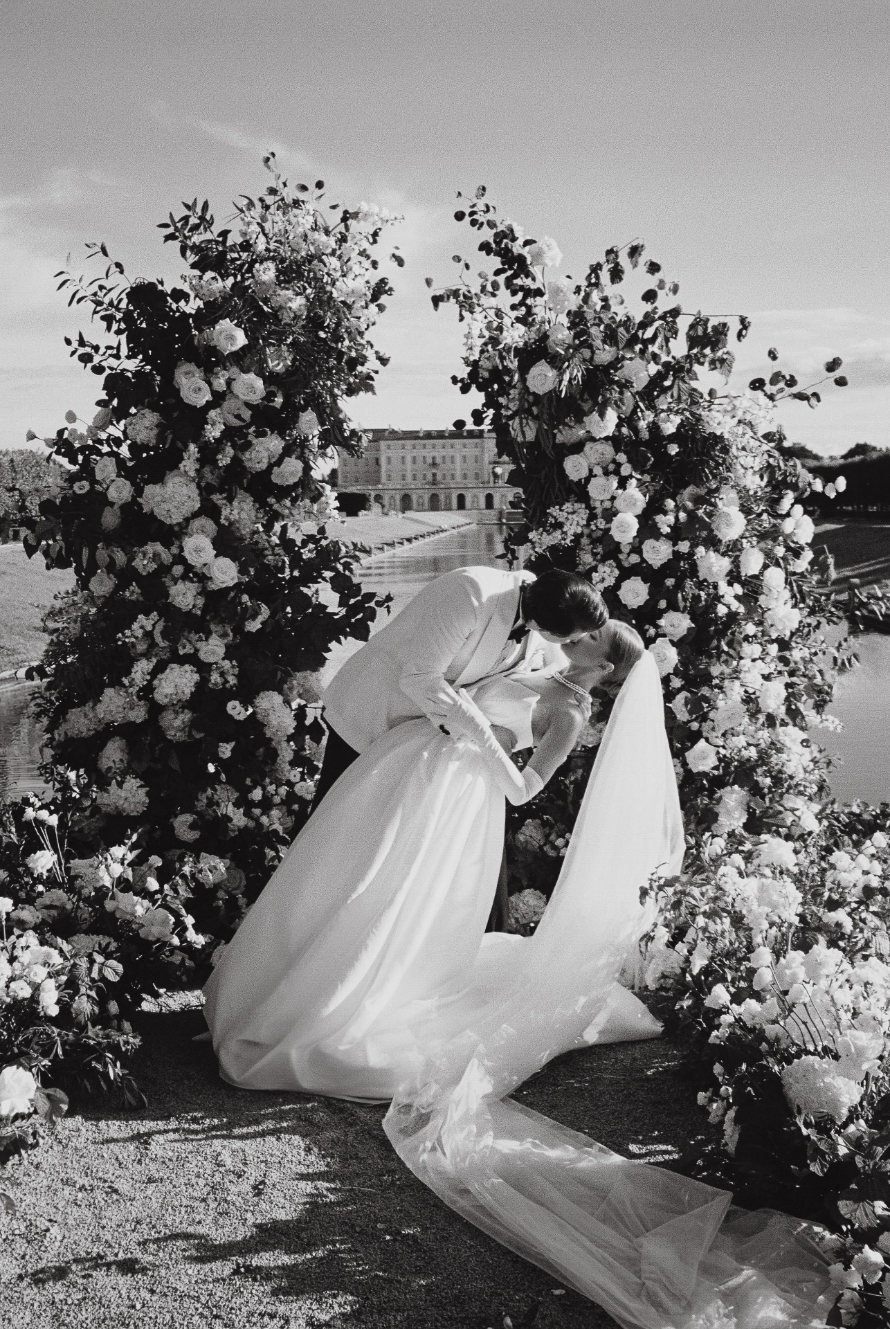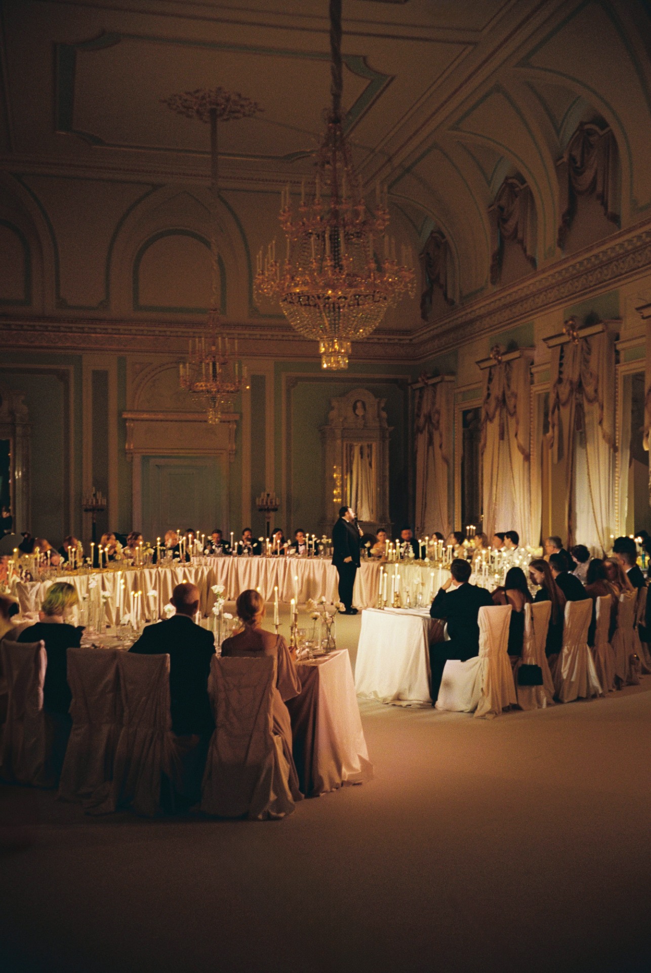 Организация далась нам непросто. Мы точно знали, чего хотим: дворцовую эстетику, итальянское настроение, но с уважением к русским традициям. Аутентичность и изысканность были нашими главными ориентирами. Никакого пластика, искусственных, бутафорских материалов. Так, например, мы нашли старинные фотографии Константиновского дворца с кованой садовой мебелью на террасе и решили отыскать точно такие же стулья для церемонии. Декоратор закупил их под нас, и приехали они буквально за неделю до мероприятия.