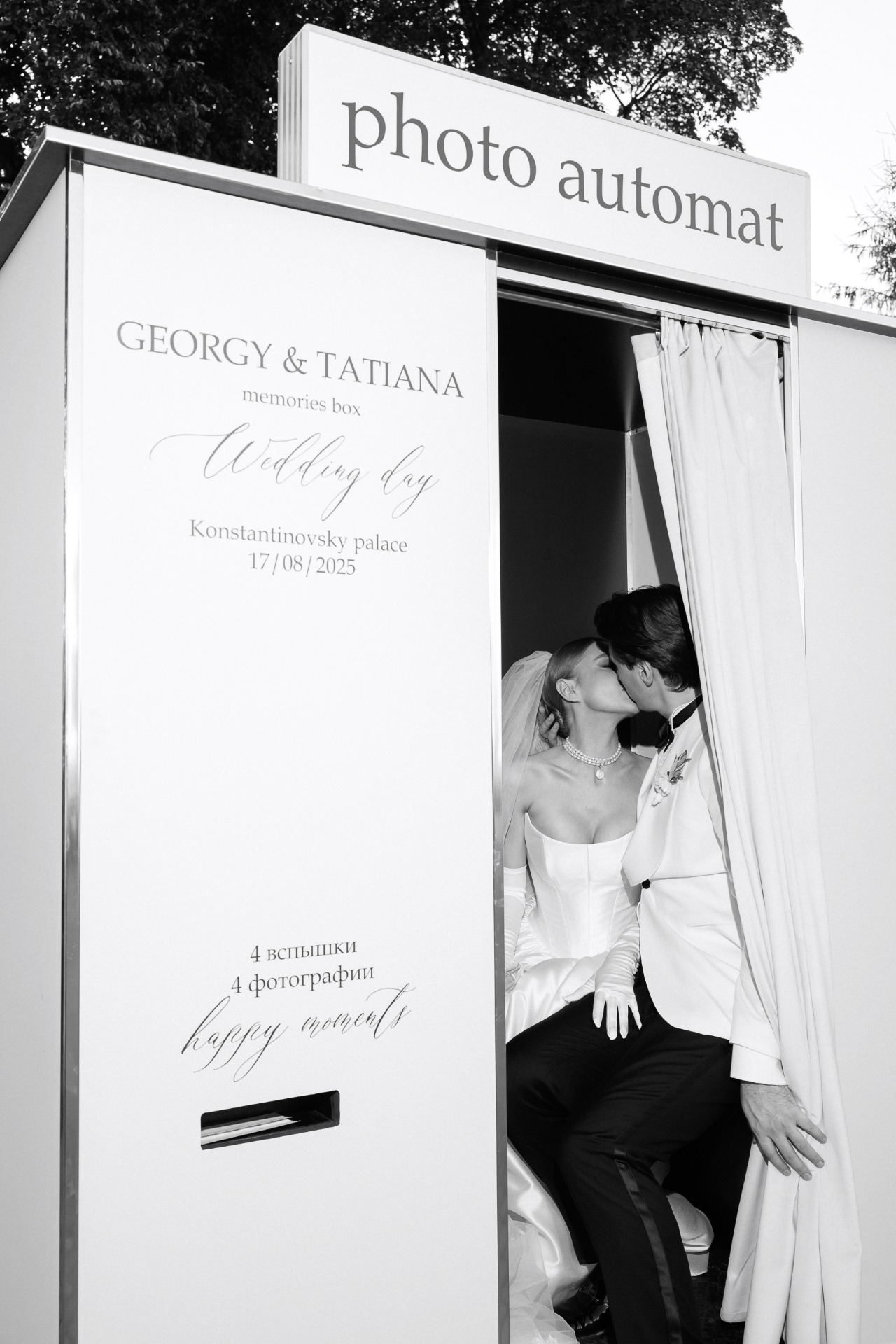 В зоне велкома мы предусмотрели локацию с художницей, которая рисовала портреты гостей, фотобудку и живой оркестр — всё это моя стопроцентная рекомендация! Активности очень понравились всем приглашённым.
