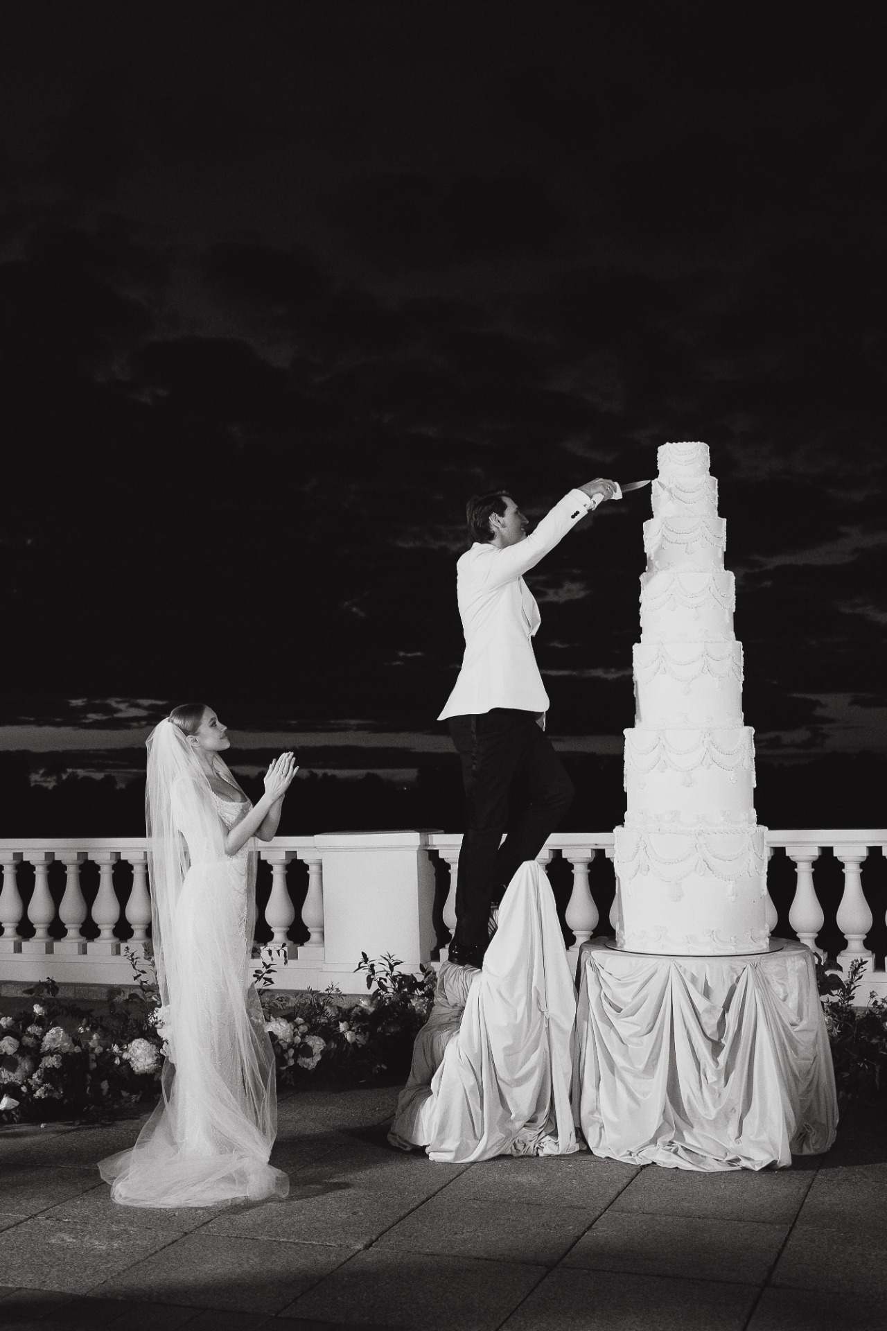 Мы решили отказаться от модных «плоских» тортов и заказали многоярусный двухметровый десерт. И ничуть об этом не пожалели!
