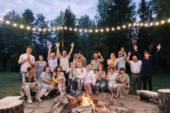 Идея была такая: уютный семейный праздник на природе, минимализм и легкость. Тёплая природная цветовая гамма, никаких торжественных нарядов, каблуков. Мы хотели, чтобы всем было комфортно. В декоре использовали зелень, деревянные спилы и свечи.