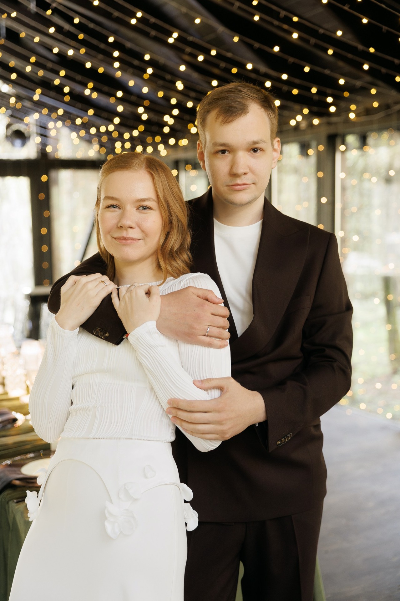 С костюмом жениха тоже была мини-эпопея: мы два дня бродили по торговым центрам, однако не могли найти ничего подходящего. В какой-то момент друг посоветовал Владу магазин костюмов, и там мы выбрали оверсайз-костюм шоколадного цвета.