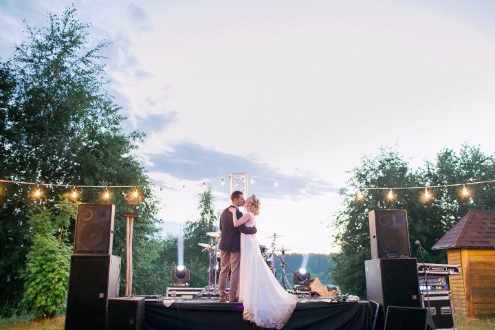 У нас была мини-сцена, где выступала кавер-группа «LIME». Это однозначно лучше всяких стандартных песен из колонок! Гости знали все песни, никто не сидел за столами, все танцевали, отдыхали и просто наслаждались атмосферой, гуляя по большой зеленой территории.