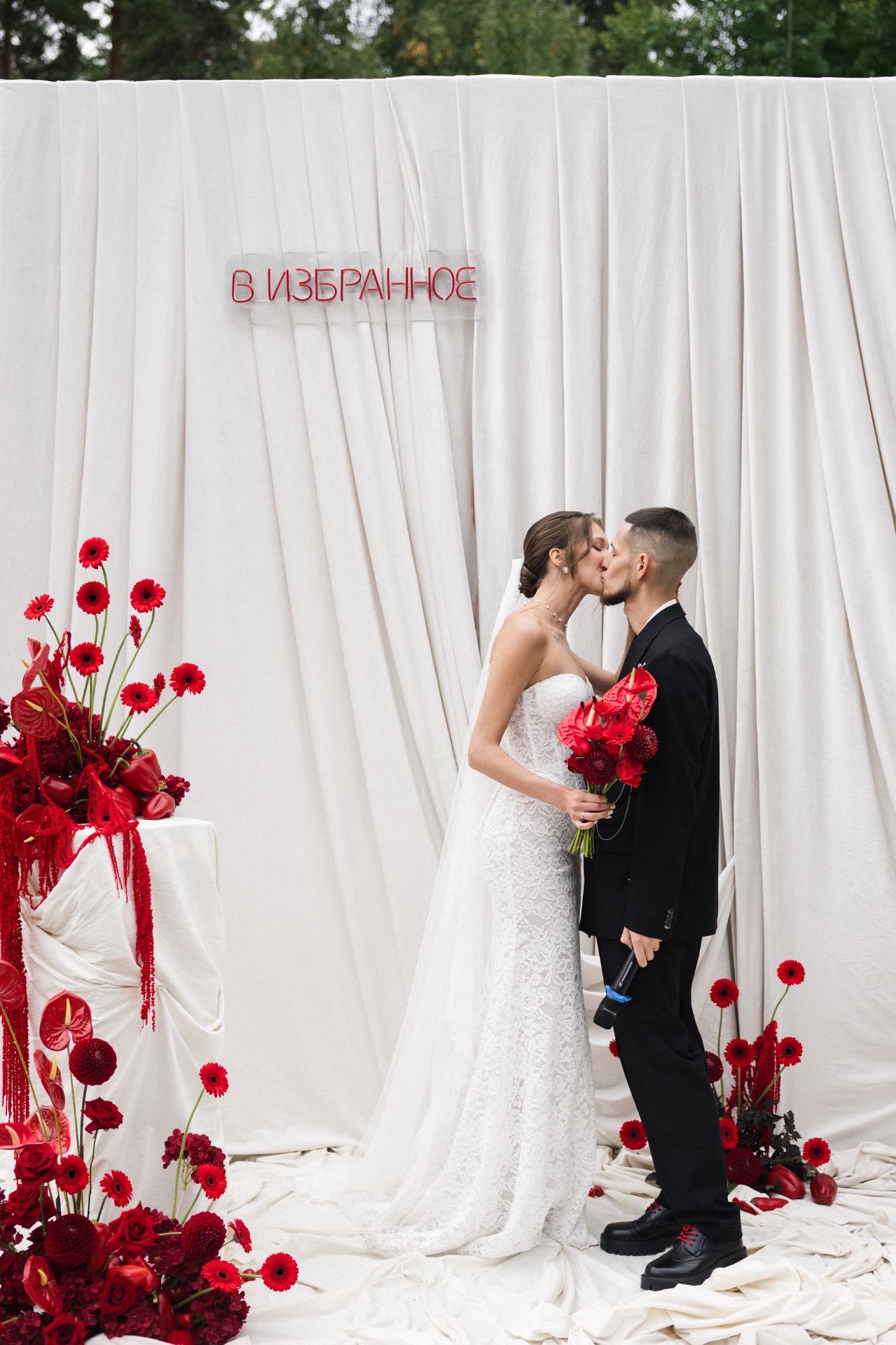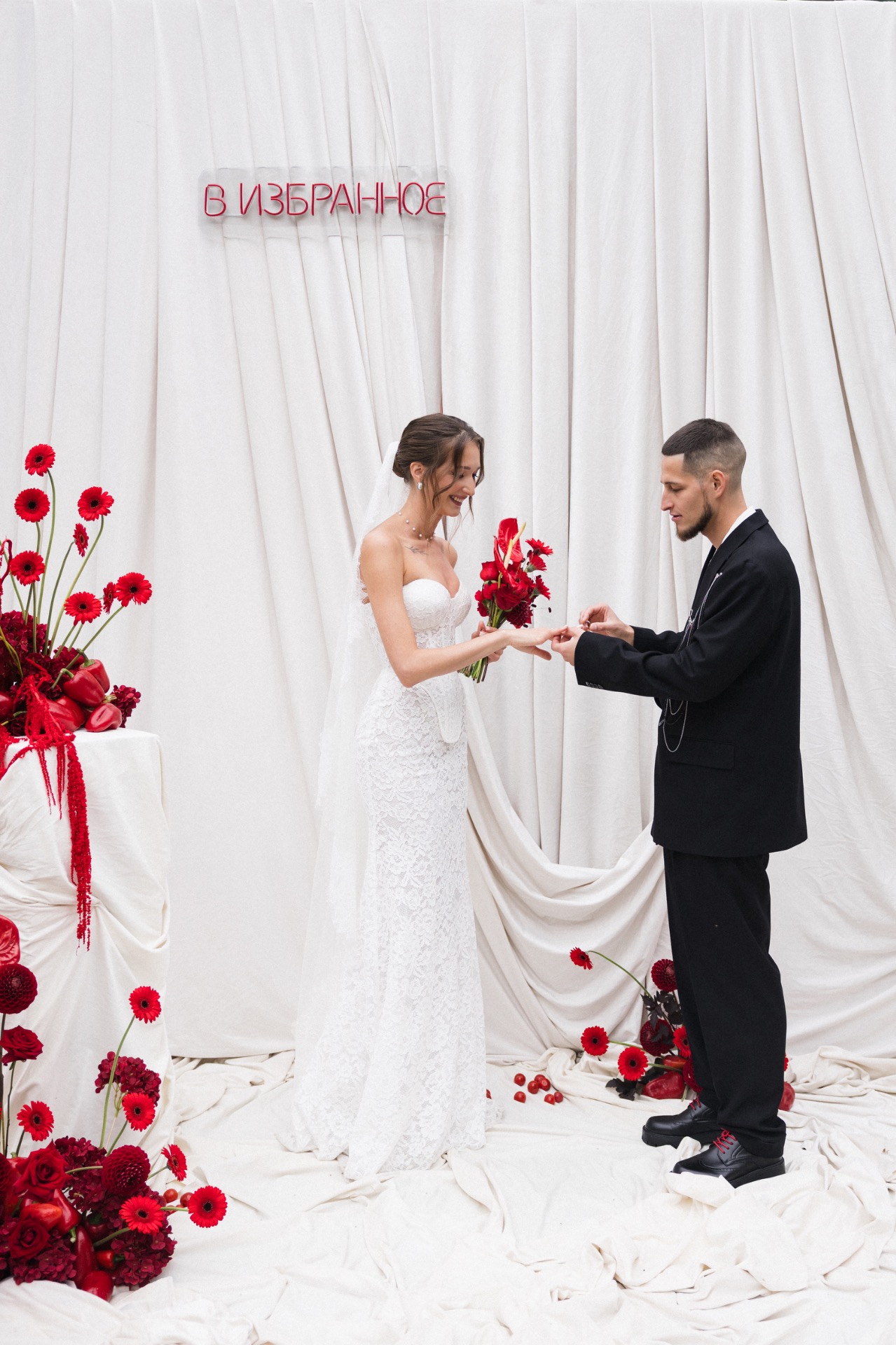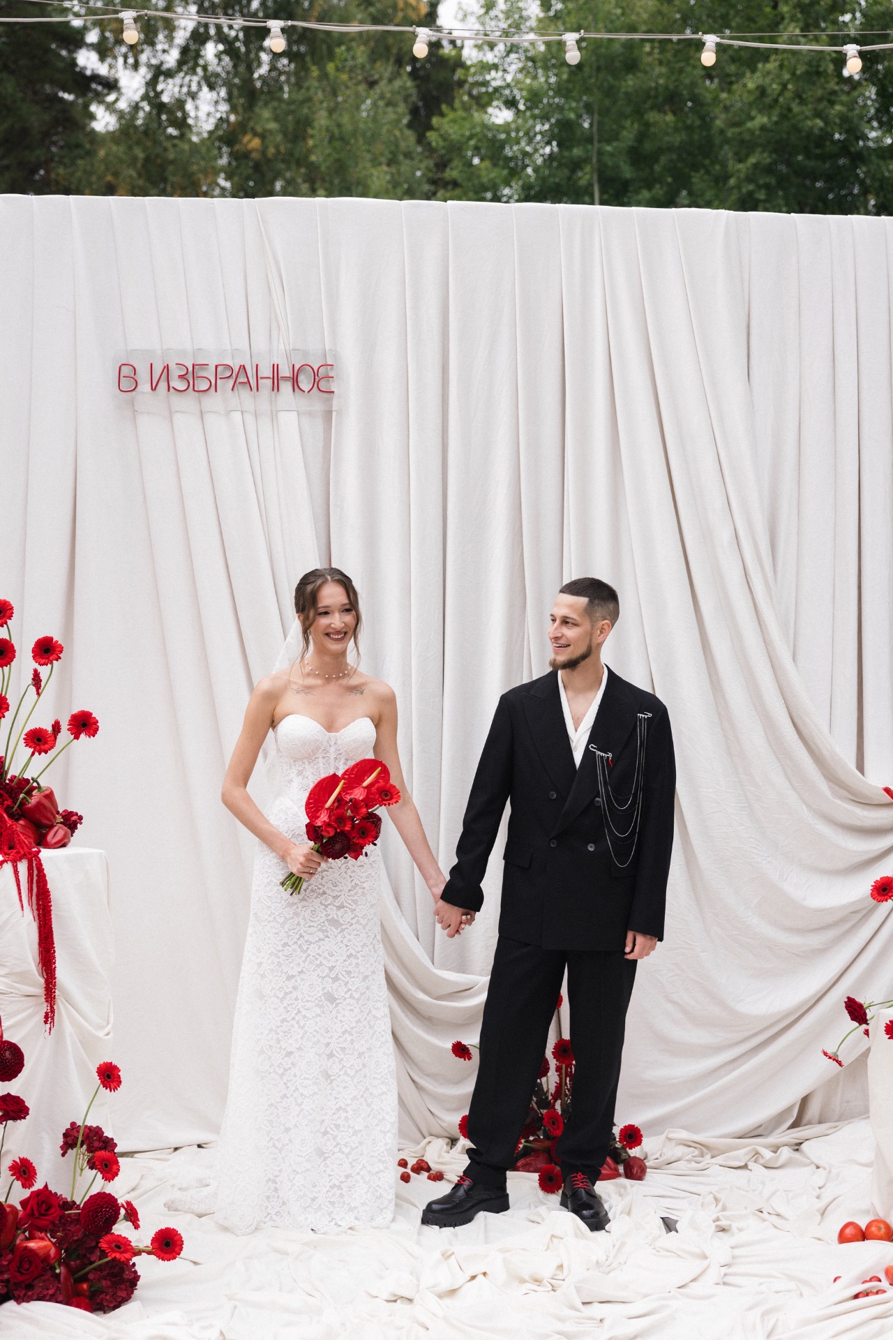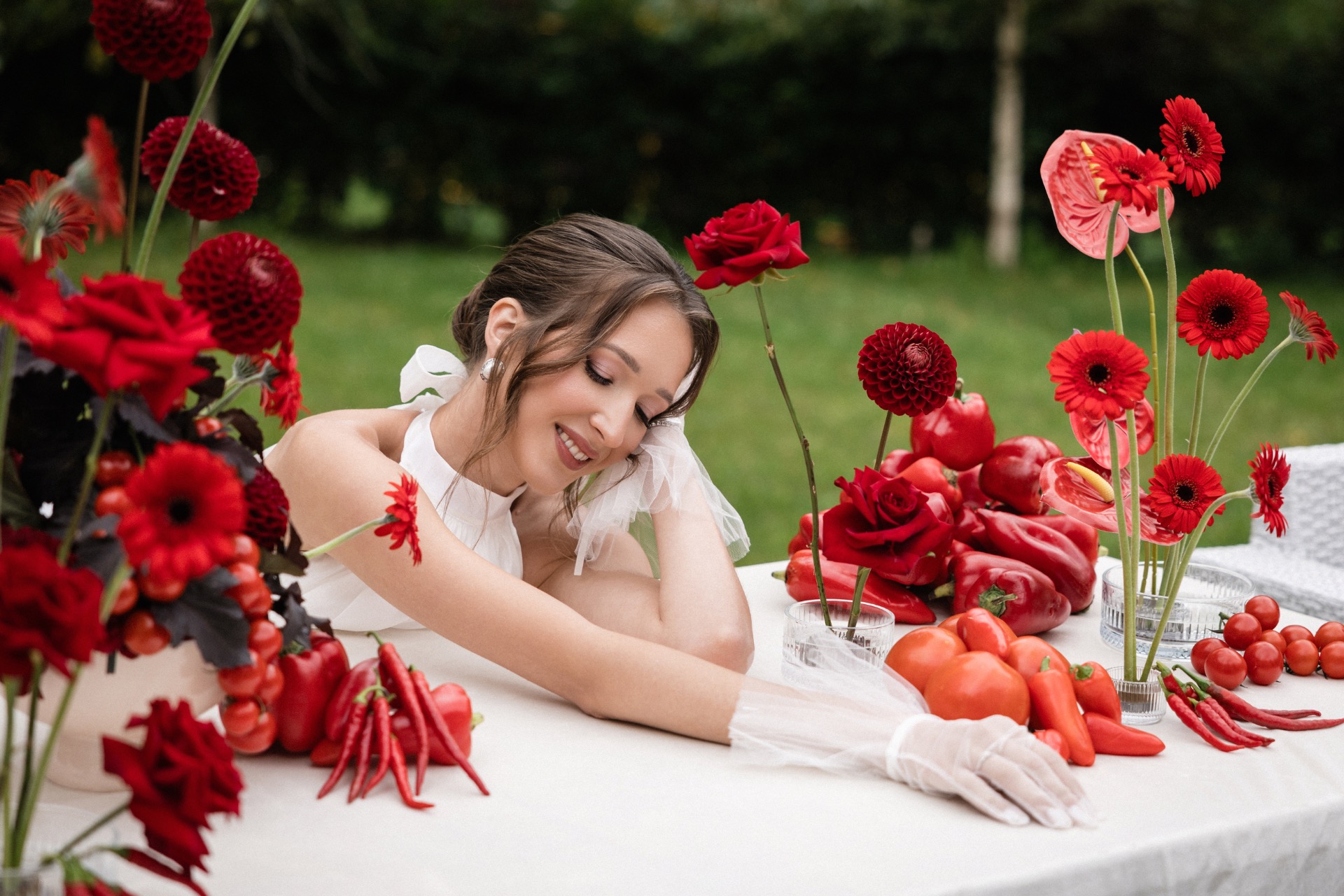 Органайзер помог структурировать задачи, убрать хаос и панику. Я погрузилась в статьи, гайды и тренды, пока не наткнулась на фото красной свадьбы мечты. Тогда я подумала: «Круто, смело, но я не решусь». Но чем больше я углублялась в свадебные тренды, тем сильнее меня цепляла эта идея, а сочетание красных цветов и перцев сводило с ума.