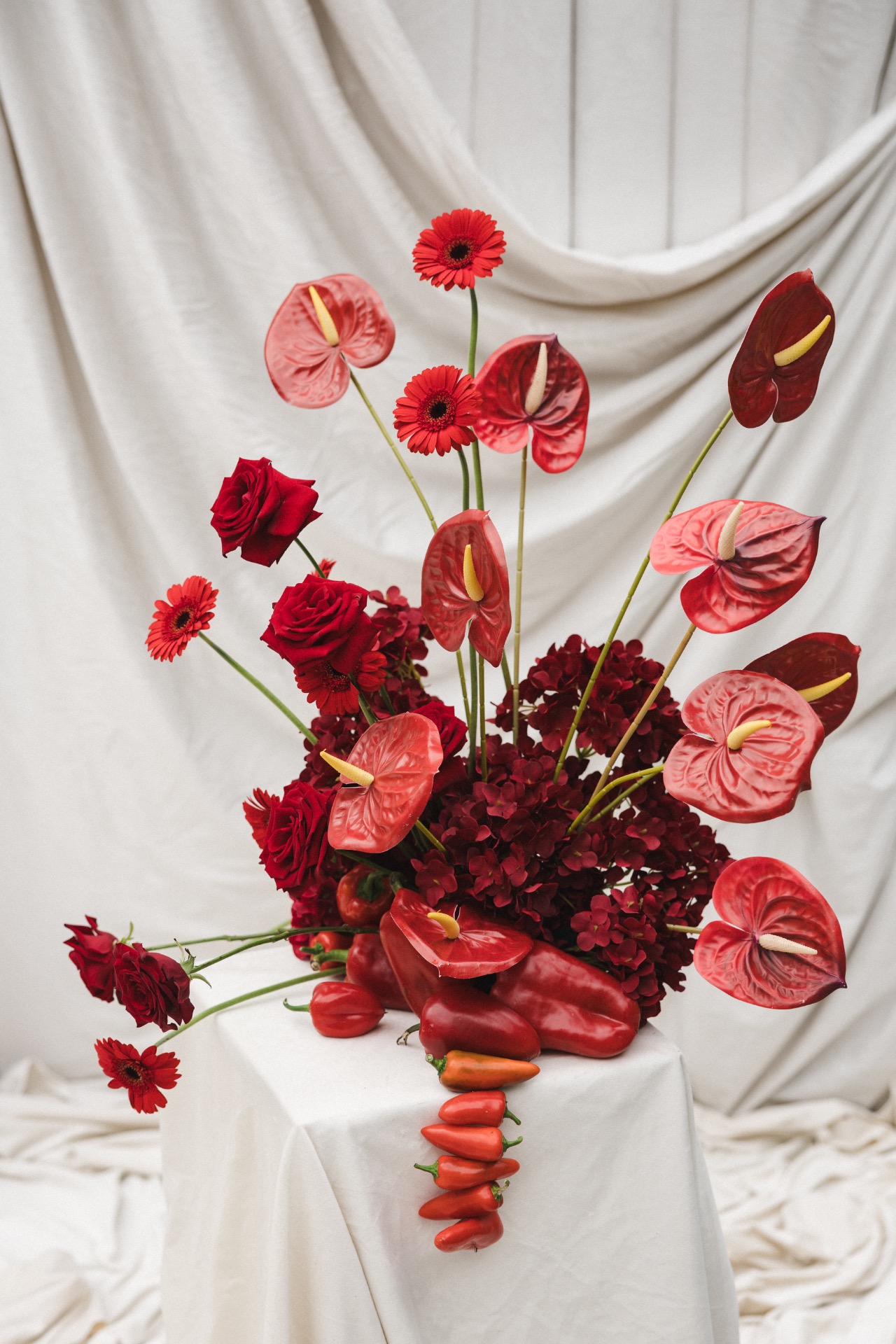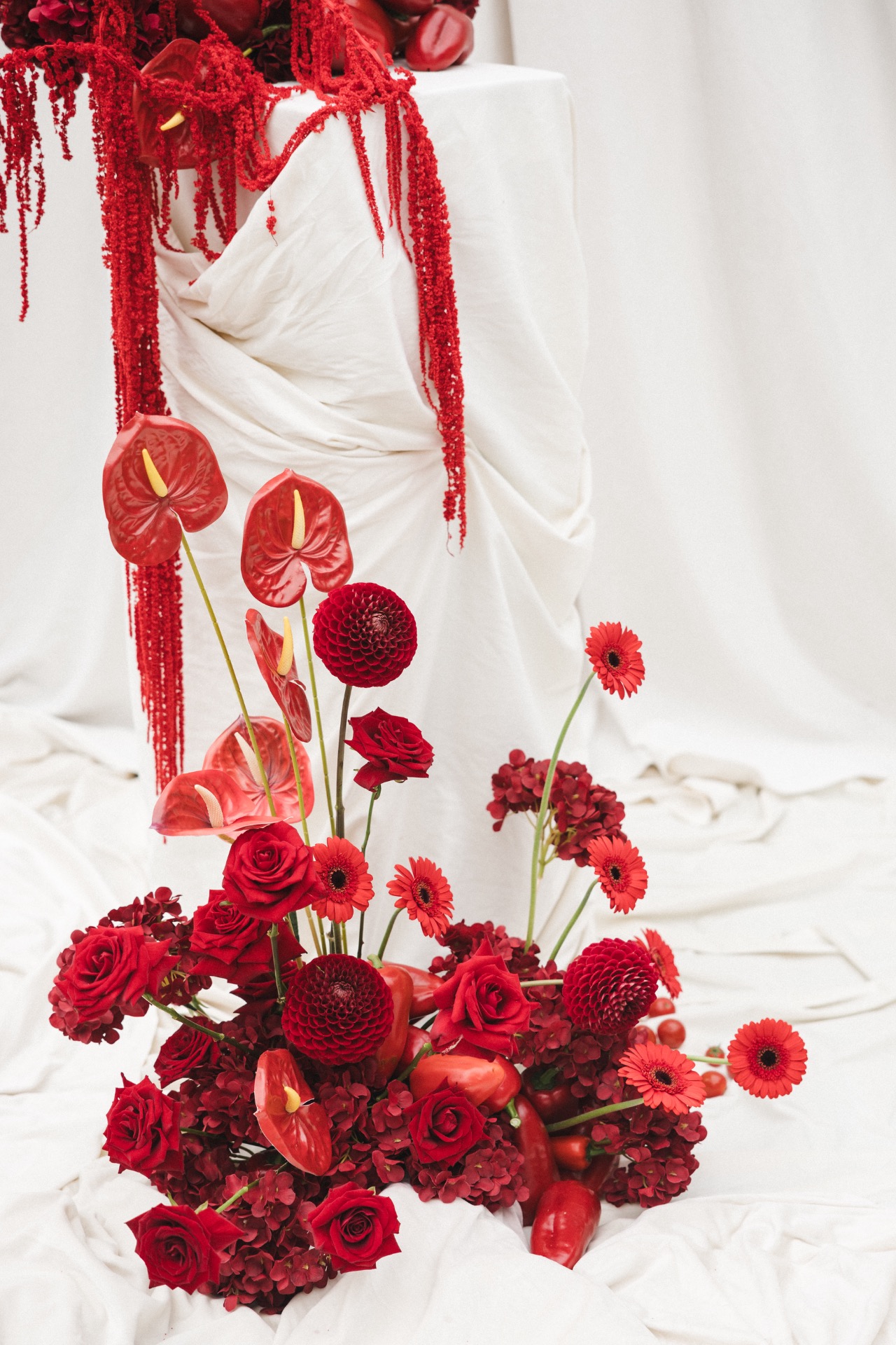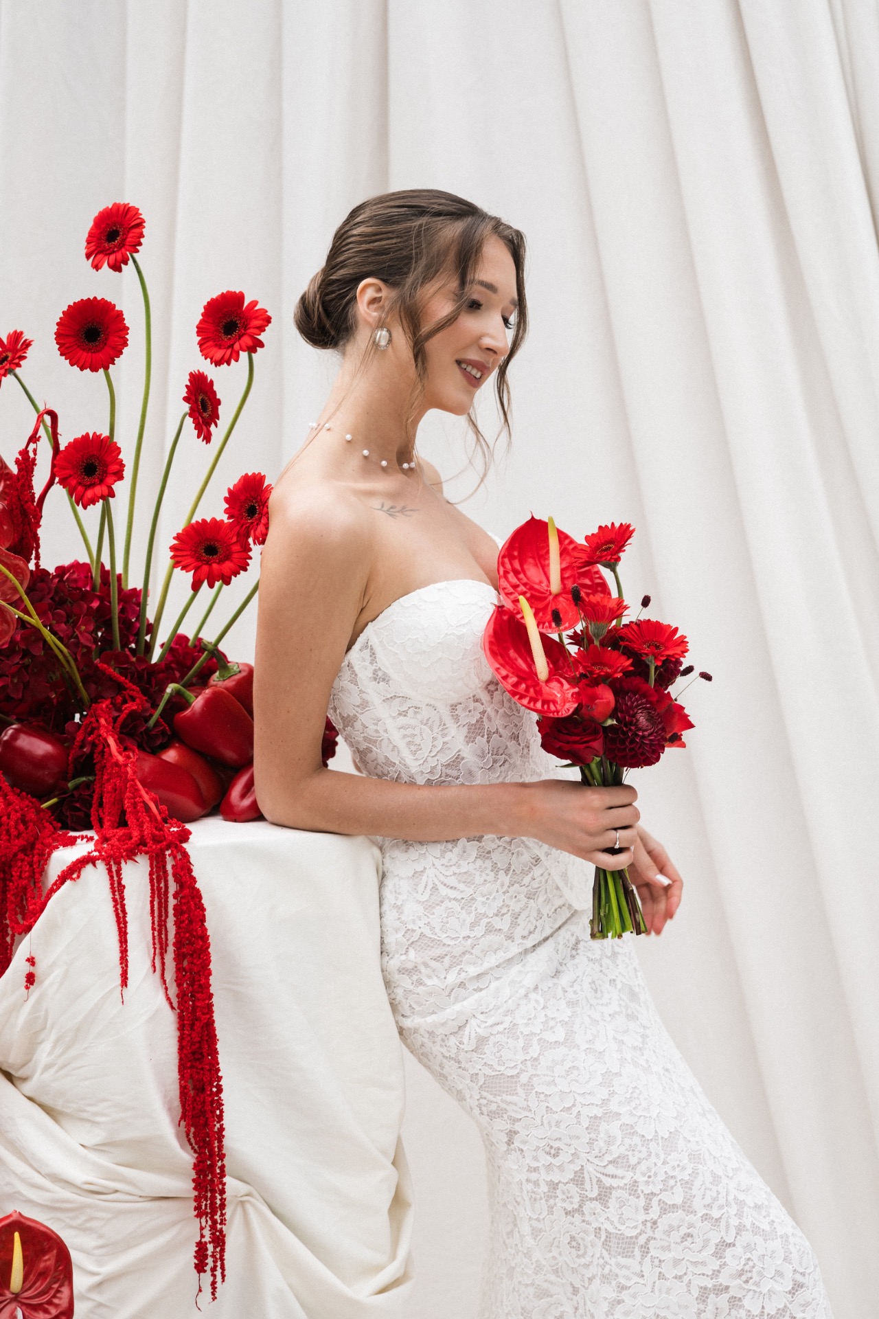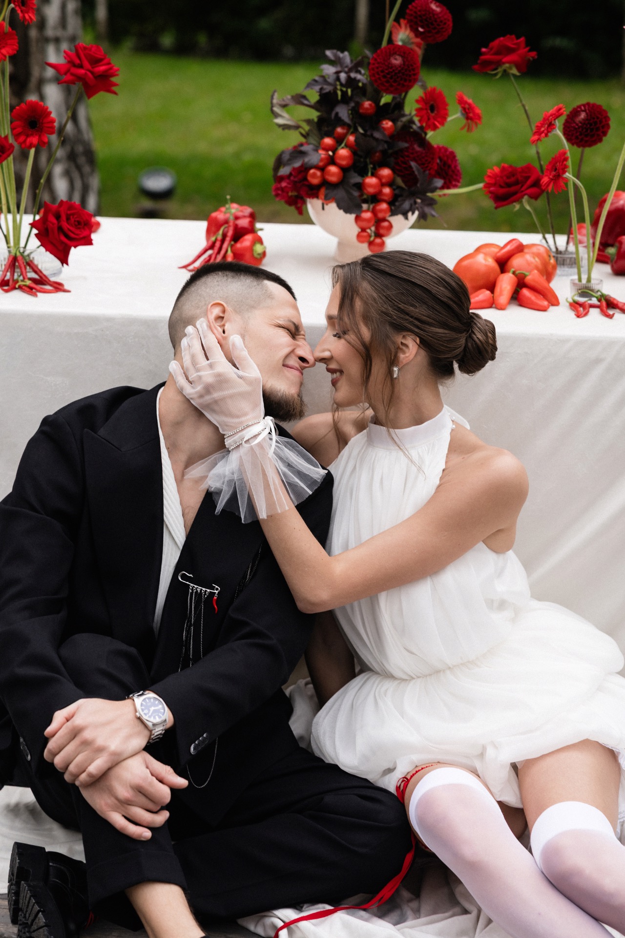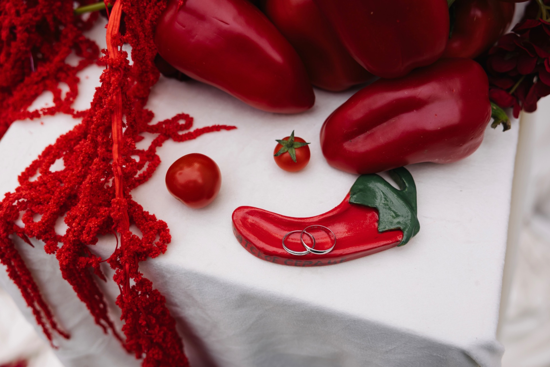 Органайзер помог структурировать задачи, убрать хаос и панику. Я погрузилась в статьи, гайды и тренды, пока не наткнулась на фото красной свадьбы мечты. Тогда я подумала: «Круто, смело, но я не решусь». Но чем больше я углублялась в свадебные тренды, тем сильнее меня цепляла эта идея, а сочетание красных цветов и перцев сводило с ума.