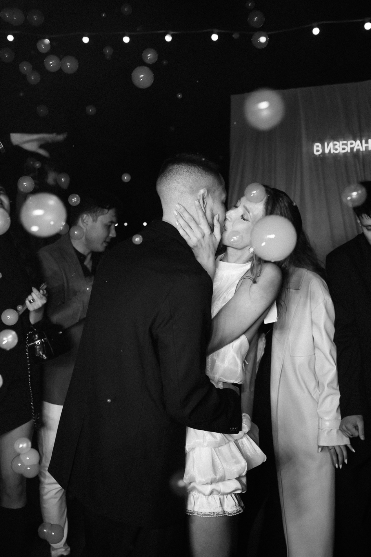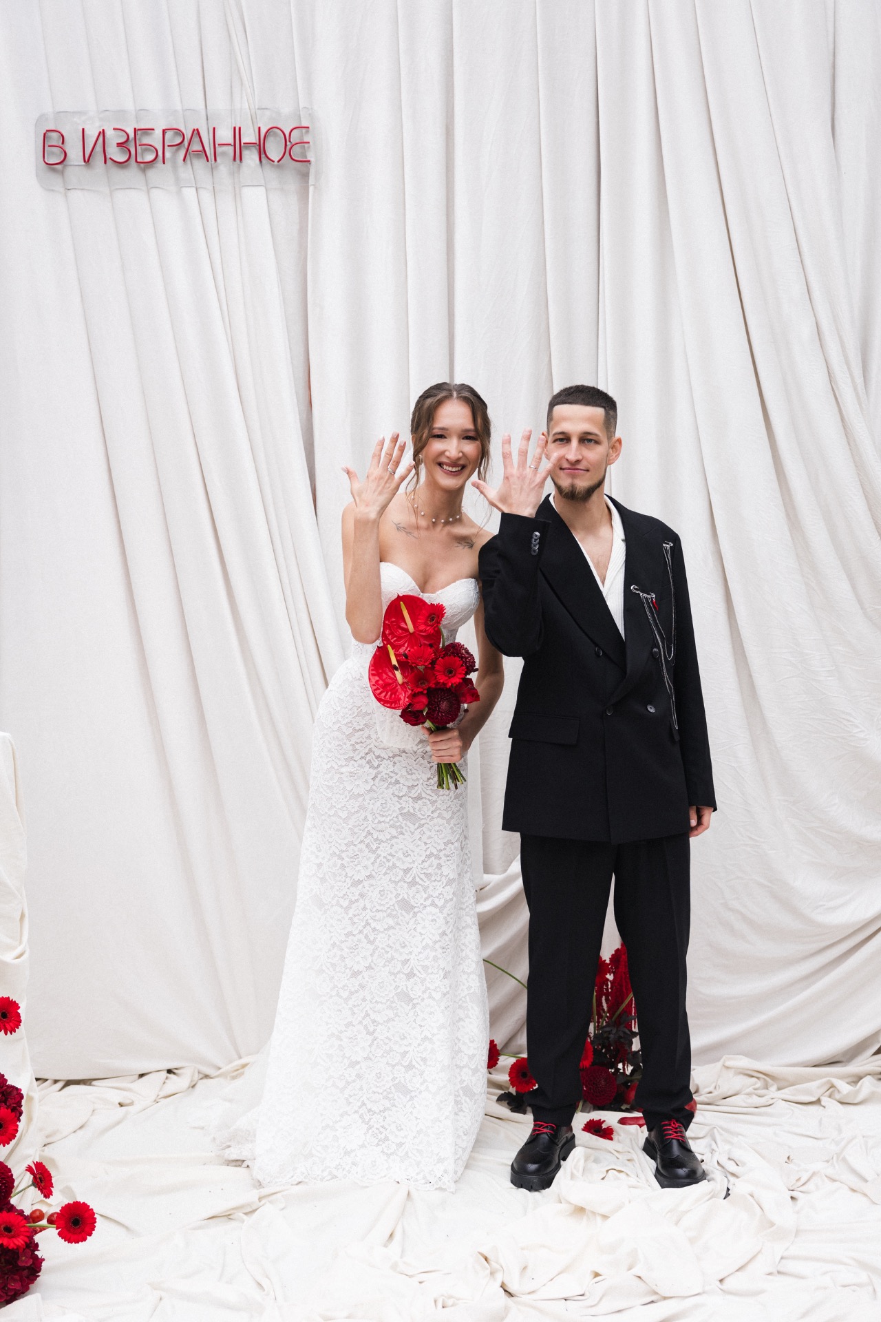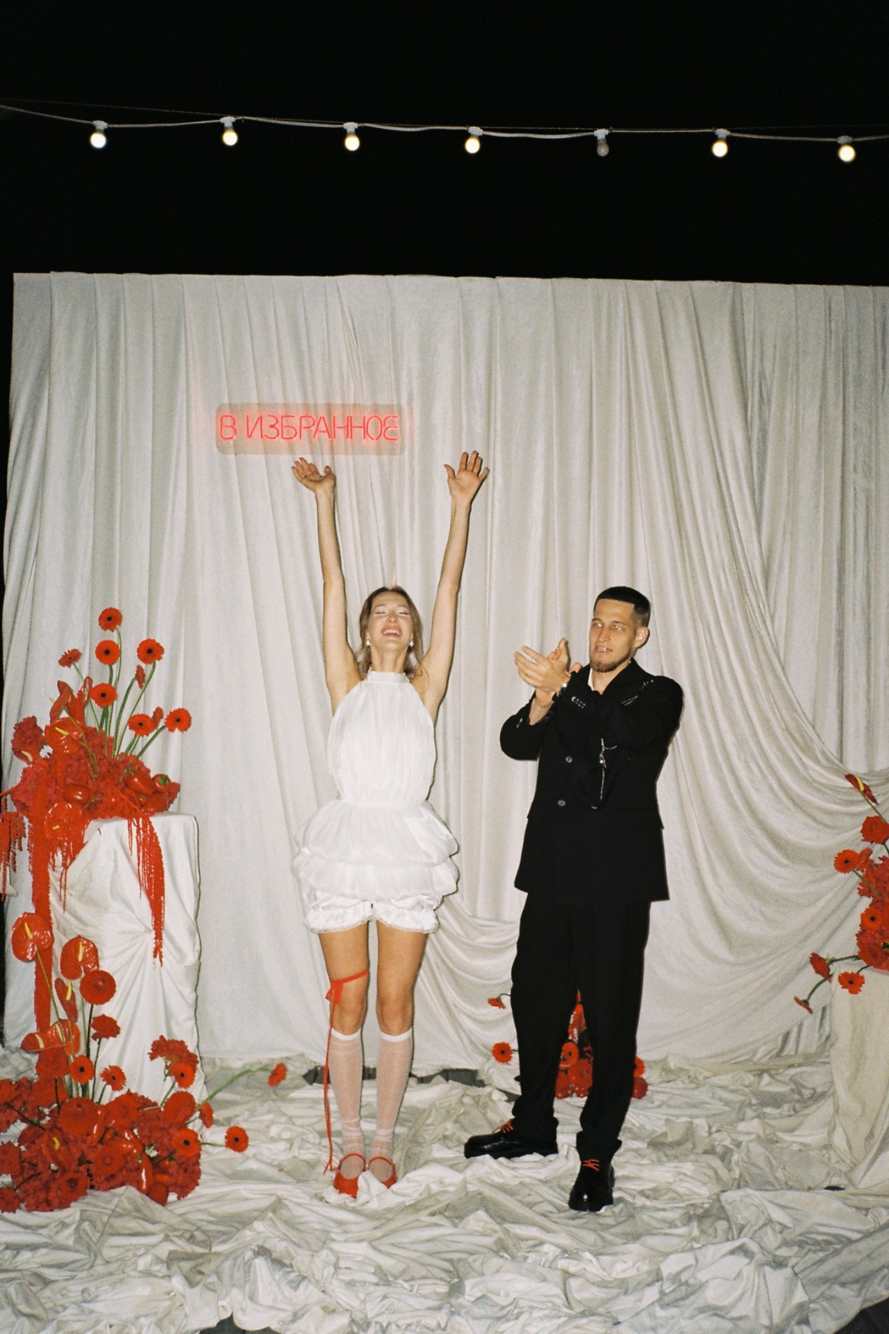 Когда ведущий объявил нас мужем и женой, зажглась неоновая вывеска «В избранное», которую Руслан сделал своими руками. Ведущий предложил всем добавить этот момент «в избранное». И гости действительно это сделали. Многие приглашённые потом писали нам, что это был момент, который они запомнили навсегда.