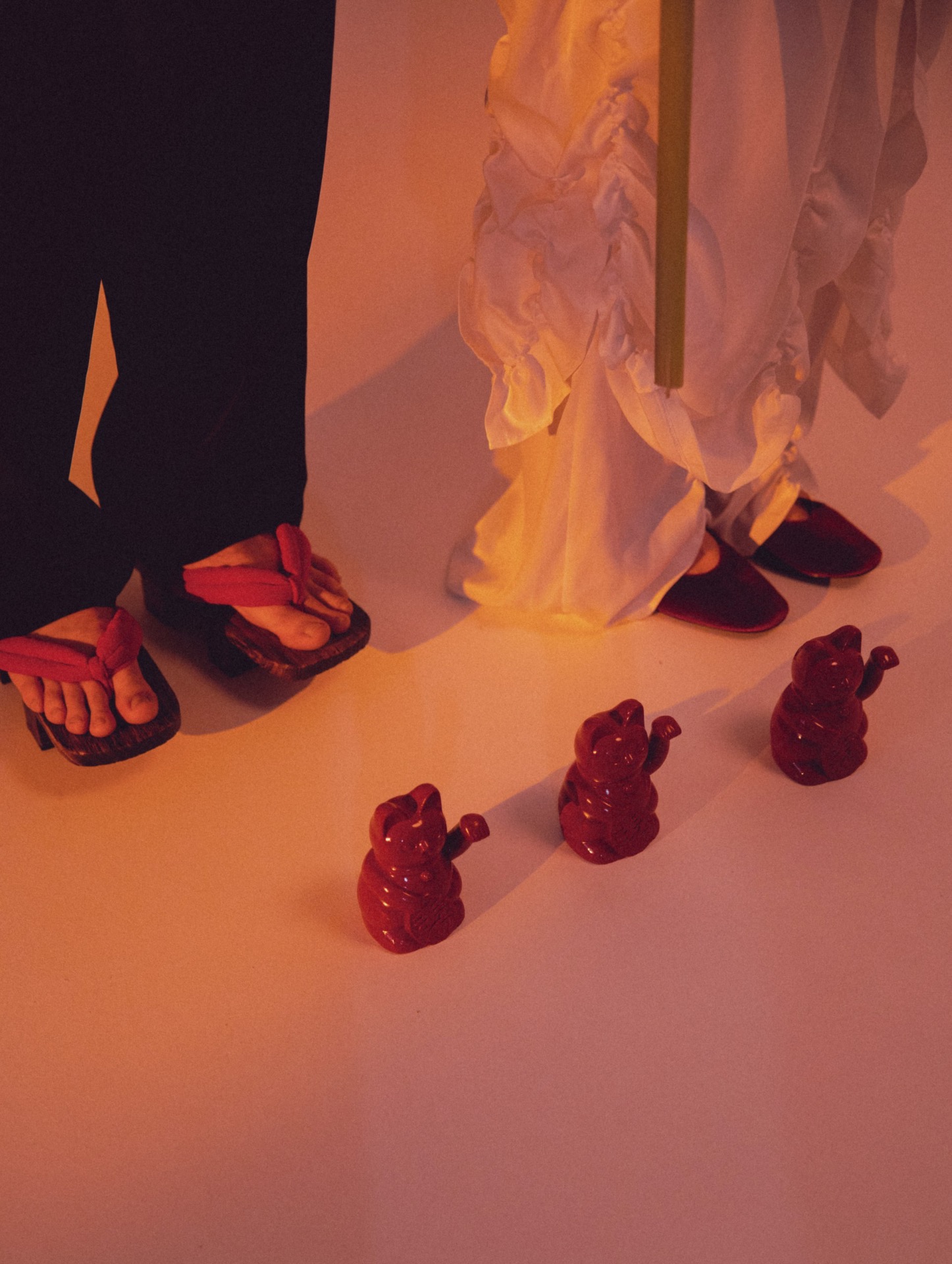 В качестве интересных деталей мы добавили фуршетную зону с «Дошираком» в креманках, фотозону с котиками Манэки-нэко, иероглиф «Любовь» на полу и карточки со значением имени каждого гостя на китайском. Тортом стала большая фигурка кота Манэки-нэко. В конце вечера мы укусили его за ушки на удачу.
