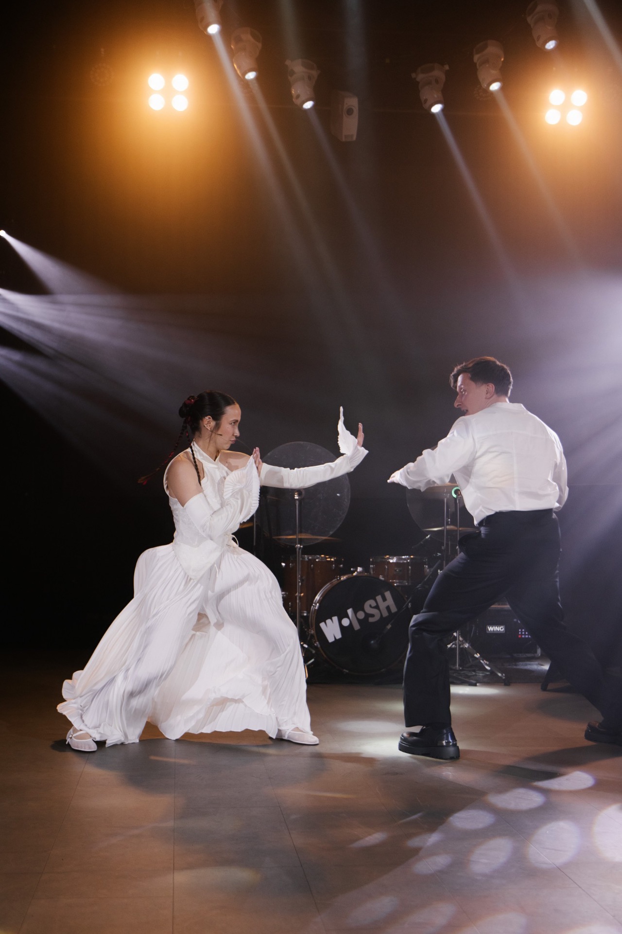 Наш первый танец стал настоящим сюрпризом для всех. Мы выбрали песню Kung Fu Fighting и подготовили танец в стиле кунг-фу — смешной, динамичный и идеально подходящий под нашу концепцию. Этот танец до сих пор вспоминают как один из самых незабываемых моментов свадьбы.