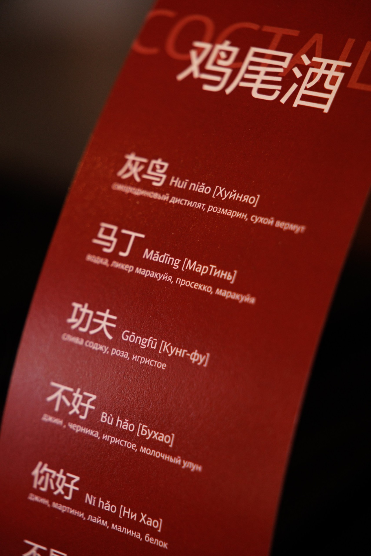 - Бар с коктейлями со смешными «китайскими» названиями;
