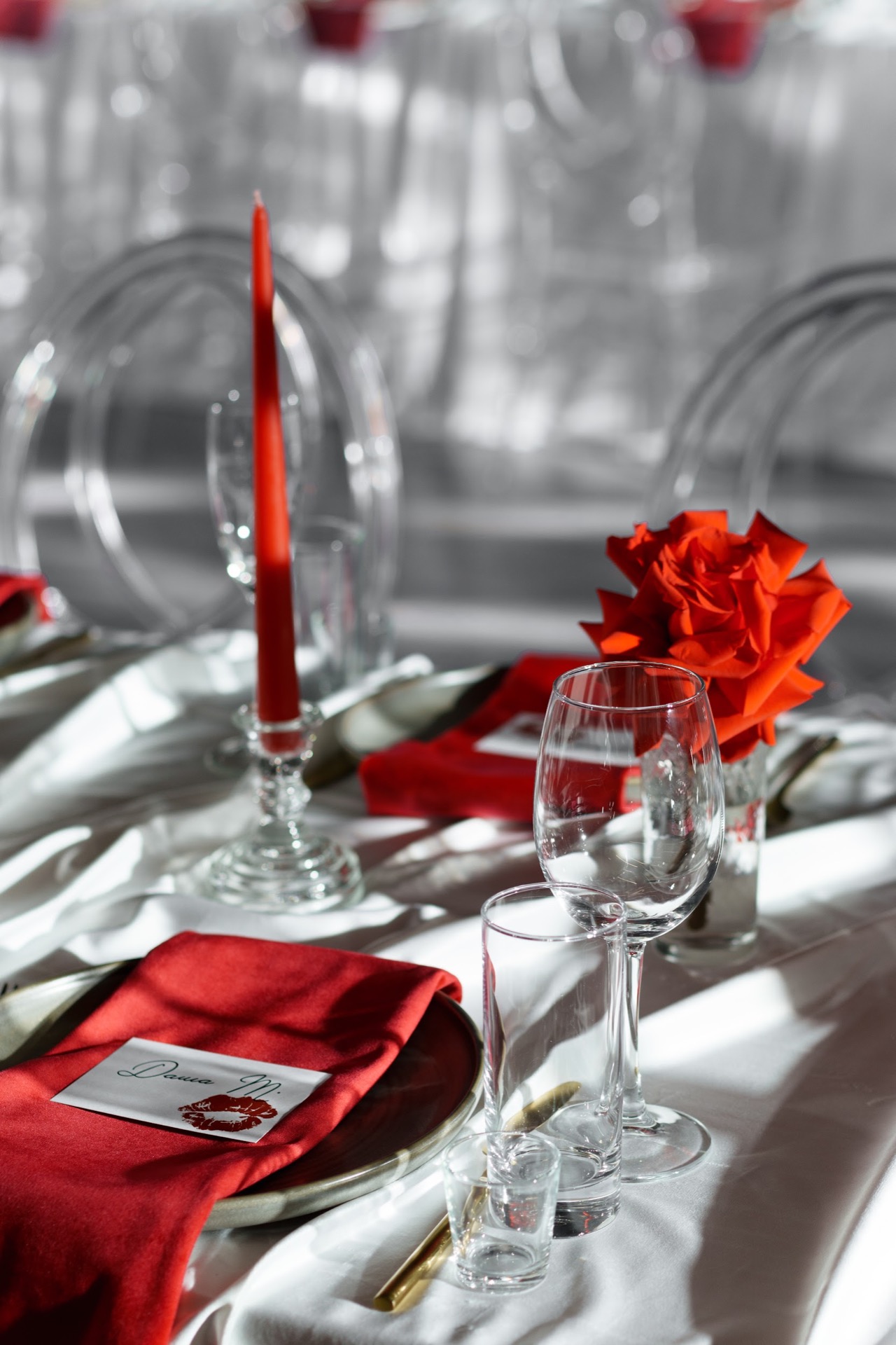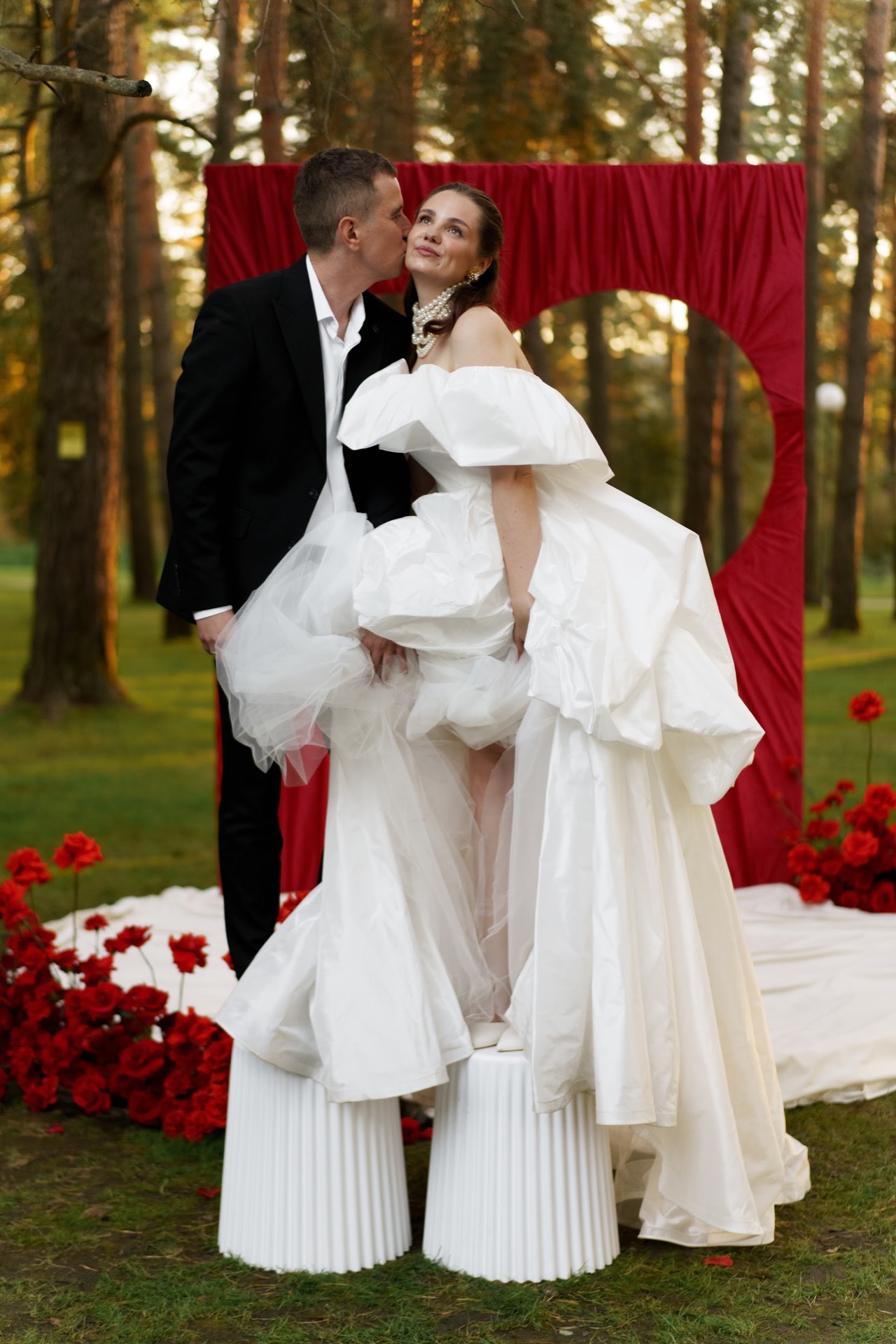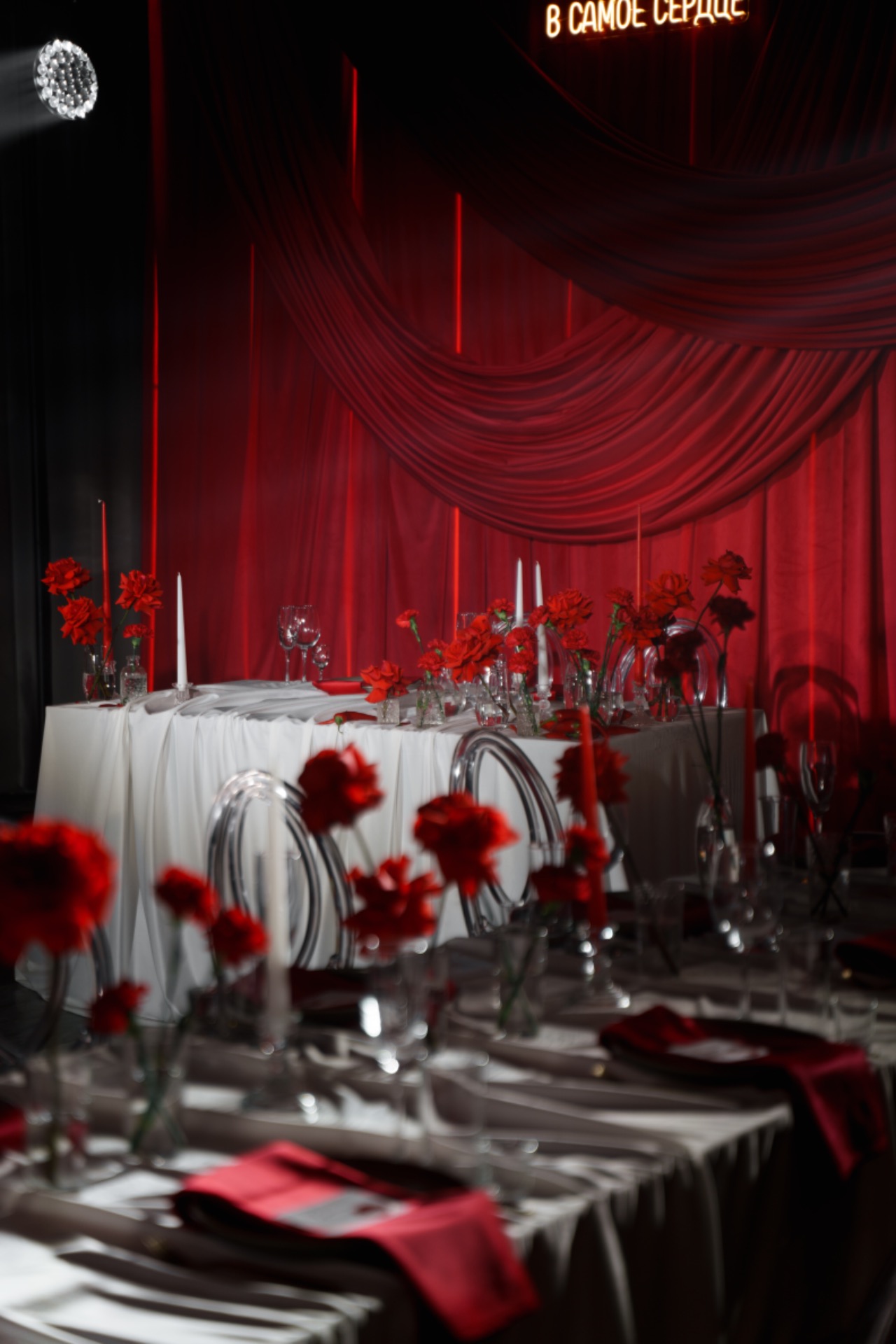 История нашей пары началась очень ярко, и, когда я думала о концепции, мне очень хотелось показать этот огонь и страсть, поэтому мы выбрали красно-белый декор с небольшой капелькой перчинки. Мы решили пожениться в сентябре, потому что у моих родителей свадьба была именно в этом месяце, и я хотела подобрать дату ближе к их годовщине.