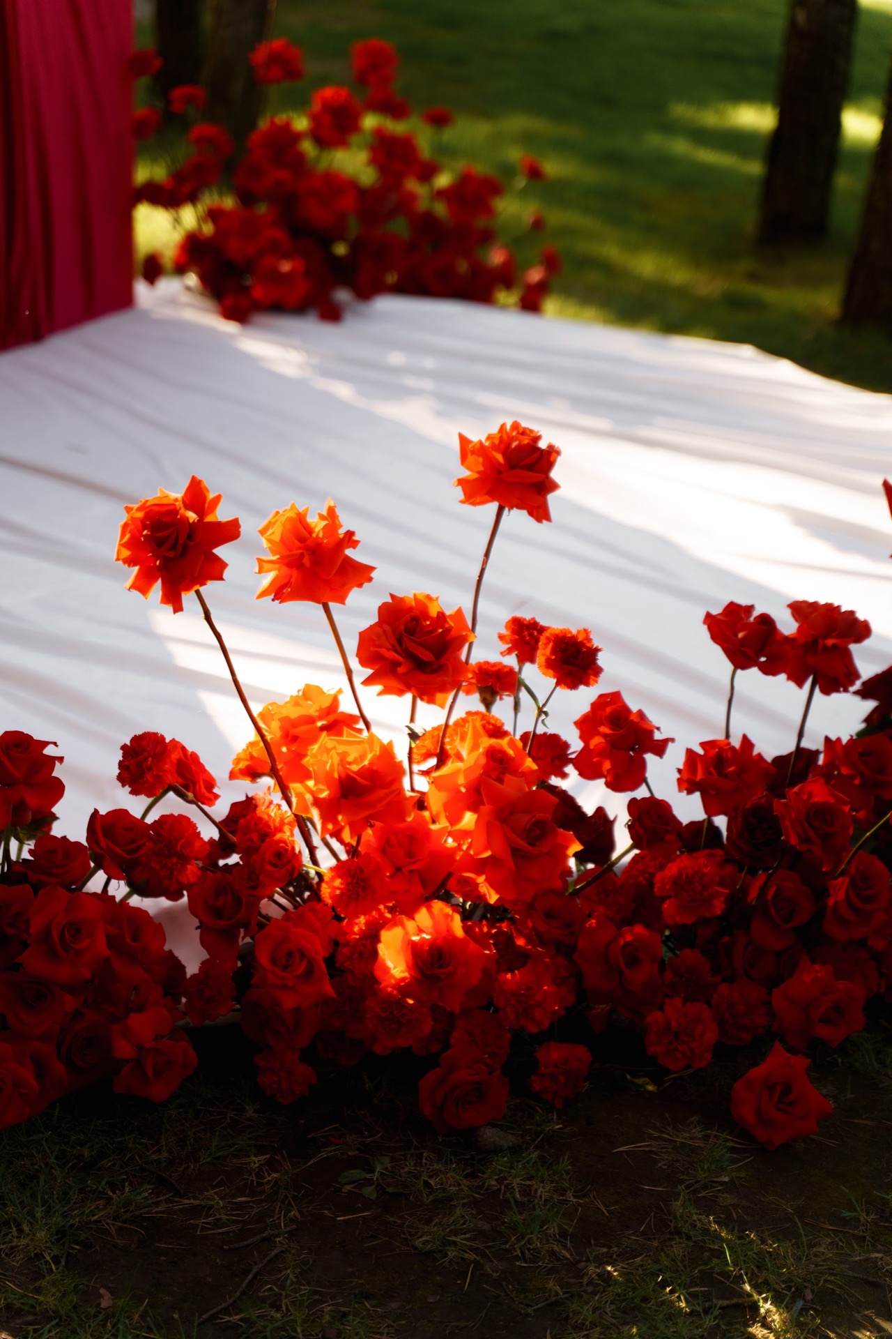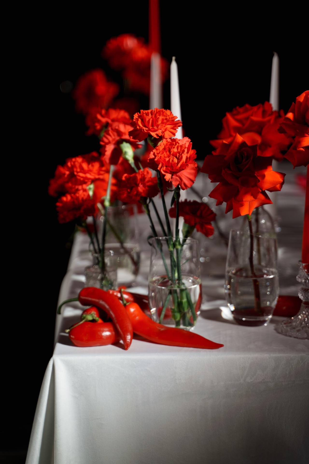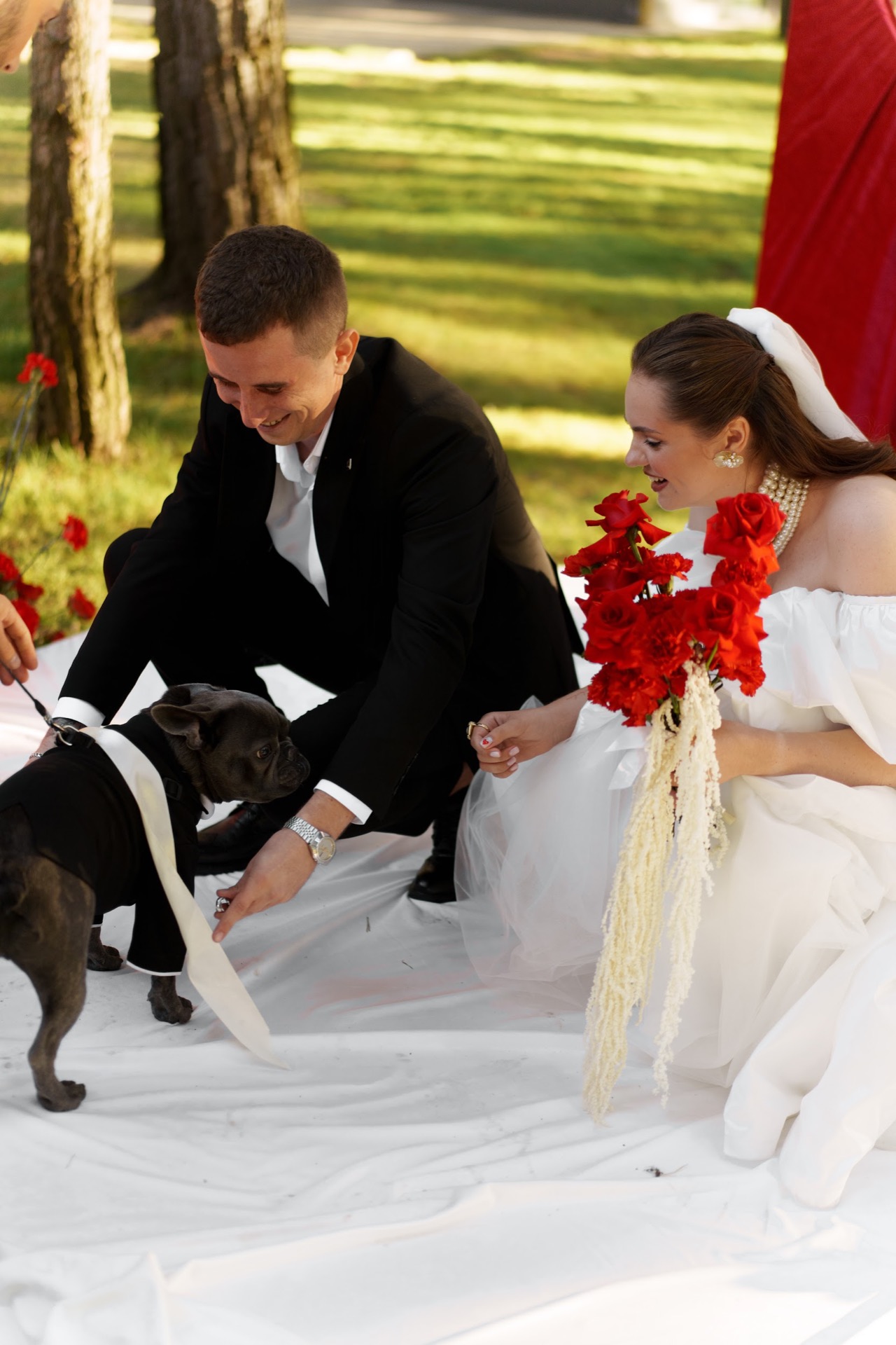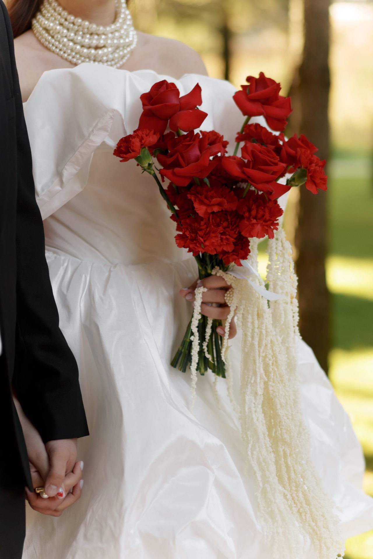 История нашей пары началась очень ярко, и, когда я думала о концепции, мне очень хотелось показать этот огонь и страсть, поэтому мы выбрали красно-белый декор с небольшой капелькой перчинки. Мы решили пожениться в сентябре, потому что у моих родителей свадьба была именно в этом месяце, и я хотела подобрать дату ближе к их годовщине.