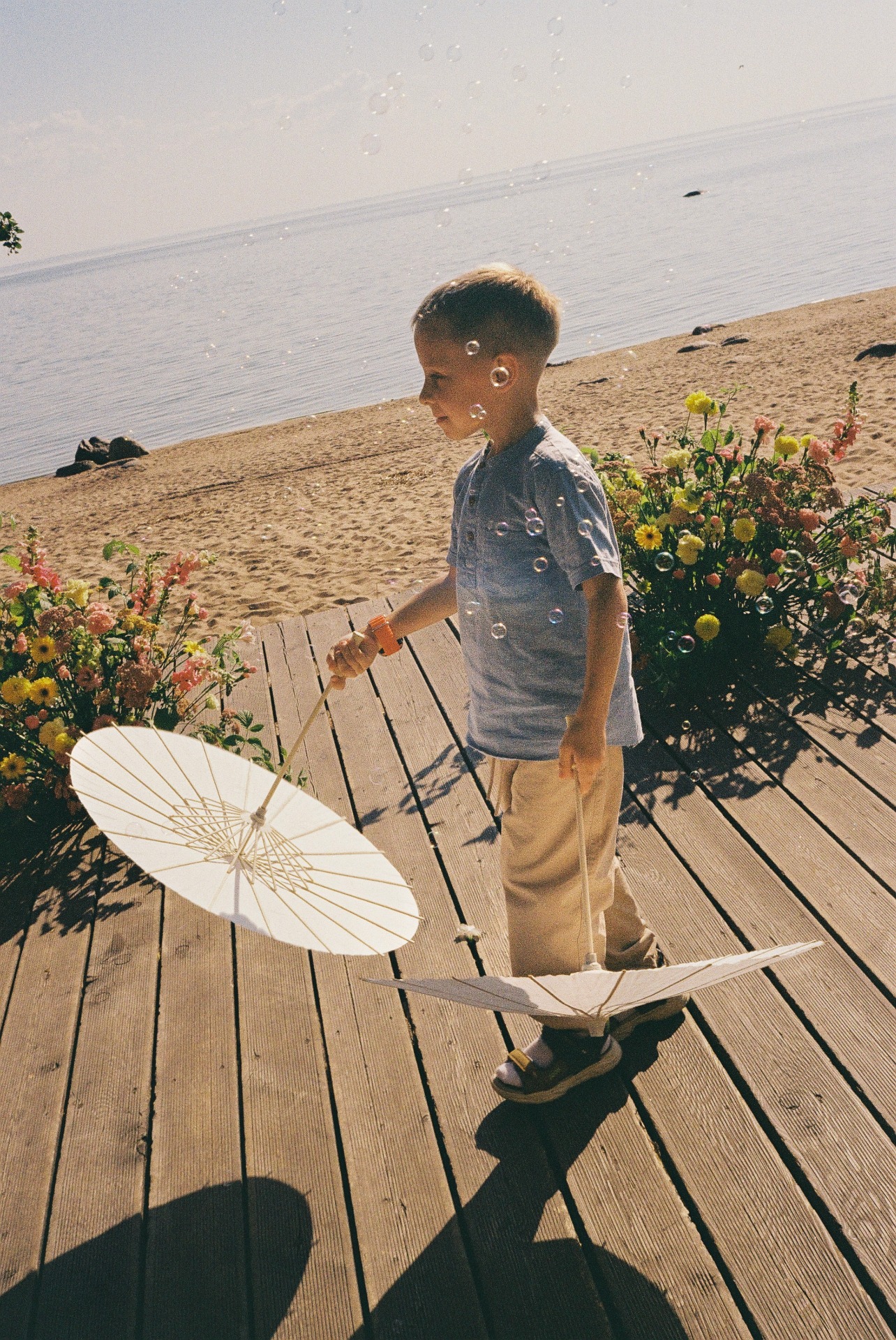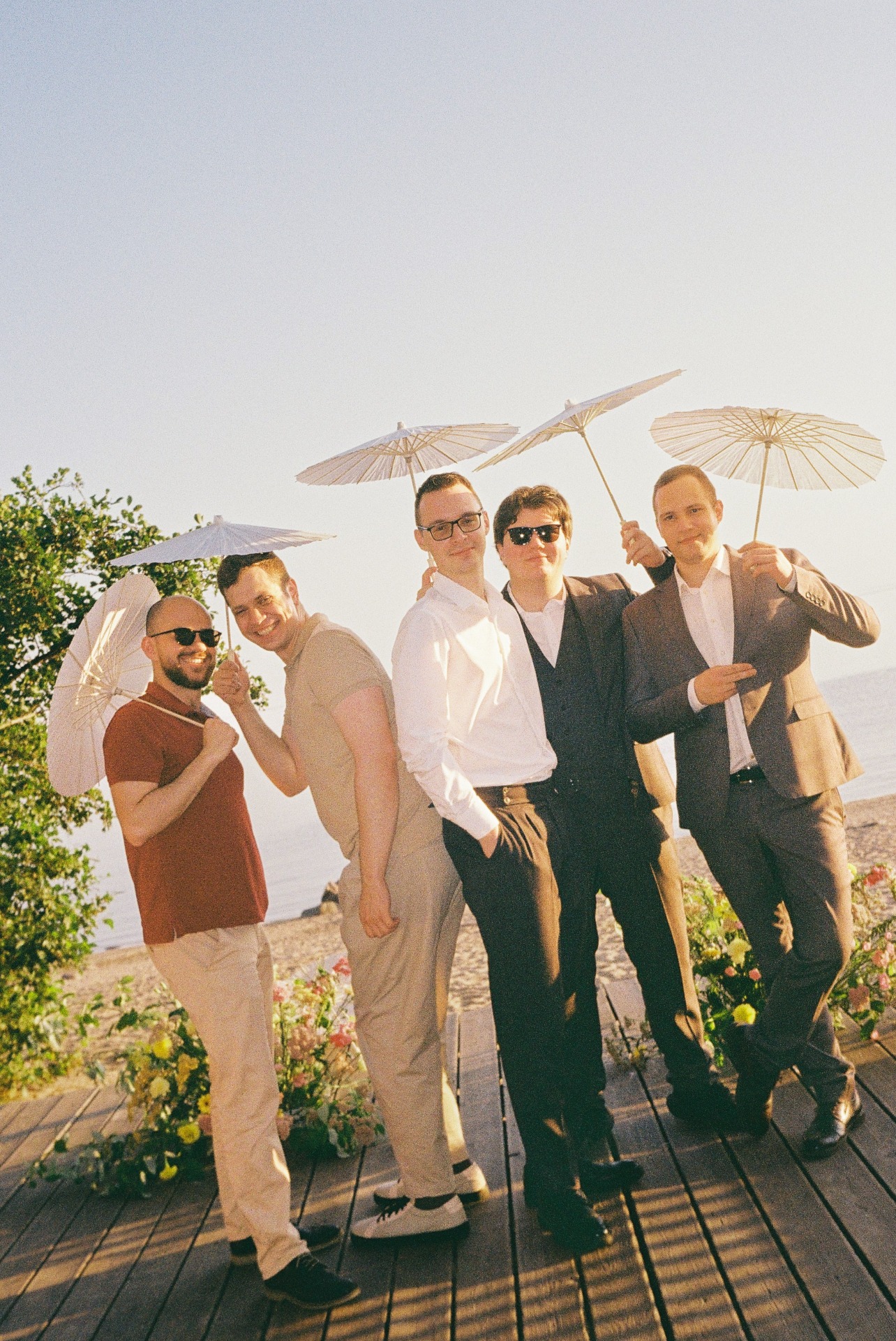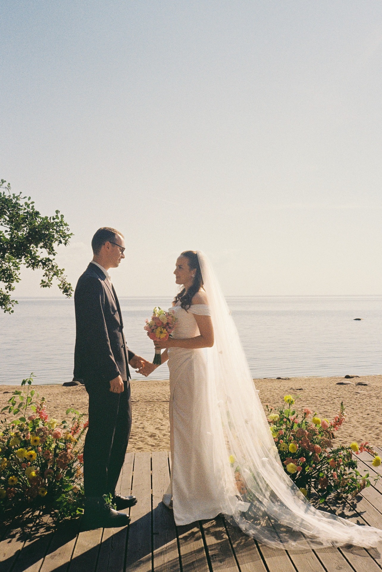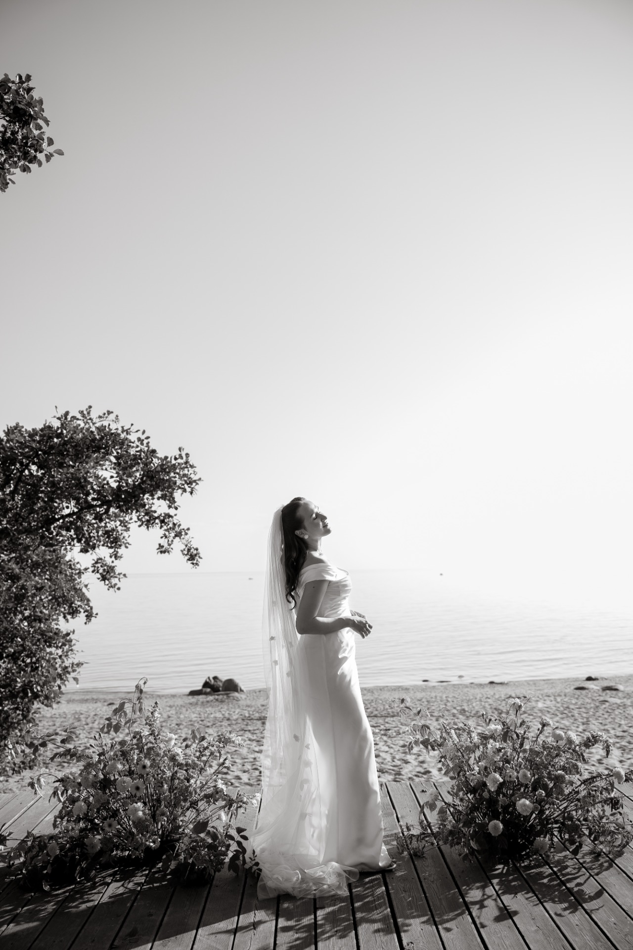 Мы выходили на террасу пить шампанское, гуляли вдоль берега залива и фотографировались. А для гостей мы подготовили фотобудку и альбом, в который они вклеивали свои снимки и писали пожелания.