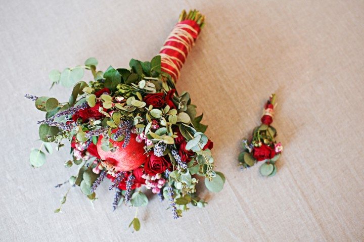 Гранат использовался для карточек рассадки, в моем оригинальном букете, в декоре и в угощениях. Вообще у нас на свадьбе было много фруктов, как альтернатива всяким капкейкам на сладких столах. Все мы угощались авторским гранатовым глинтвейном от приглашенного мастера, который варил его прямо на месте. Было очень ароматно и вкусно. А еще мы дарили дорогим гостям дорогие книги, в каждую из которых вложили очень милые и добрые пожелания-предсказания, которые придумали сами! В общем, мы просто постарались сделать всё красиво и чтобы нам и гостям было комфортно. У нас это получилось.