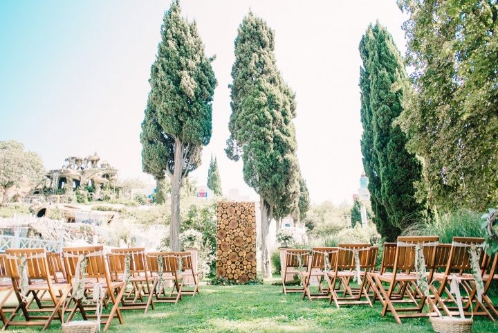 Концепция свадьбы — эко-стиль, который так гармонично соединился и дополнил уют и комфорт комплексной площадки парк-отеля. Уединение, красота и детали дикой природы прослеживались во всем декоре: запах свежескошенной травы, лесная кора, мох, дары природы, и все это в обрамлении легких, натуральных тканей. Церемония проходила на зеленой лужайке, на которую сквозь верхушки деревьев струились лучи света.