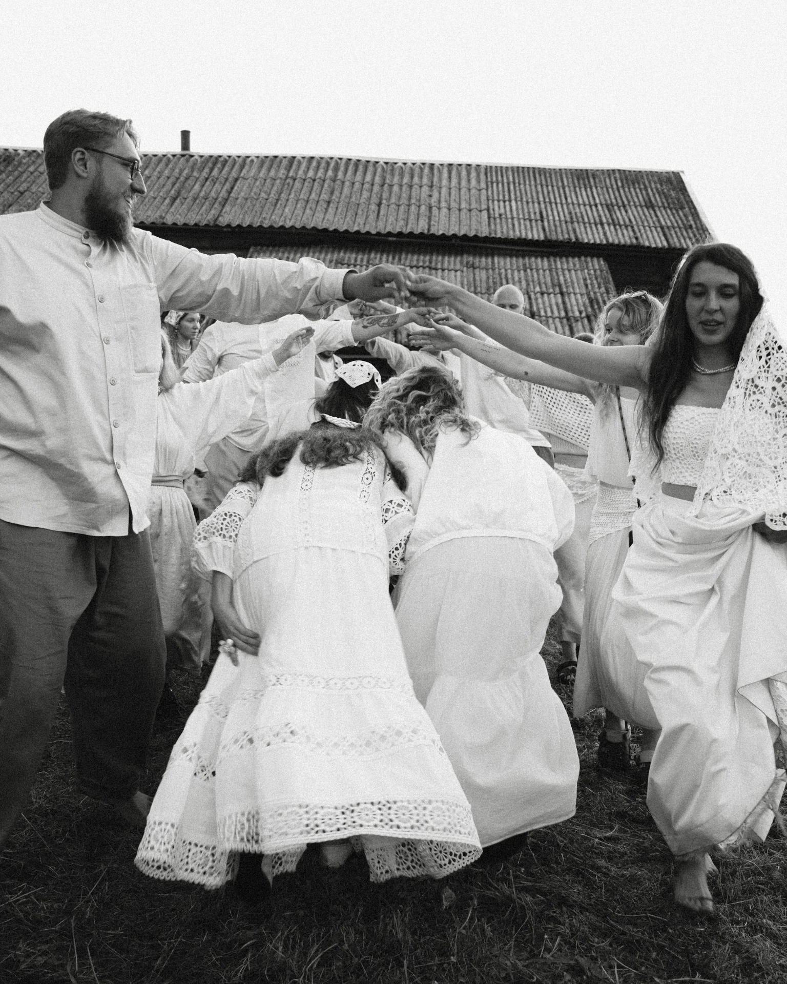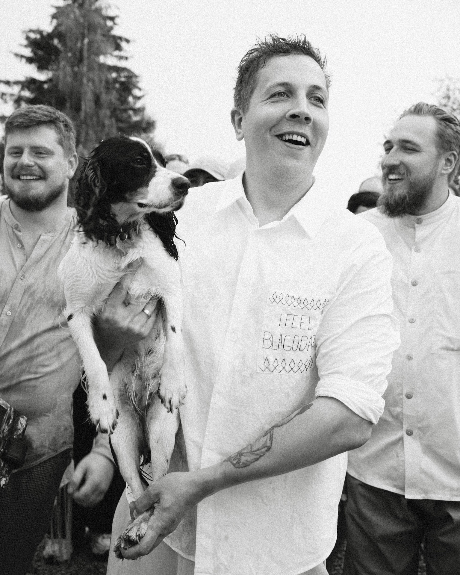 Из наших поисков себя родился совместный проект «Банность» — мы проводим парения в банях, выращиваем травы, закатываем огурцы и каждое лето живём на даче в 300 километрах от Петербурга. Для нас баня — не только традиция, но и философия. Поэтому сомнений в концепции свадьбы не было: избы, песни, ритуалы, фольклор. Это просто наша жизнь.