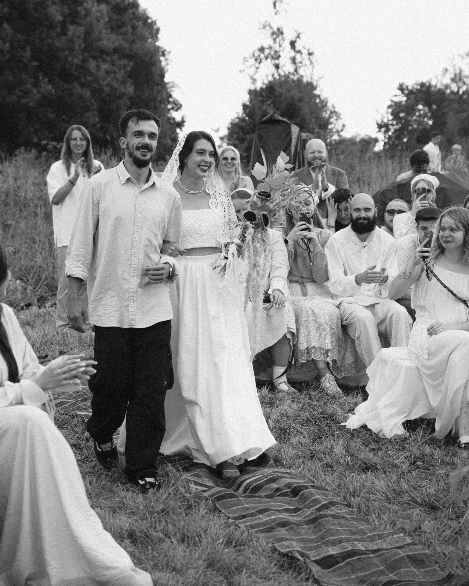 Церемония в поле была особенной: выглянуло солнце, собрались жители деревни, и казалось, что весь мир замер. Мы смотрели друг другу в глаза и произносили клятвы «на вы» — с уважением и любовью.
