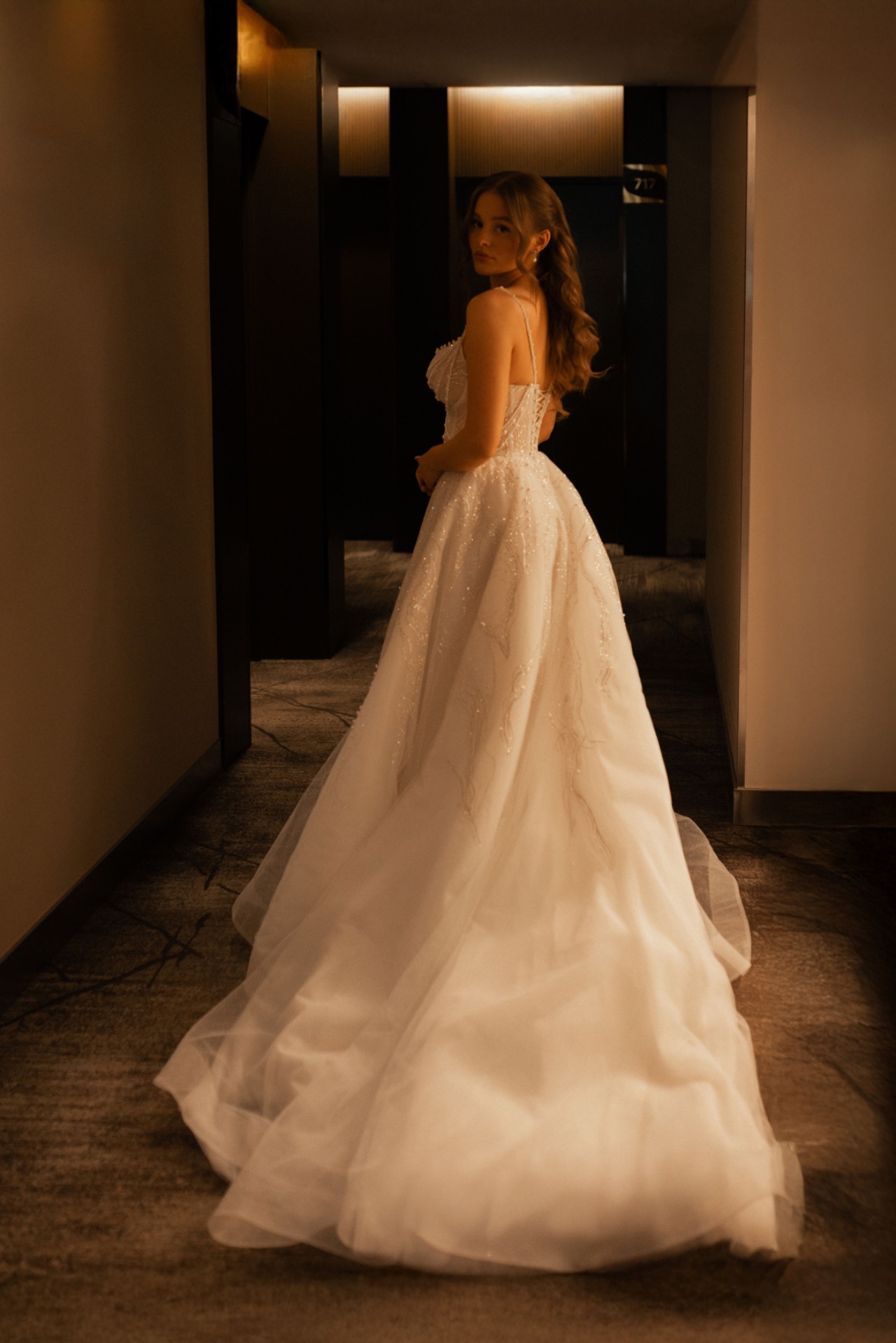 У меня было пышное платье от дизайнера Анны Кузнецовой под названием «Амариллис». Оно было невероятно красивым, и выбрала я его не иначе как сердцем.