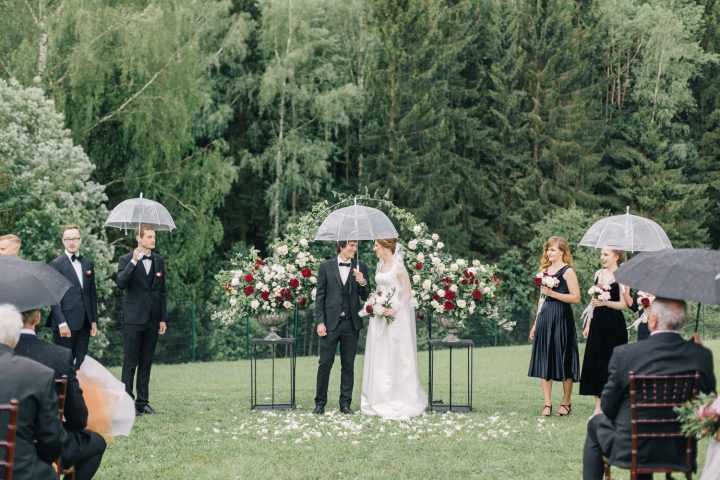 Погода в этот день была крайне переменчивой. Солнечное утро резко сменилось дождем, который продолжался на протяжении всего дня. Дождь создал для нас особую атмосферу праздника, словно в итальянском кино! Одним из трогательных моментов стал сюрприз невесты для жениха. Мария заказала для Антона выступление его любимой группы. Это было потрясающе! Окончание вечера было очень красивое, а главное — вкусное. Во время выноса торта зажглись холодные фонтаны, а кондитер компании ДаМастер пел песню а капелла. Фантастическое завершение торжества!
