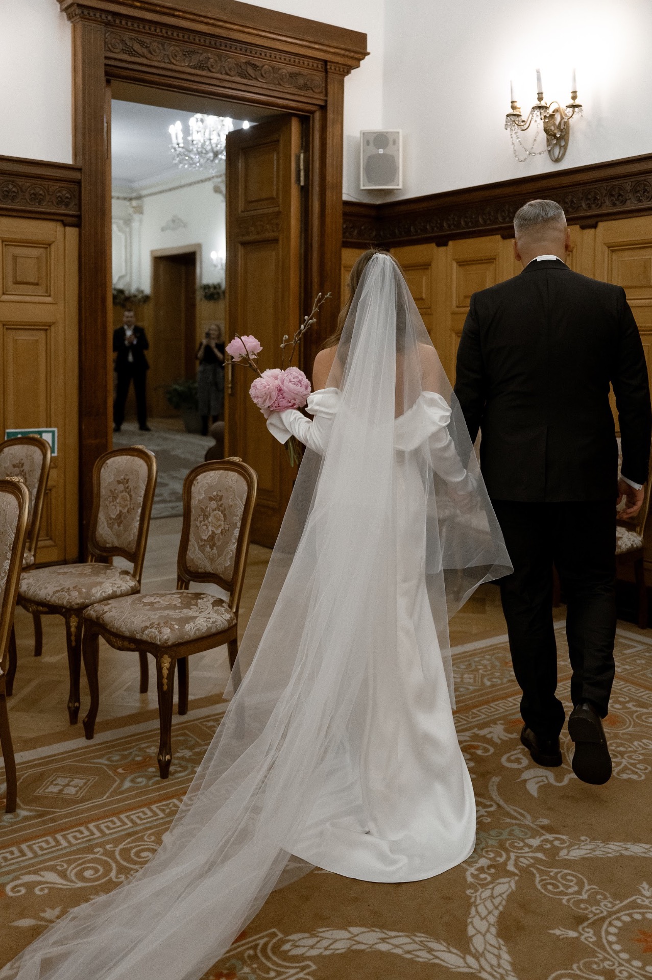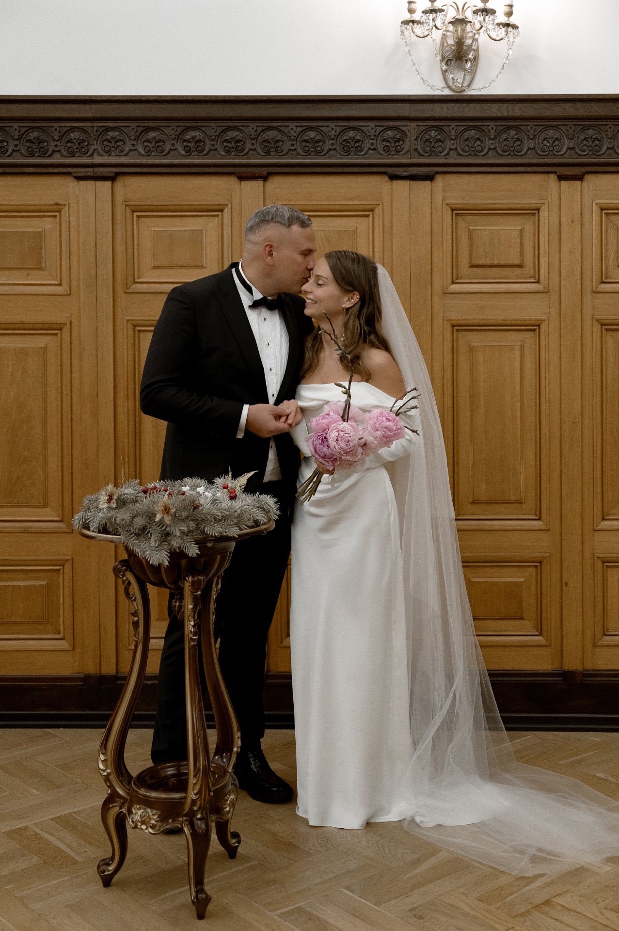 Нам очень хотелось, чтобы день во всех смыслах был подлинным, поэтому мы отказались от выездной церемонии, но позвали всех гостей в Грибоедовский загс, где 45 лет назад расписывались мои мама и папа.