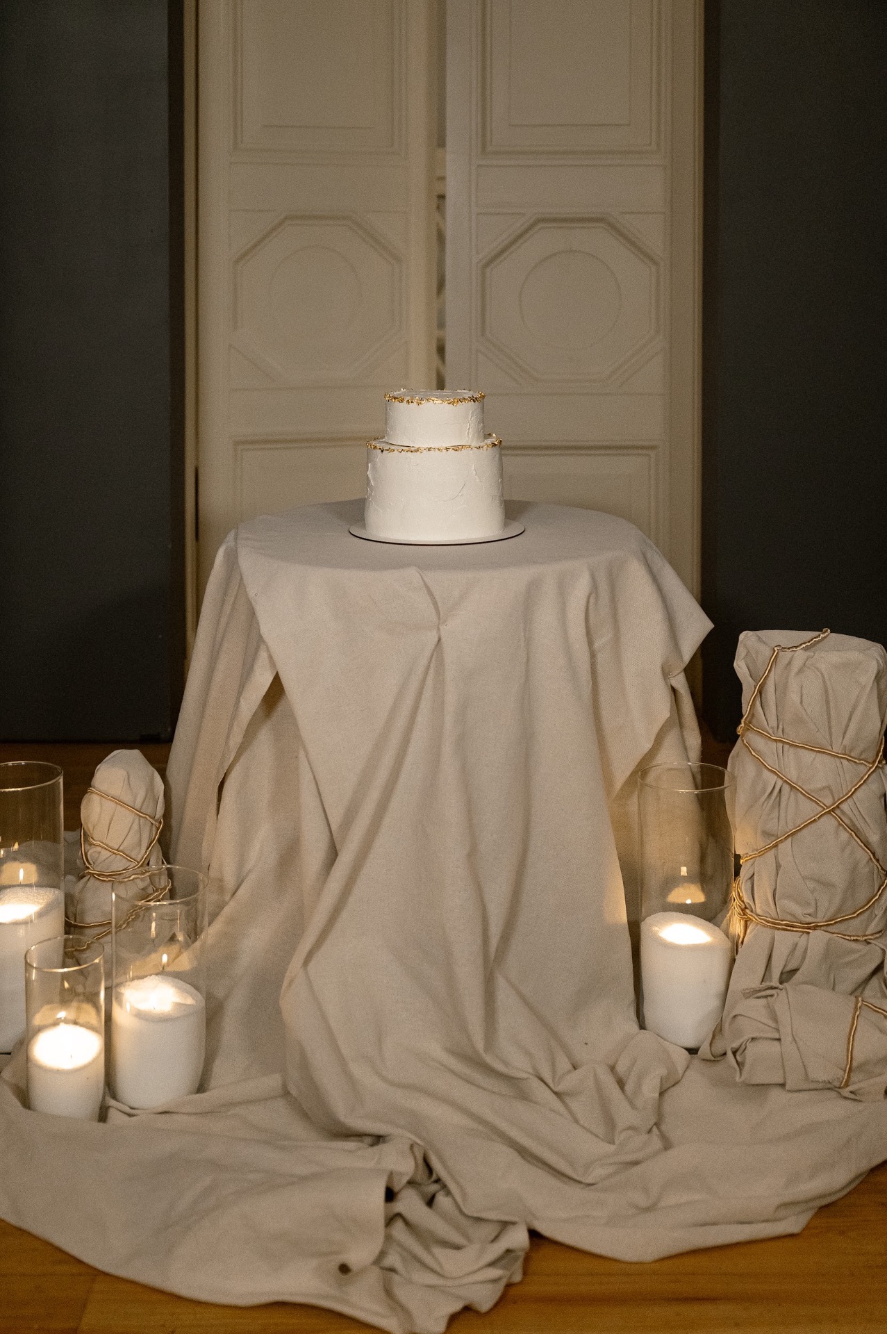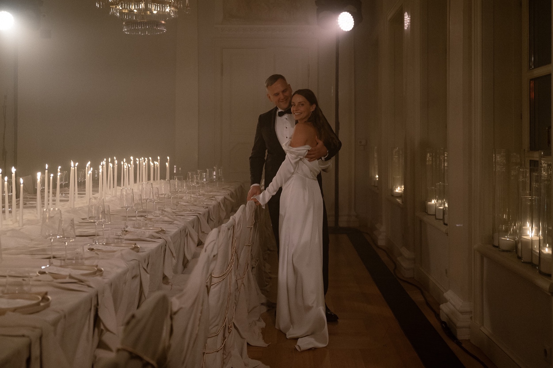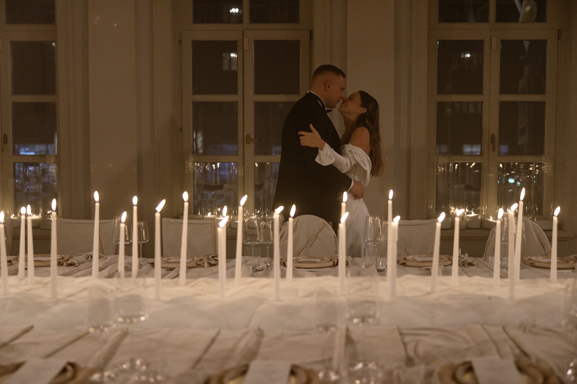 От флористики полностью отказались, зато были сотни свечей — на столе и на всех подоконниках — это создавало впечатление сказочного бала. Декоратор Наташа Кацман создала сказку.