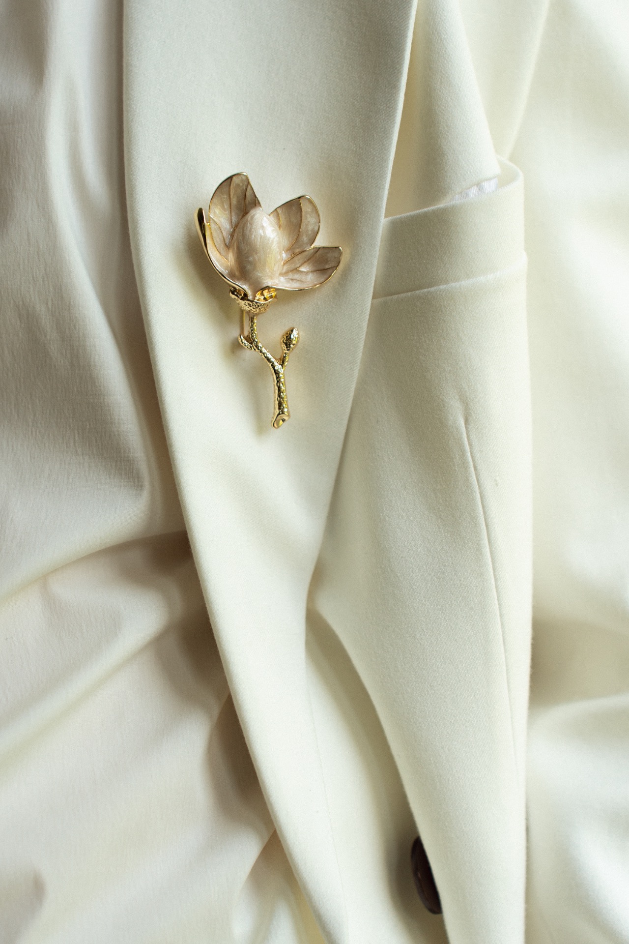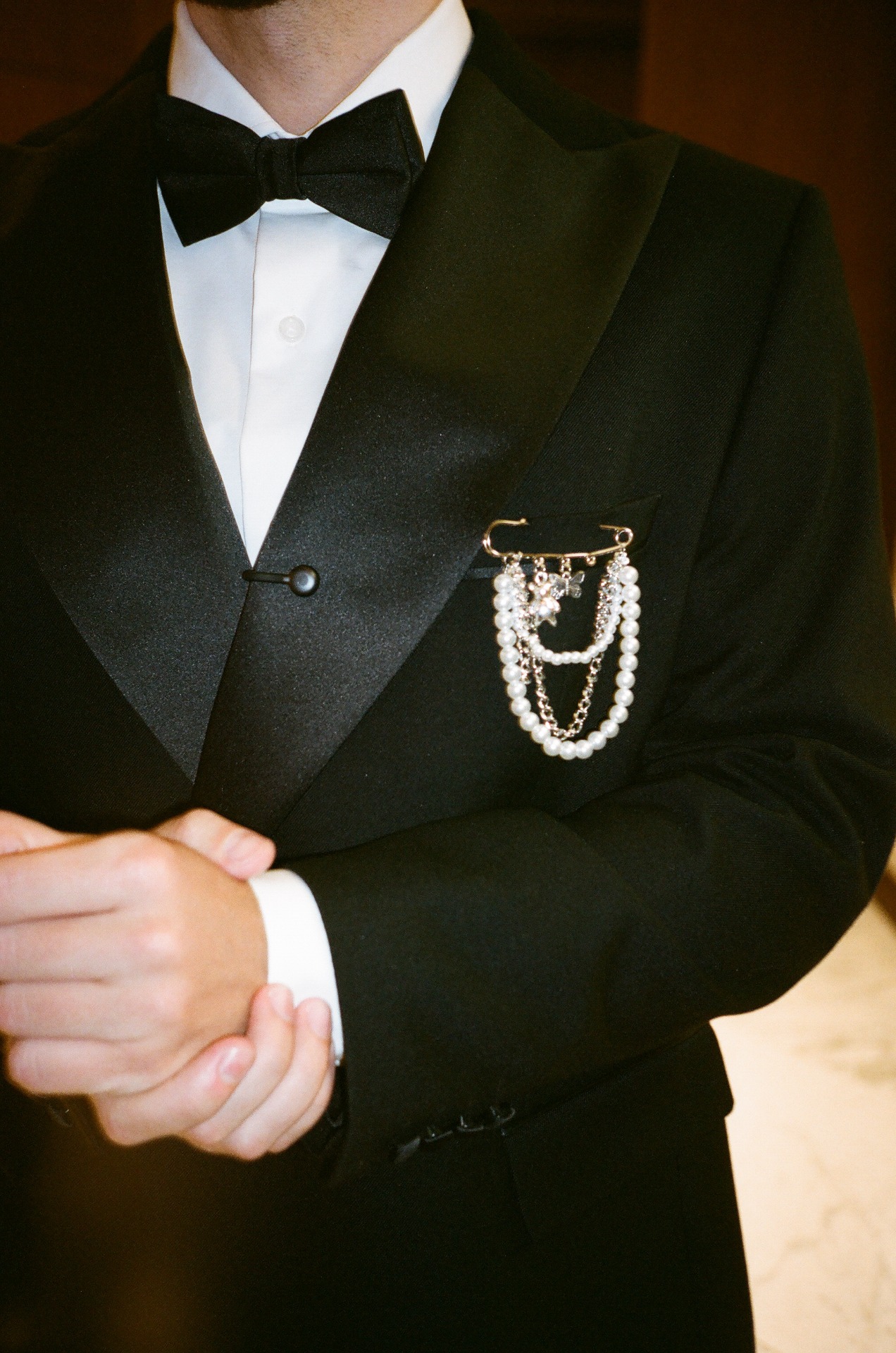 Выберите брошь в стилистике вашей свадьбы или же по интересам жениха. Такой аксессуар станет ярким акцентом на костюме и подчеркнёт индивидуальность.