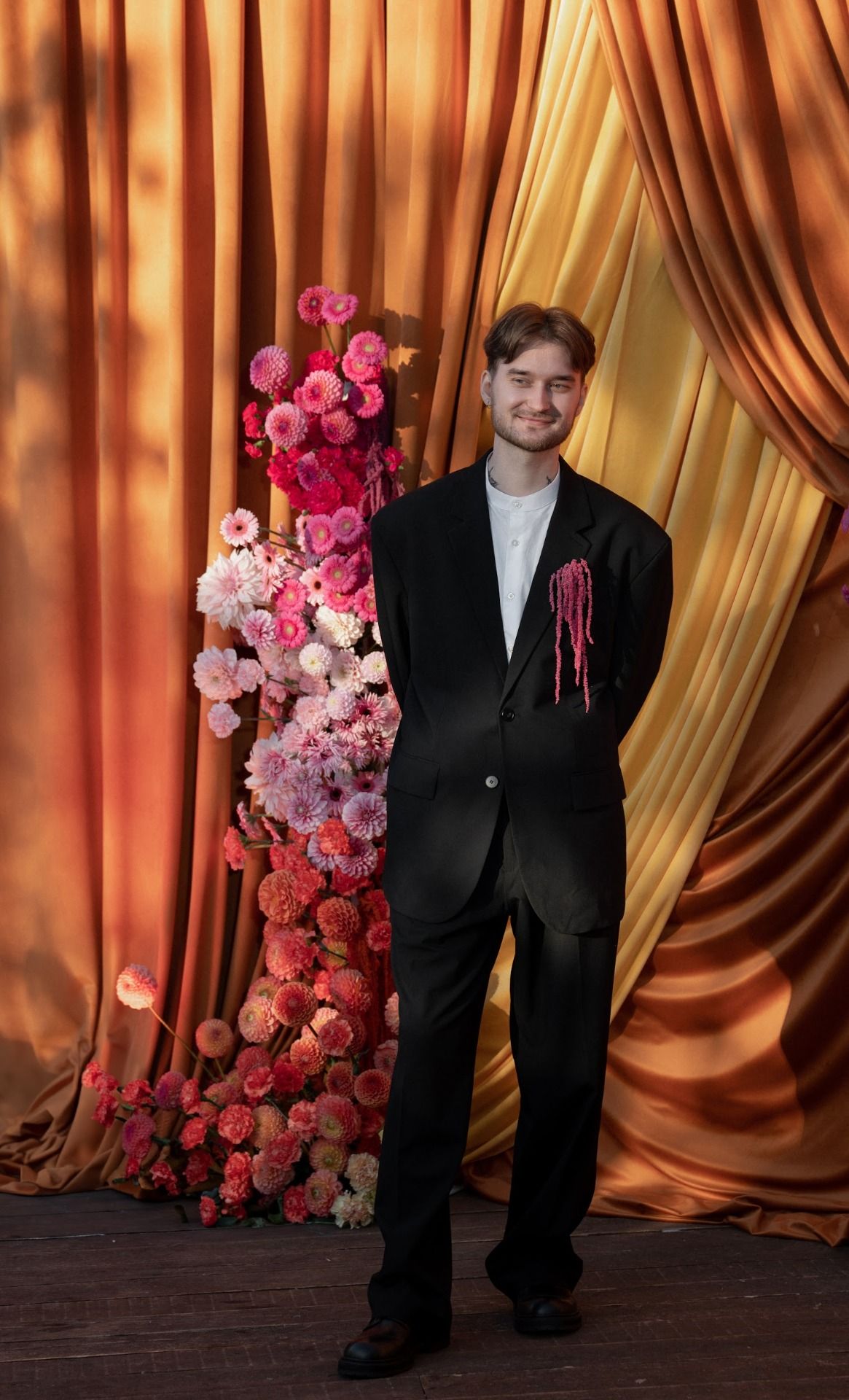 - Не забывайте, что бутоньерку крепят с левой стороны пиджака, пальто или даже жилетки.