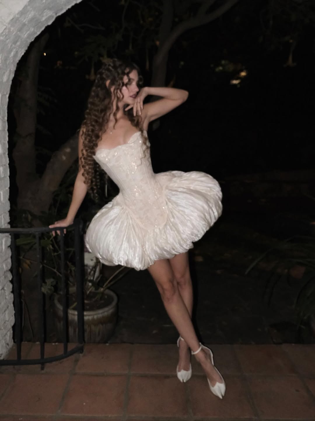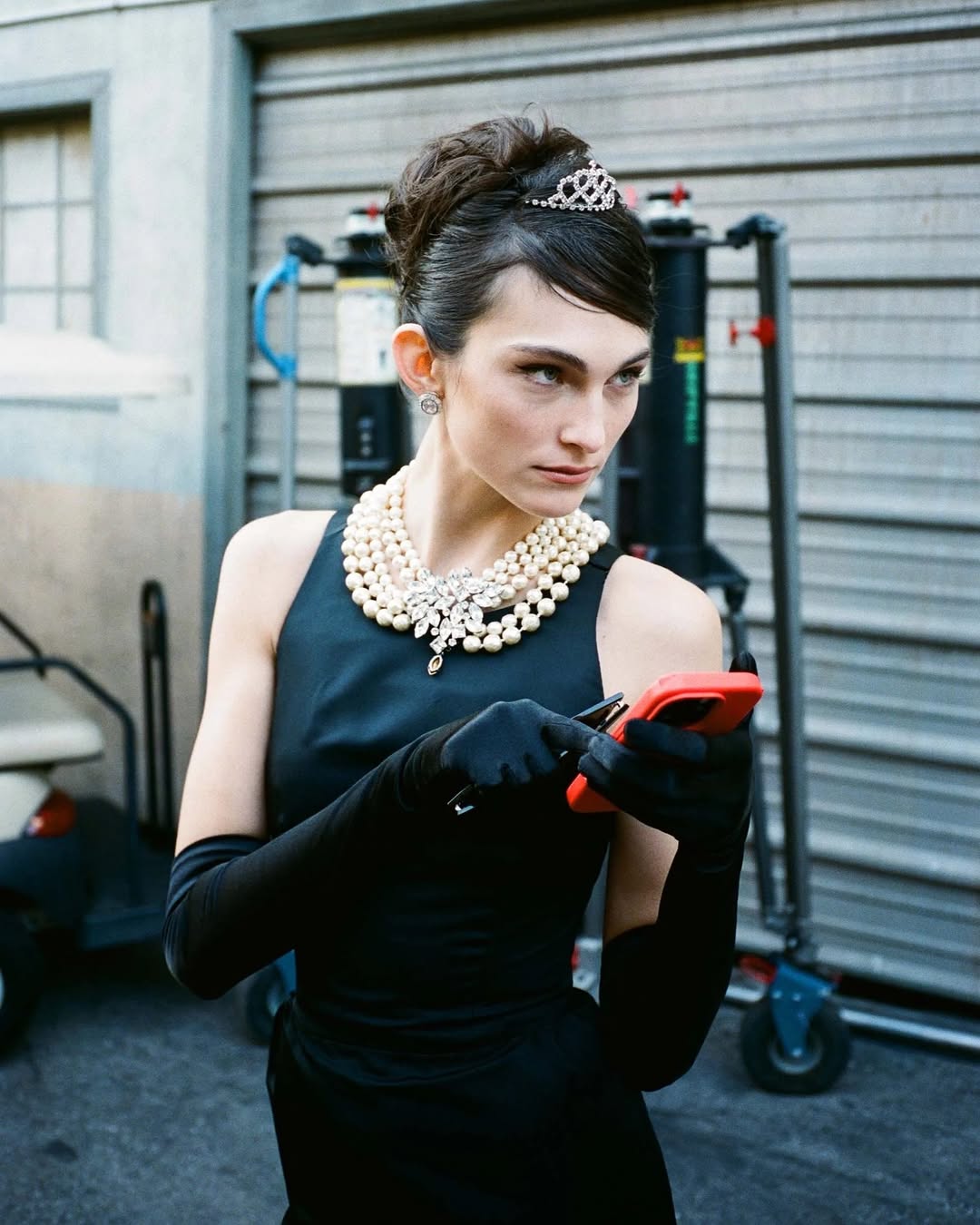Красавица Нина Добрев вдохновилась образом Одри Хёпберн и выбрала кастомное платье от Alaia из коллекции 1996 года.