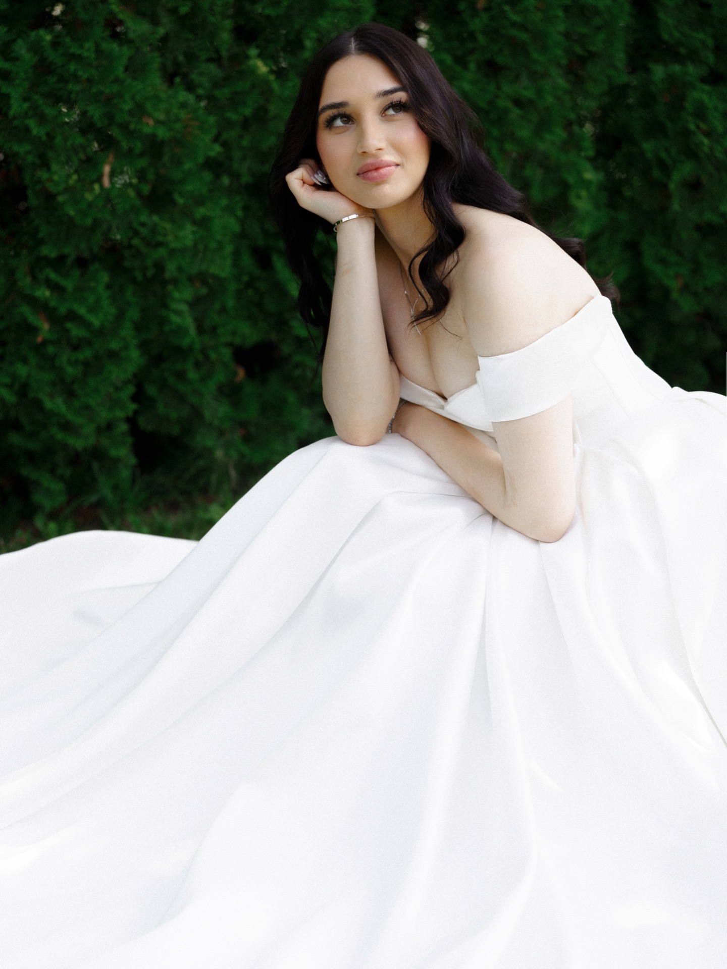 У меня было два образа. Для церемонии я выбрала кружевное платье от “Кураж” с жемчужными акцентами, а для вечера — корсетное атласное платье в винтажном стиле. Мои наряды дополнили различные аксессуары, среди которых был особенный подарок мамы — украшение, которое теперь станет нашей семейной реликвией.