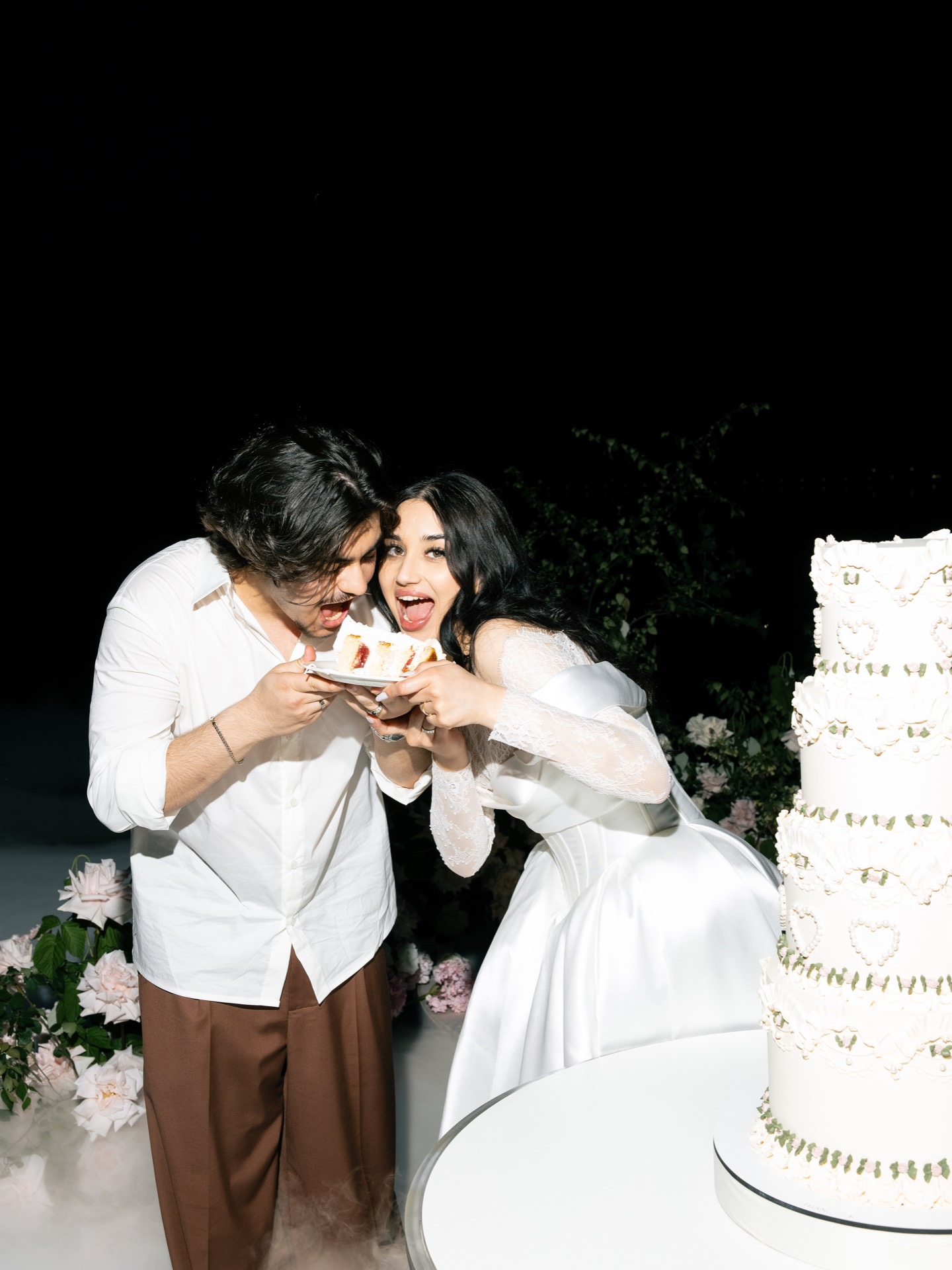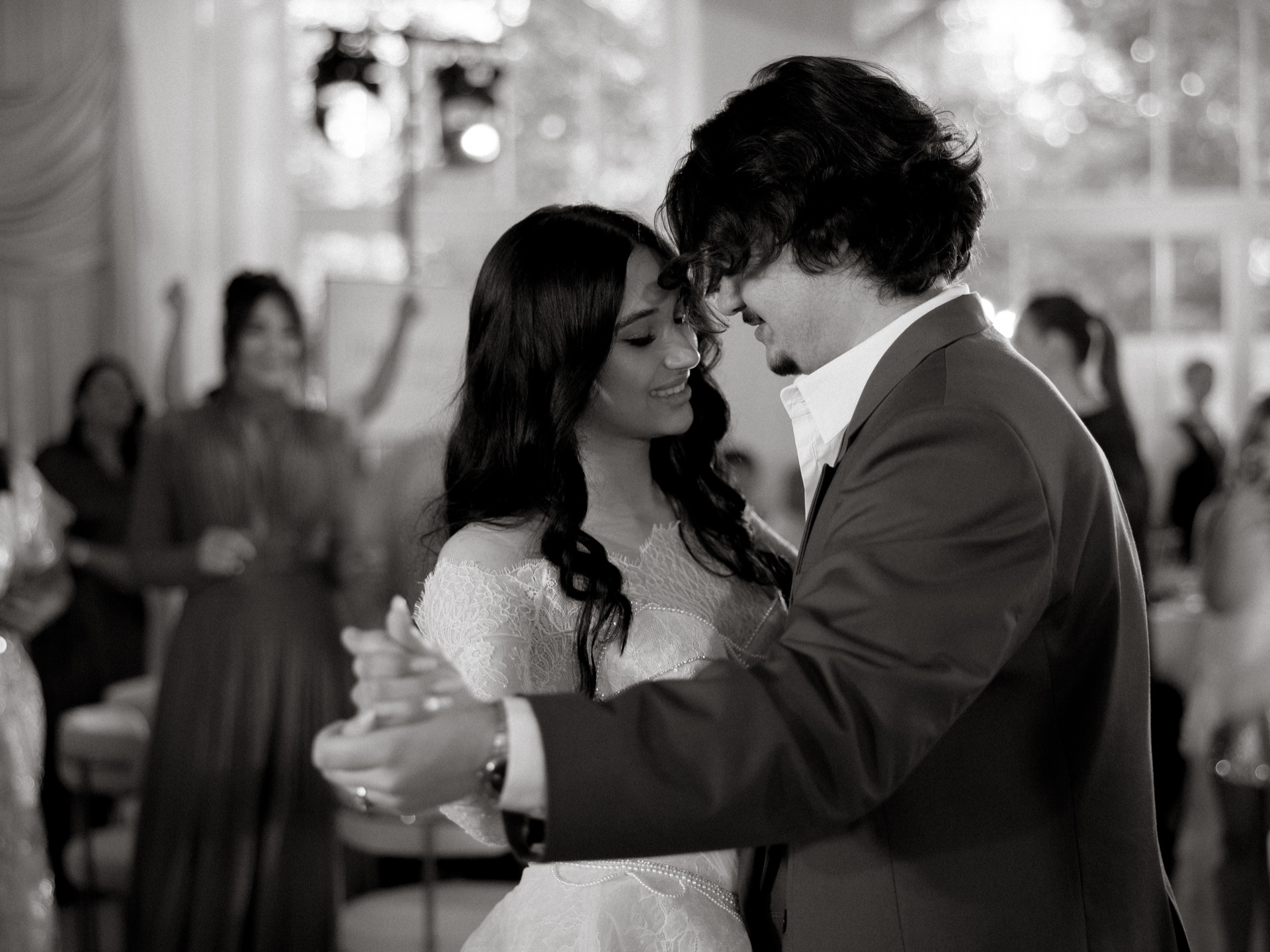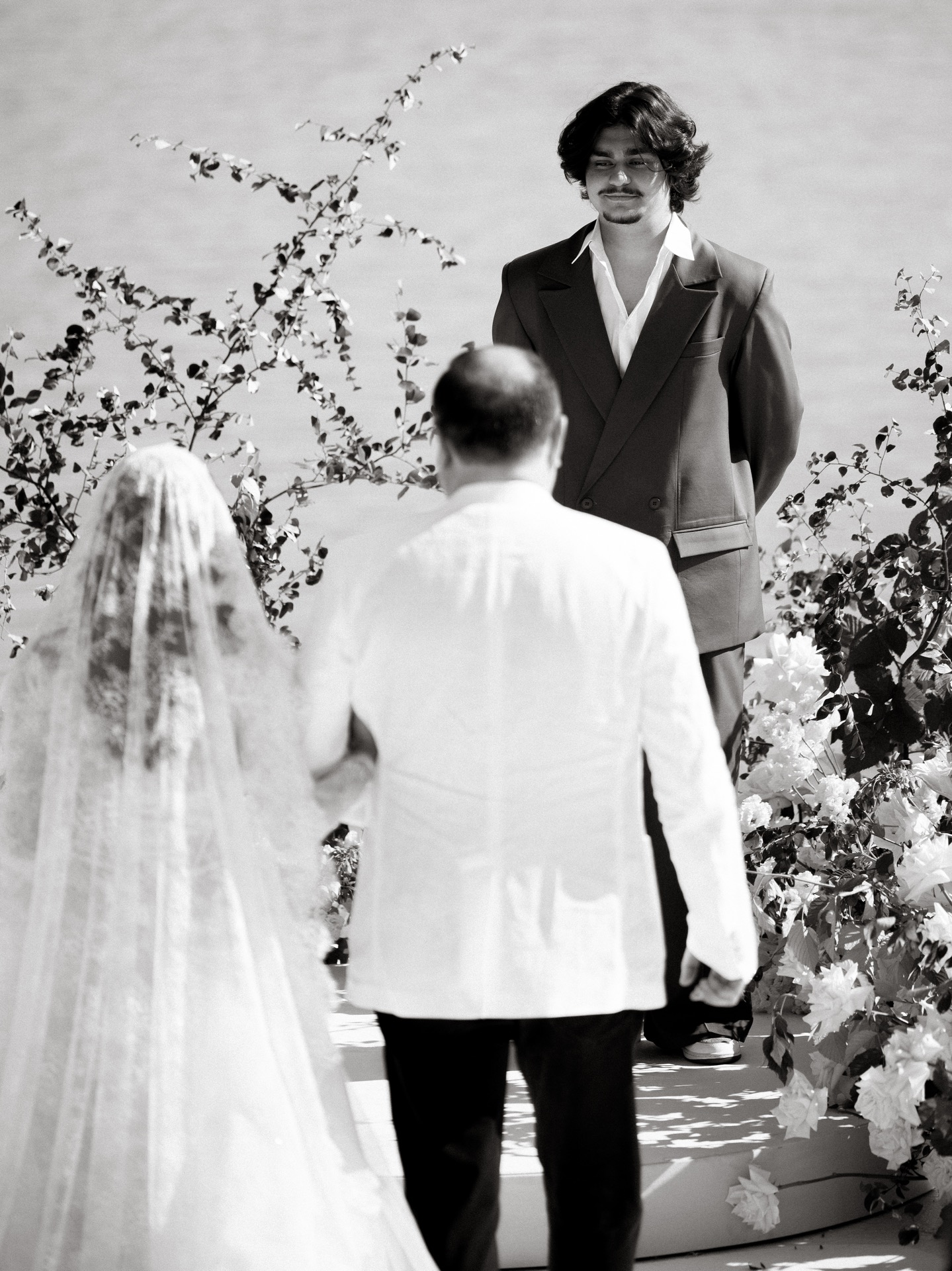 Церемония стала самым трогательным акцентом. К алтарю меня вёл папа, и этот момент я никогда не забуду. Наш ведущий Адис Маммо рассказывал историю нашей пары, а художница в это время писала картину прямо во время церемонии — получилось невероятно красиво и символично. Это стало нашей отсылкой к винтажной эстетике и эпохе балов, когда ещё не существовало фотоаппаратов.