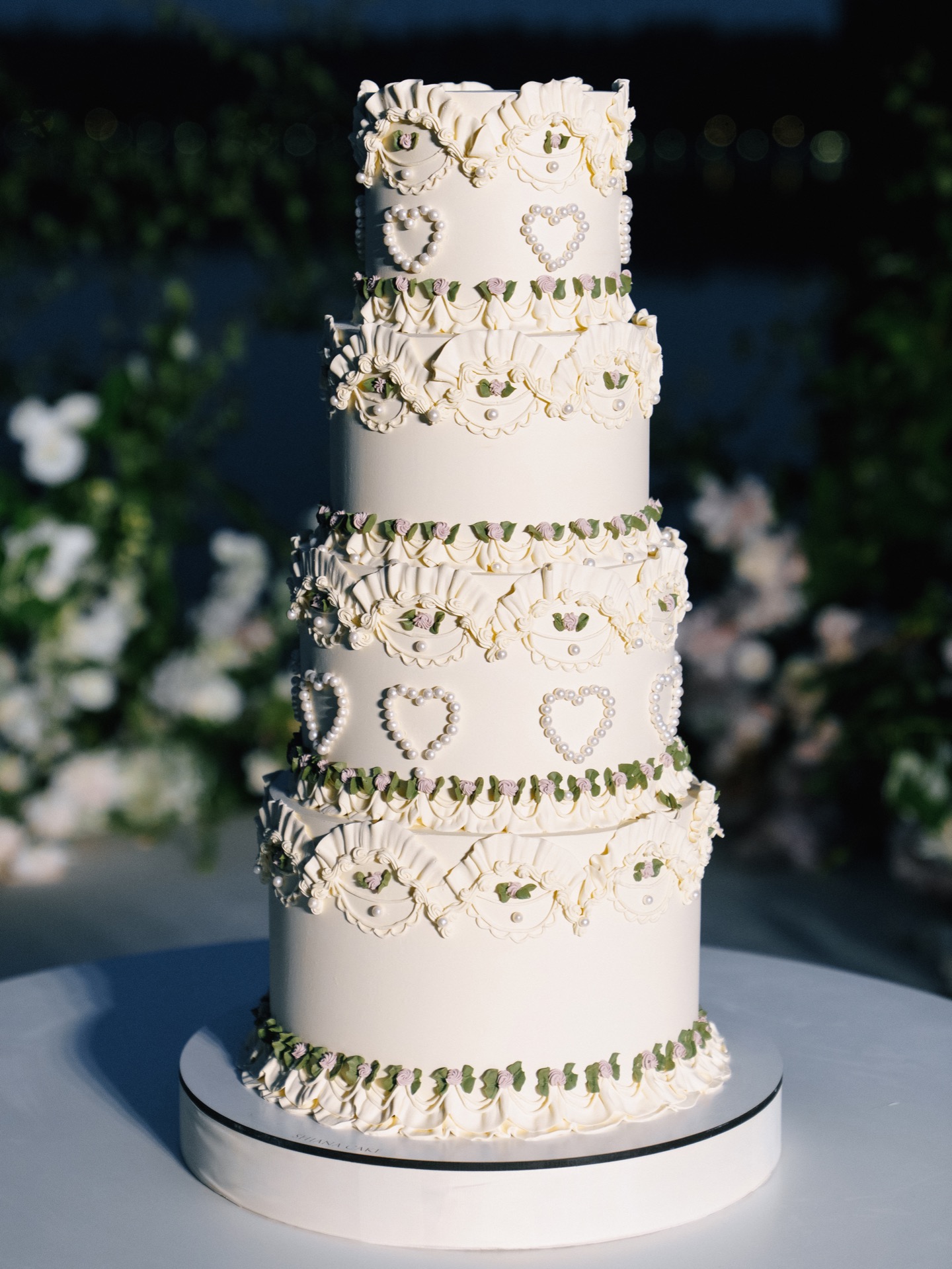 Завершением вечера стал четырёхъярусный торт в винтажном стиле, созданный по моим референсам.