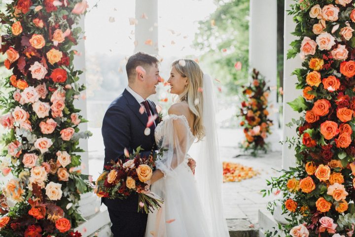 Мы решили выбрать сентябрь на свой страх и риск. Переживали из-за погоды. Затем решили, что надо внести осенние мотивы в цвета. Так появился оранжевый цвет в декоре стола.