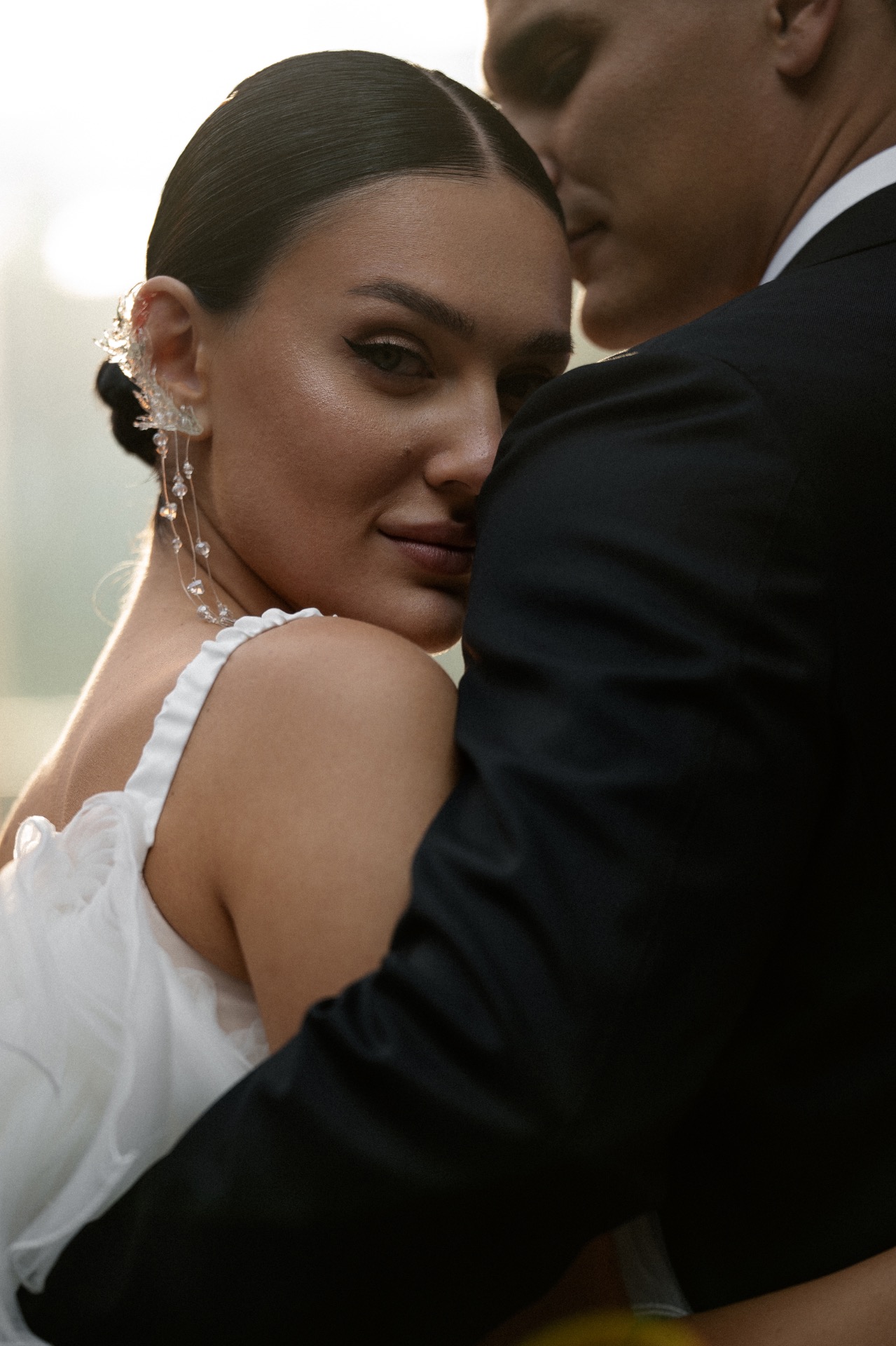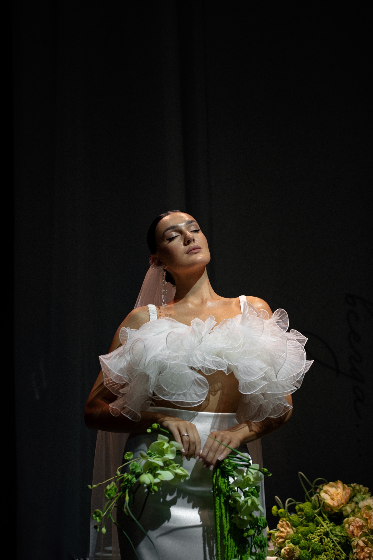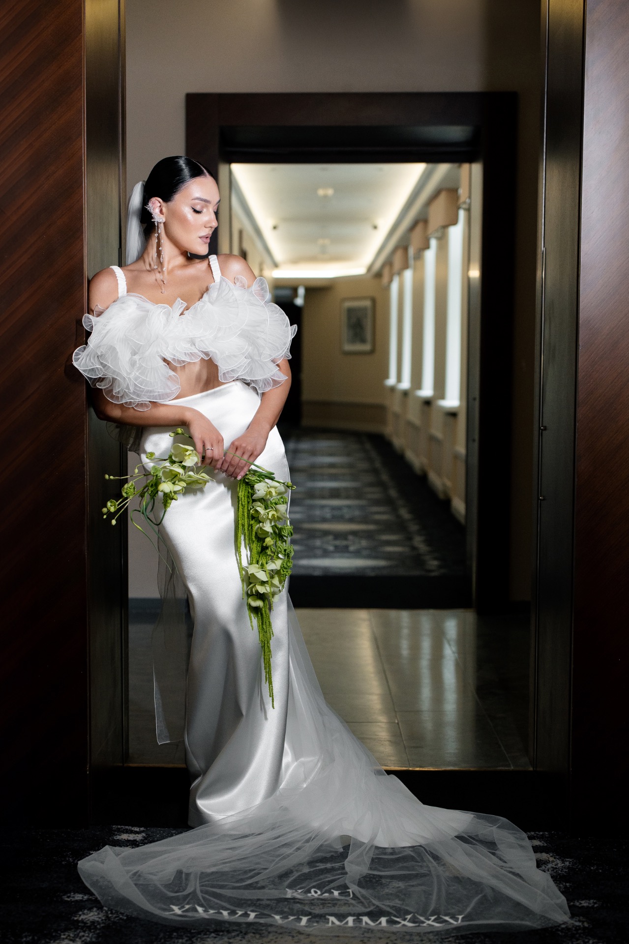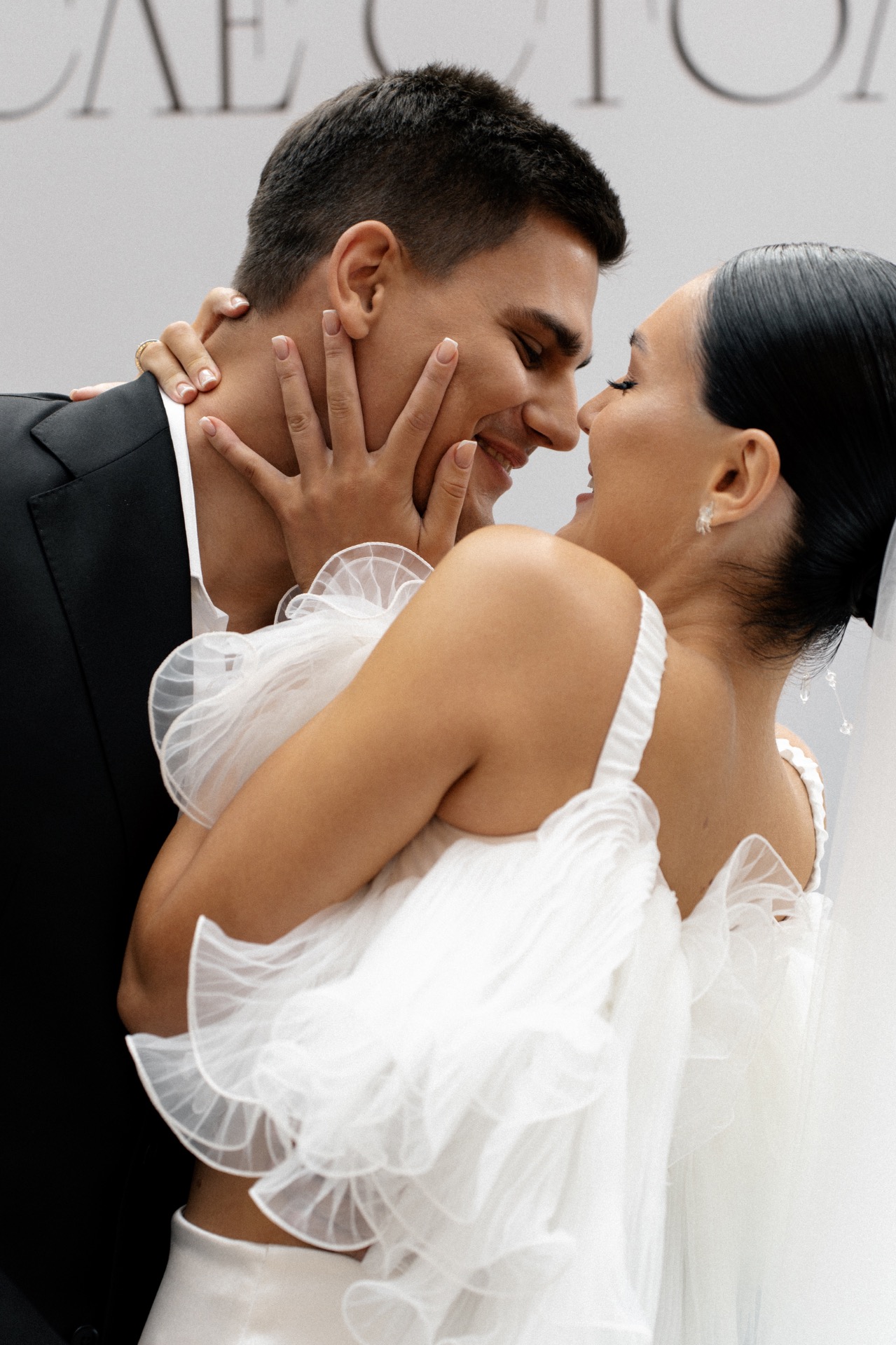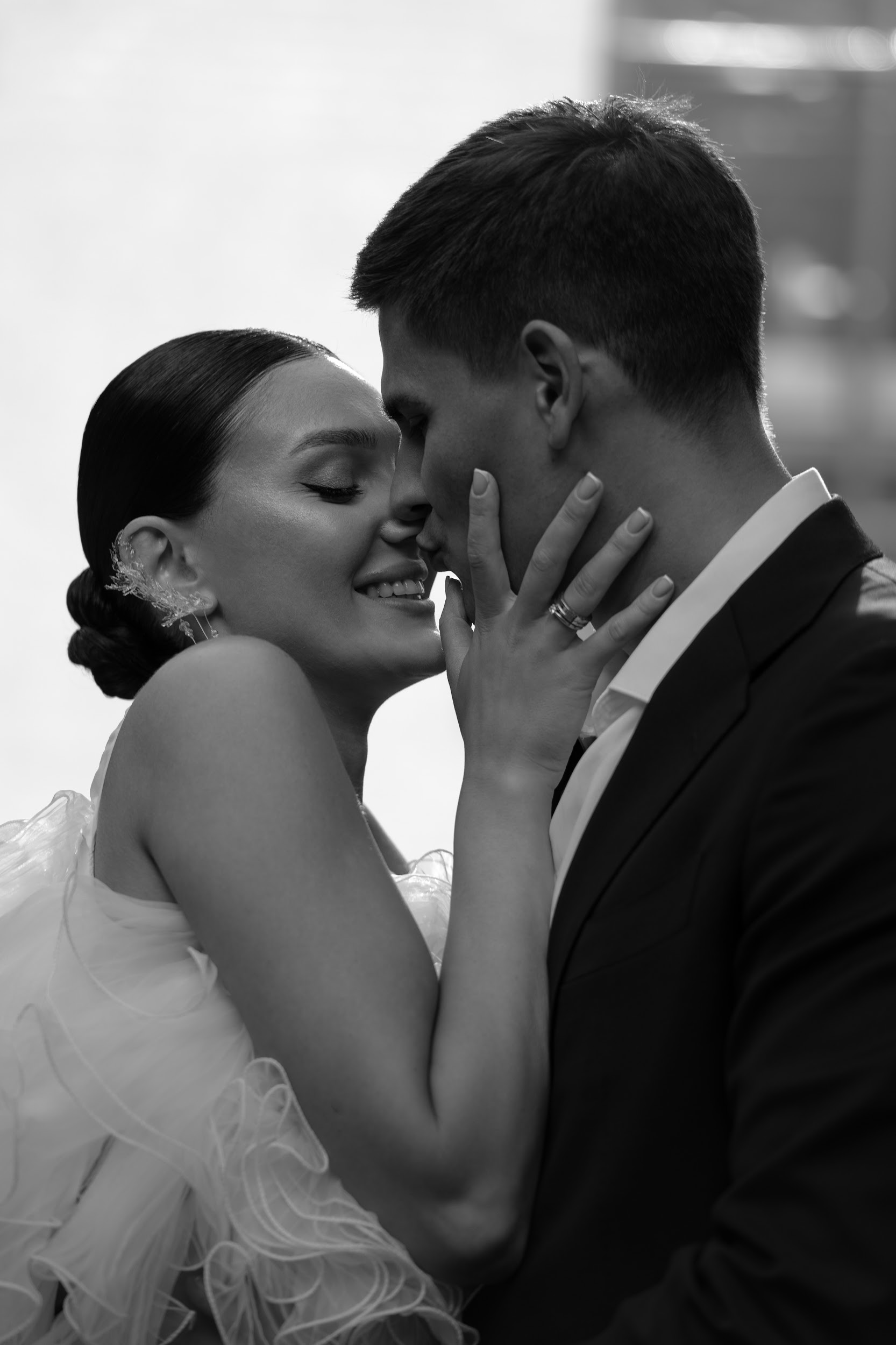 Вся моя жизнь связана с контентом, и я точно знала, что у нас будет очень красиво. Ещё до предложения я представляла, какую свадьбу хочу — сочетание чёрного, белого цветов и живой необычной флористики. Особое внимание мы уделили необычной форме букета — это любовь.