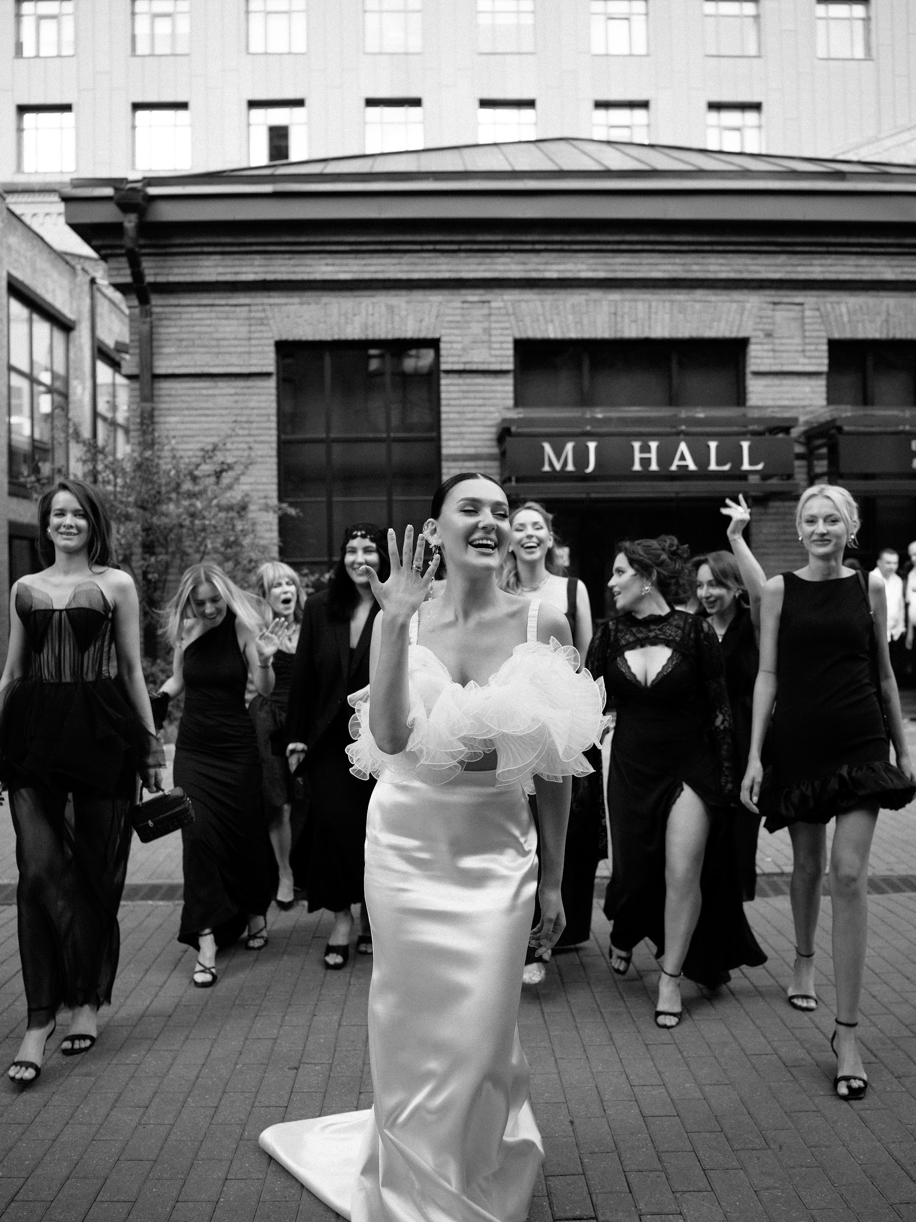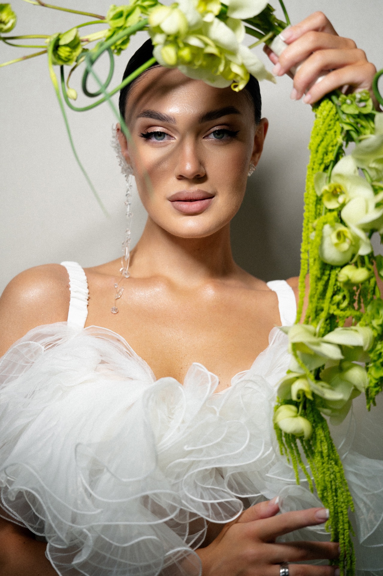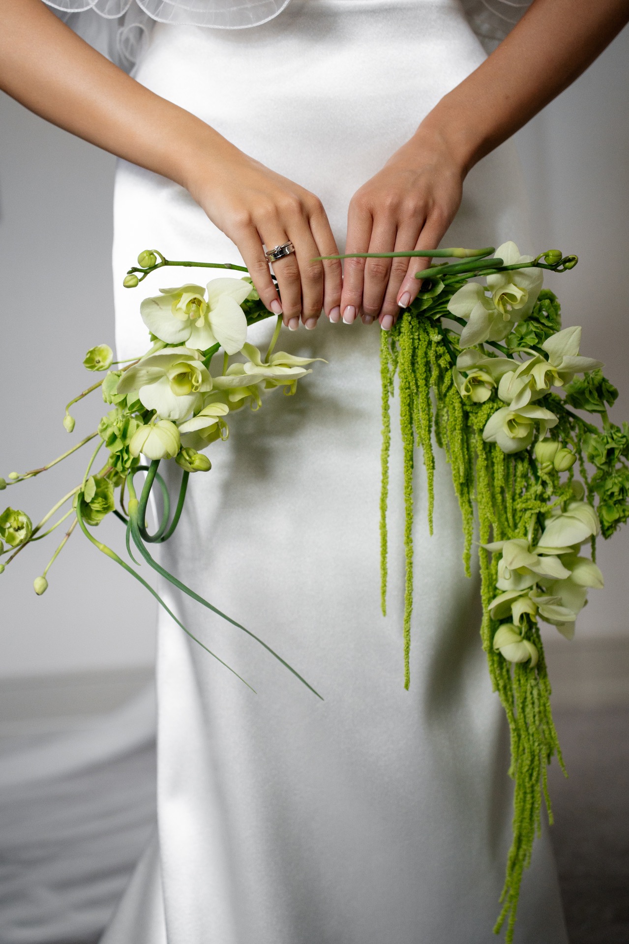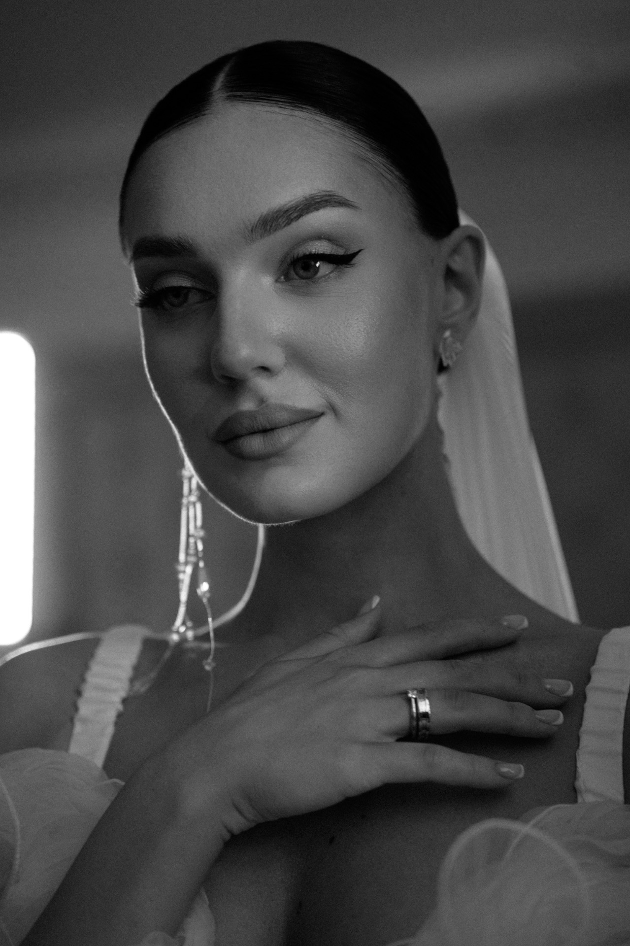 Вся моя жизнь связана с контентом, и я точно знала, что у нас будет очень красиво. Ещё до предложения я представляла, какую свадьбу хочу — сочетание чёрного, белого цветов и живой необычной флористики. Особое внимание мы уделили необычной форме букета — это любовь.