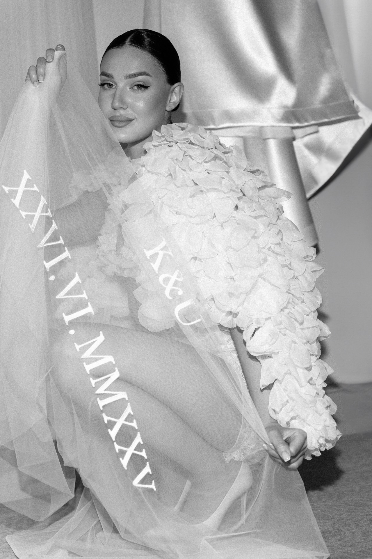 Свои образы я выбрала не с первого раза. Основное платье я нашла в моём самом любимом салоне «Кураж». Я не забыла и про детали: сделала вышивку на фате у Nevesomost Brand.