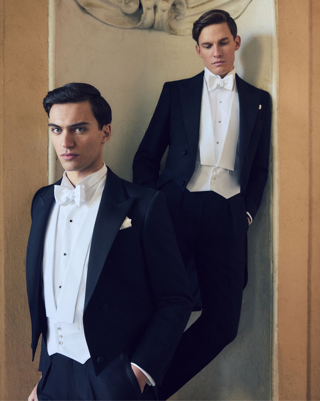 Это самый строгий и торжественный стиль дресс-кода: мужчины выбирают фрак с белой рубашкой и бабочкой, а женщины — длинное вечернее платье с изящными украшениями.