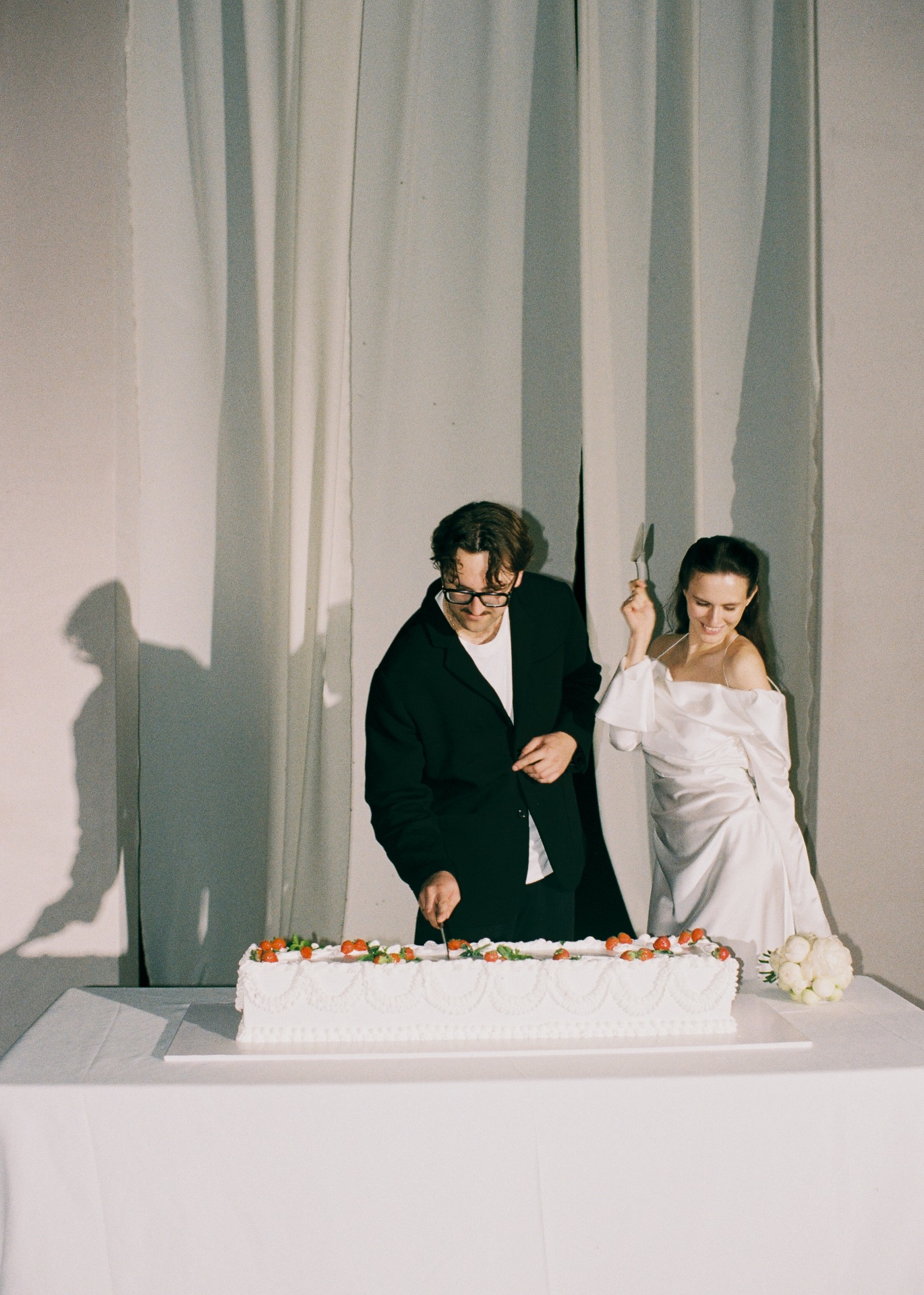 Концепция строилась вокруг белого цвета, что позволило объединить все элементы в целостное пространство, ставшее визуальным фоном для нас с Александром.