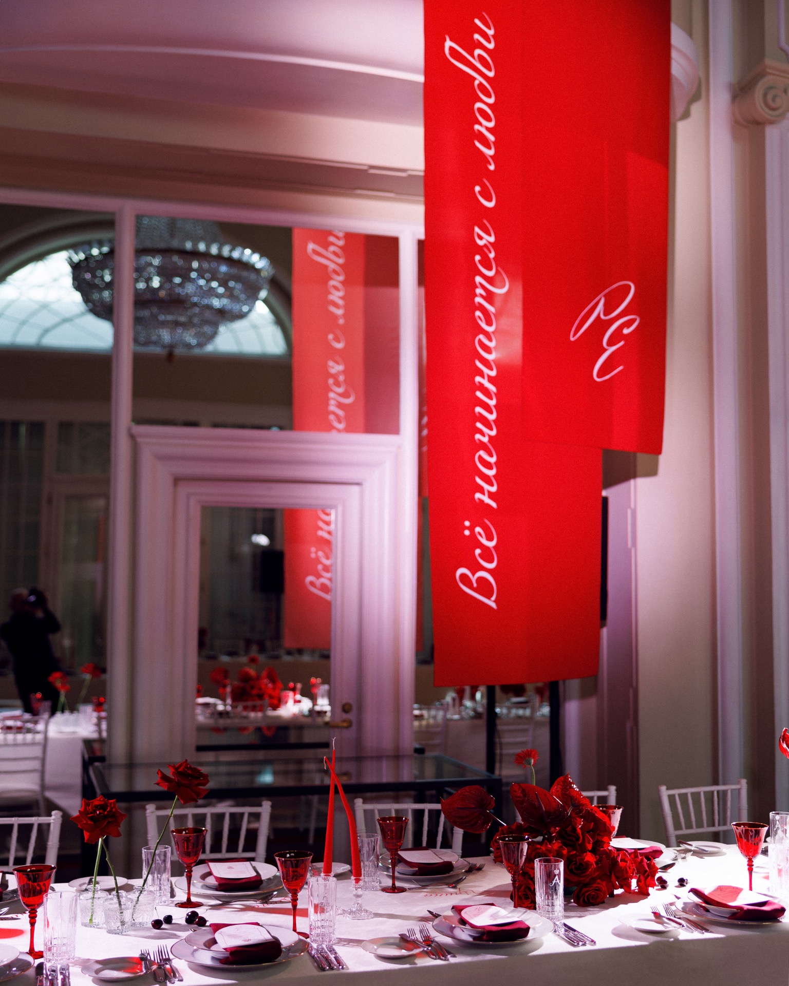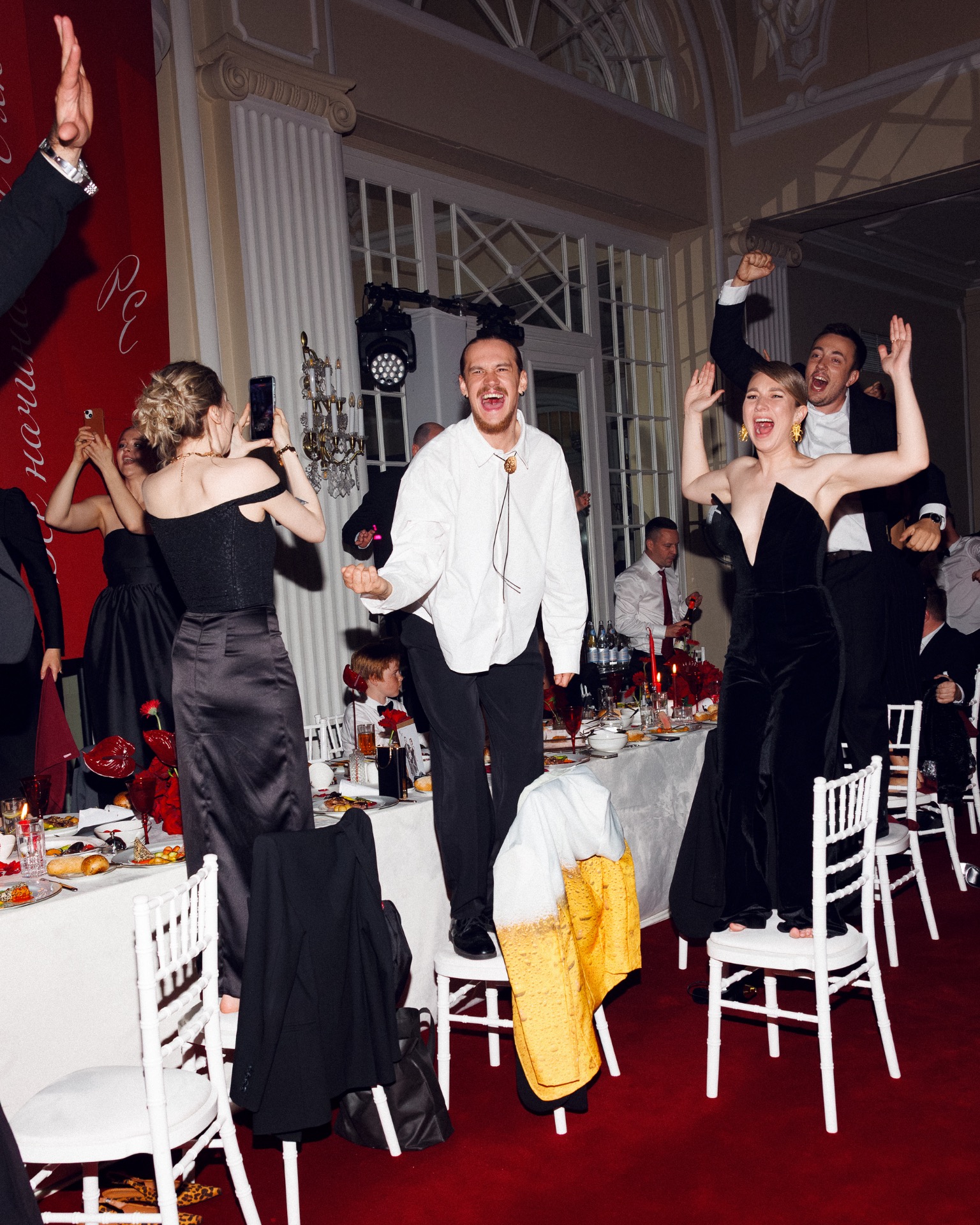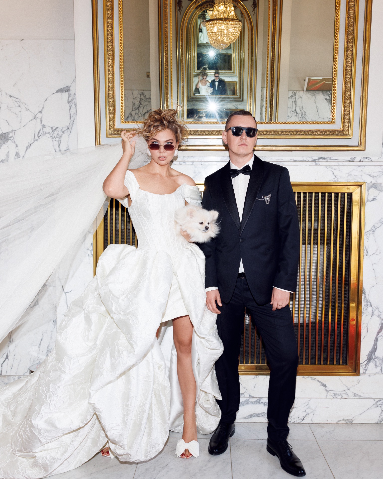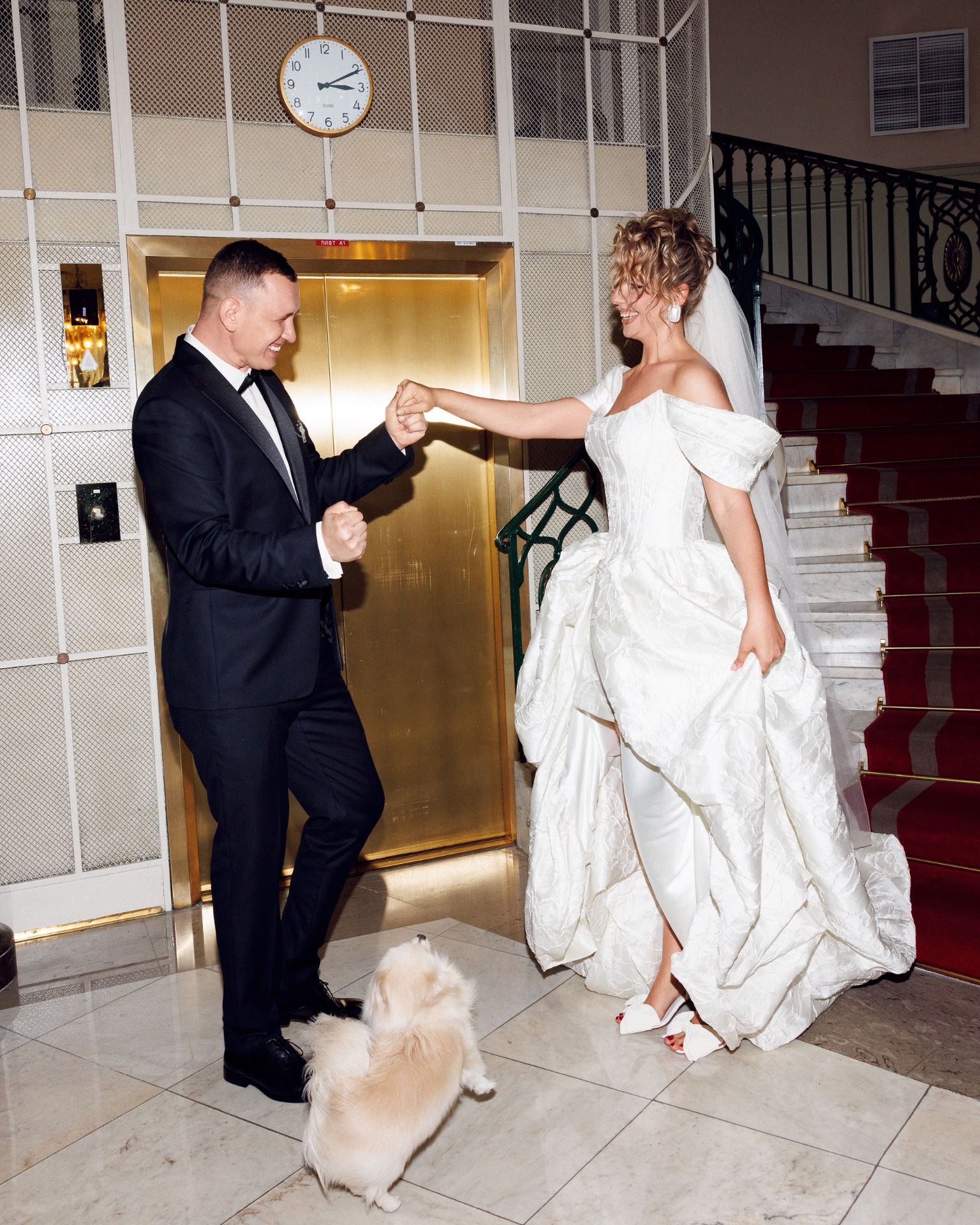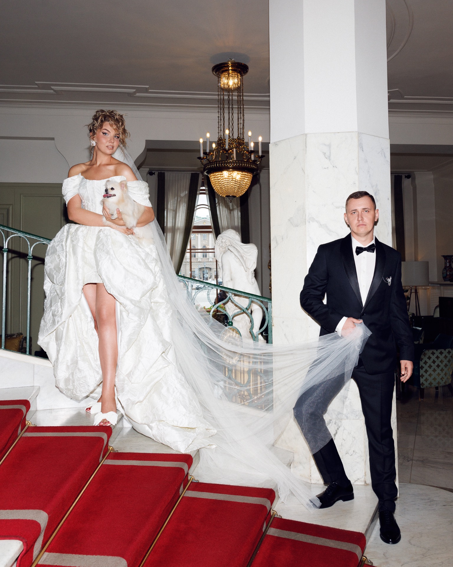 Мои сборы проходили в лучшем люксе легендарной «Астории». Просторный номер, вид на центр города, утро: всё было прямо как в кино. Вместе со мной была моя любимая собачка Анфиса. Мы стояли на столах, пили шампанское, валялись на полу и смеялись до слёз. В номере стояла атмосфера свободы, красоты и любви.