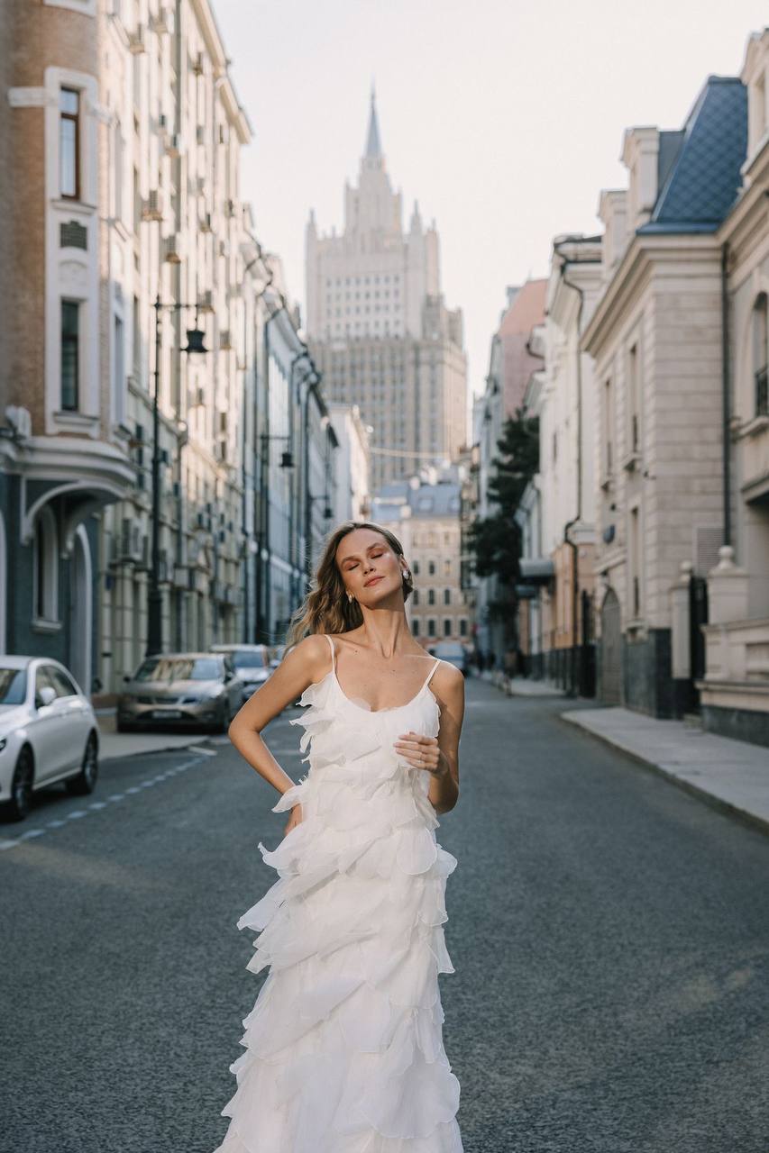 Теоретически, платье на второй день также может быть классическим свадебным, но, скорее всего, тебе захочется надеть что-то более комфортное, уютное и при этом нарядное, всё ещё создающее ощущение праздника.