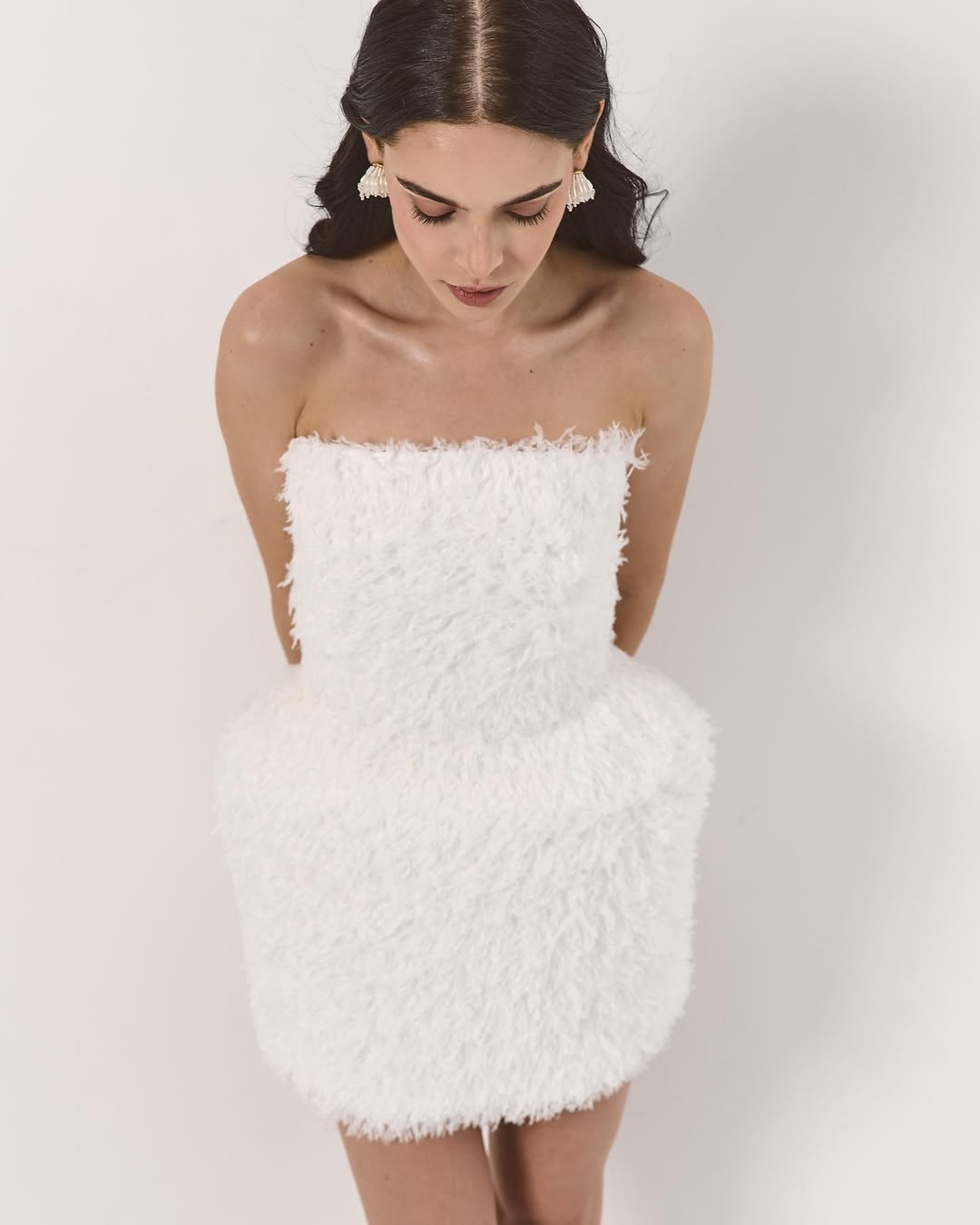 Определённо, фаворит всех невест — мини! Особое внимание уделяется ткани и силуэту: актуальны фактурные материалы, архитектурные драпировки, чёткие линии.
