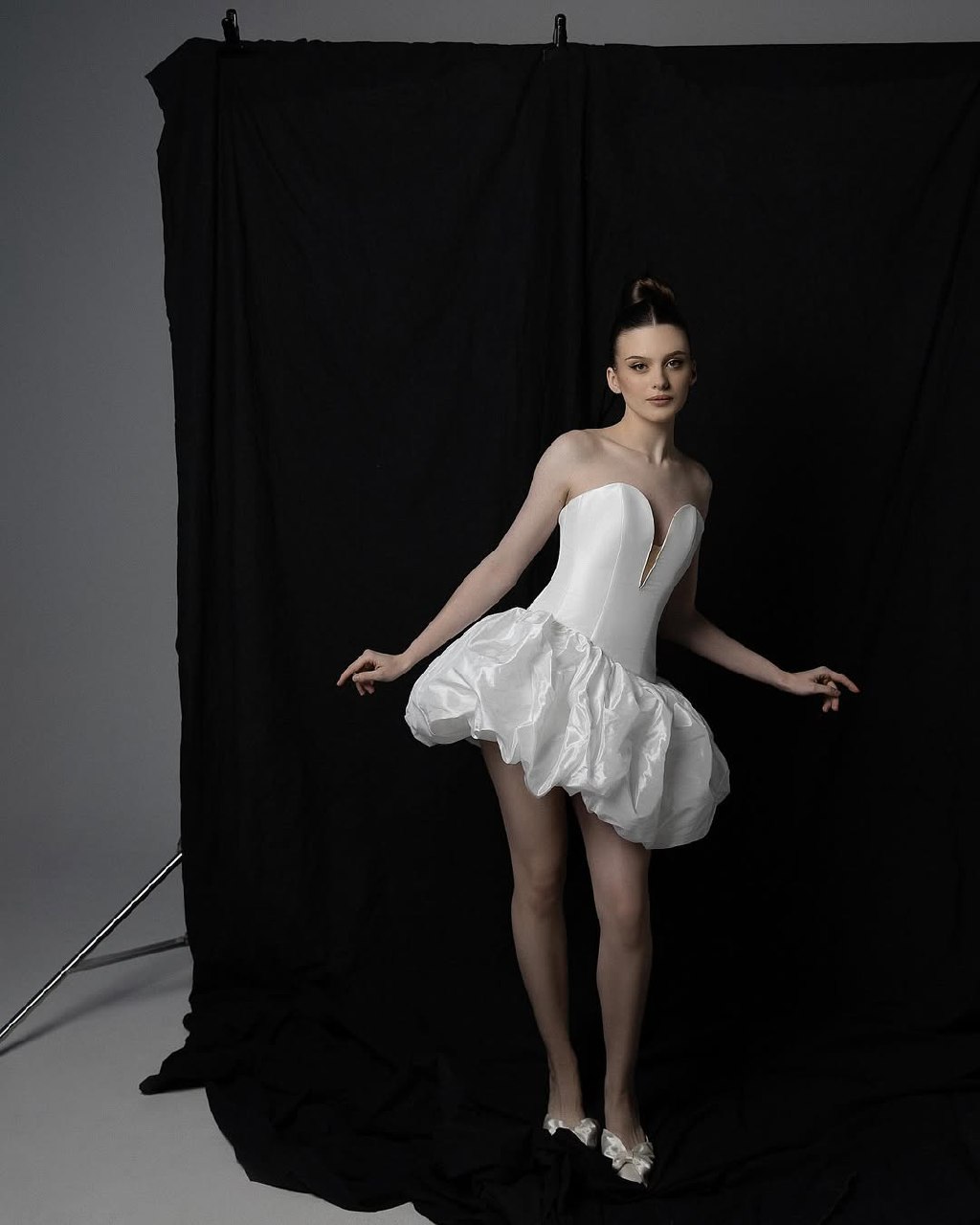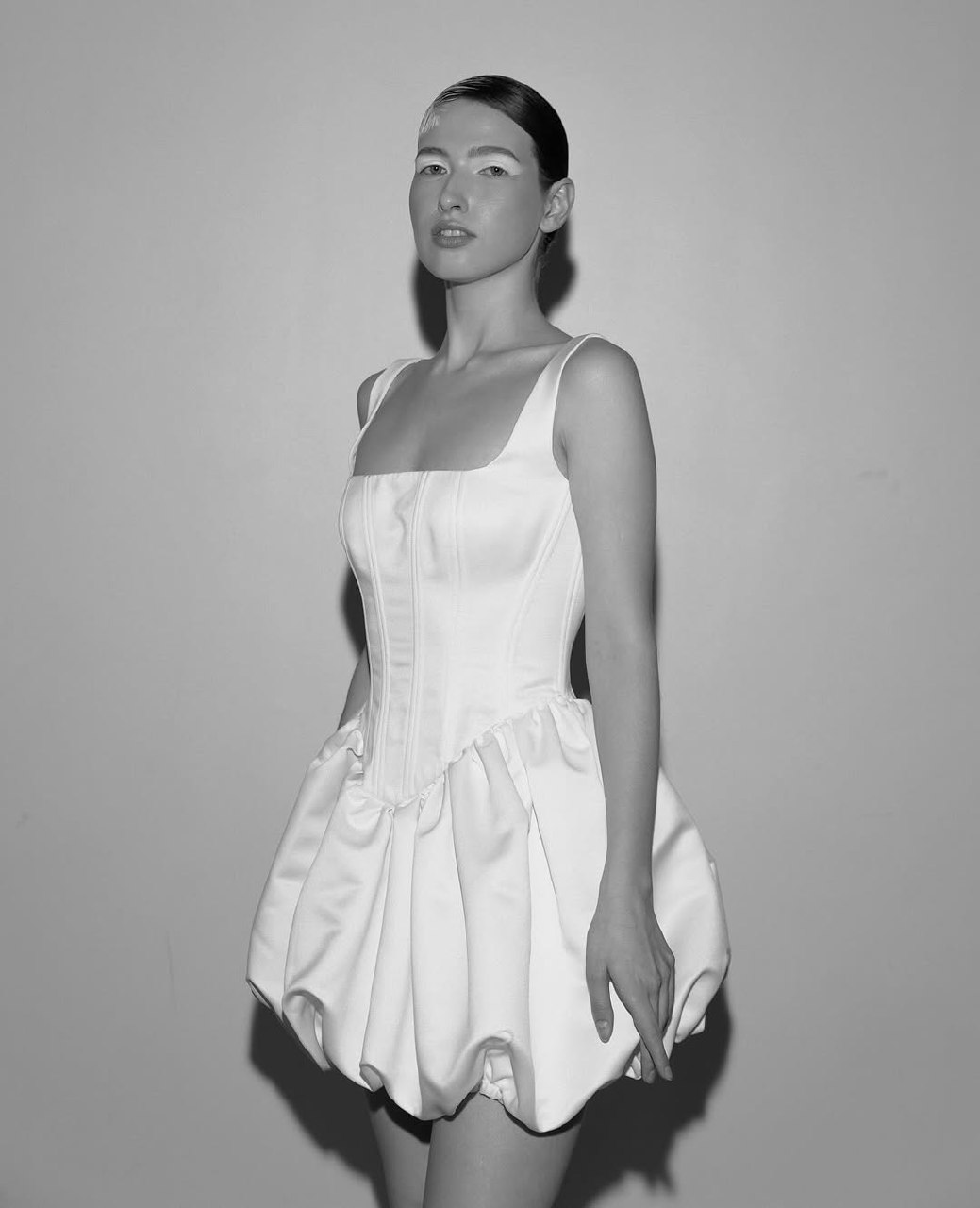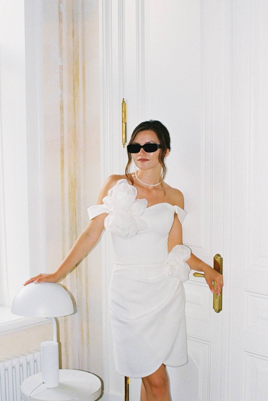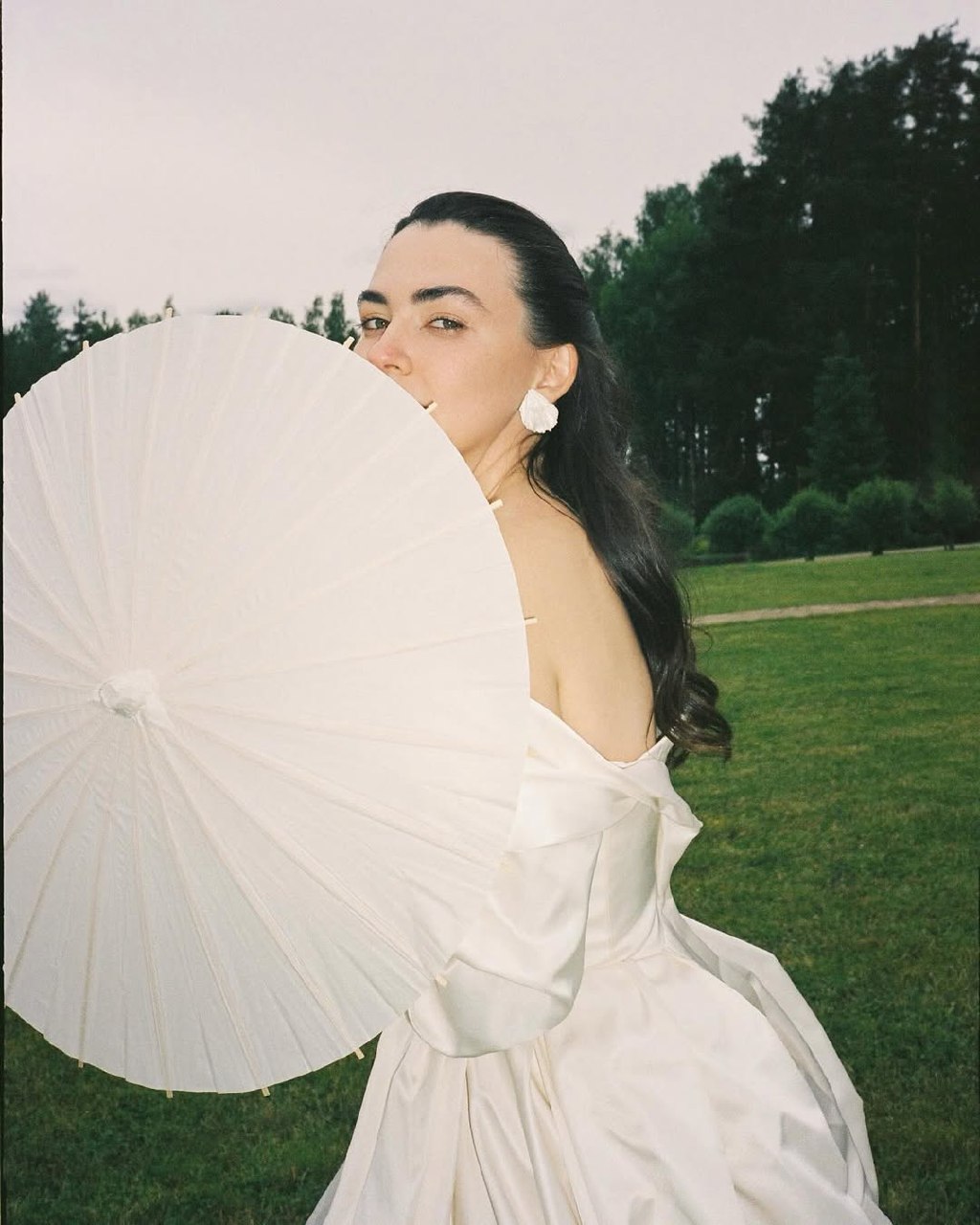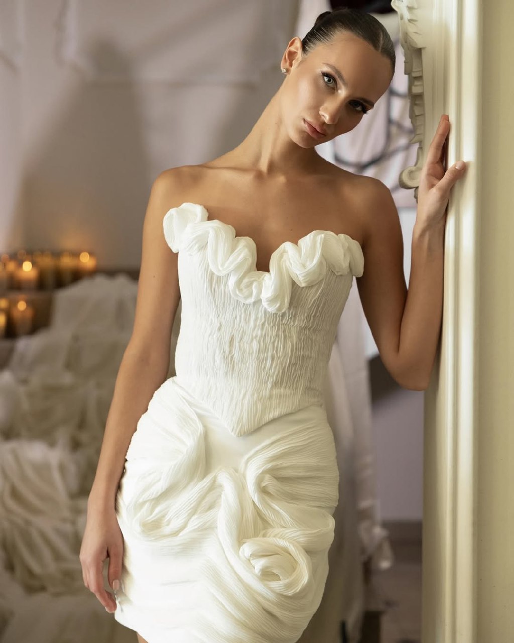 Если образ на церемонию более классический и торжественный, то второй — это пространство для самовыражения. Именно здесь можно позволить себе чуть больше свободы: поиграть с силуэтом, длиной, фактурой, добавить неожиданные акценты или выбрать более смелые решения.