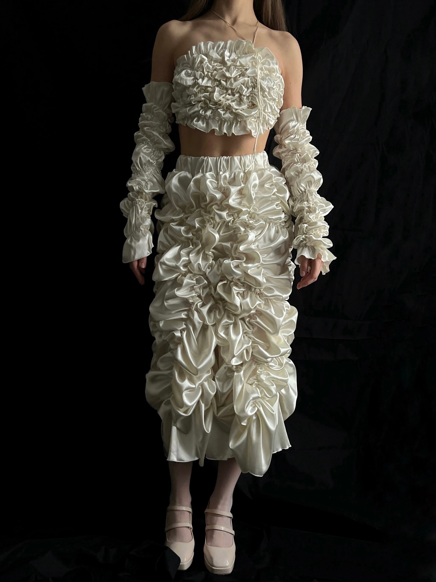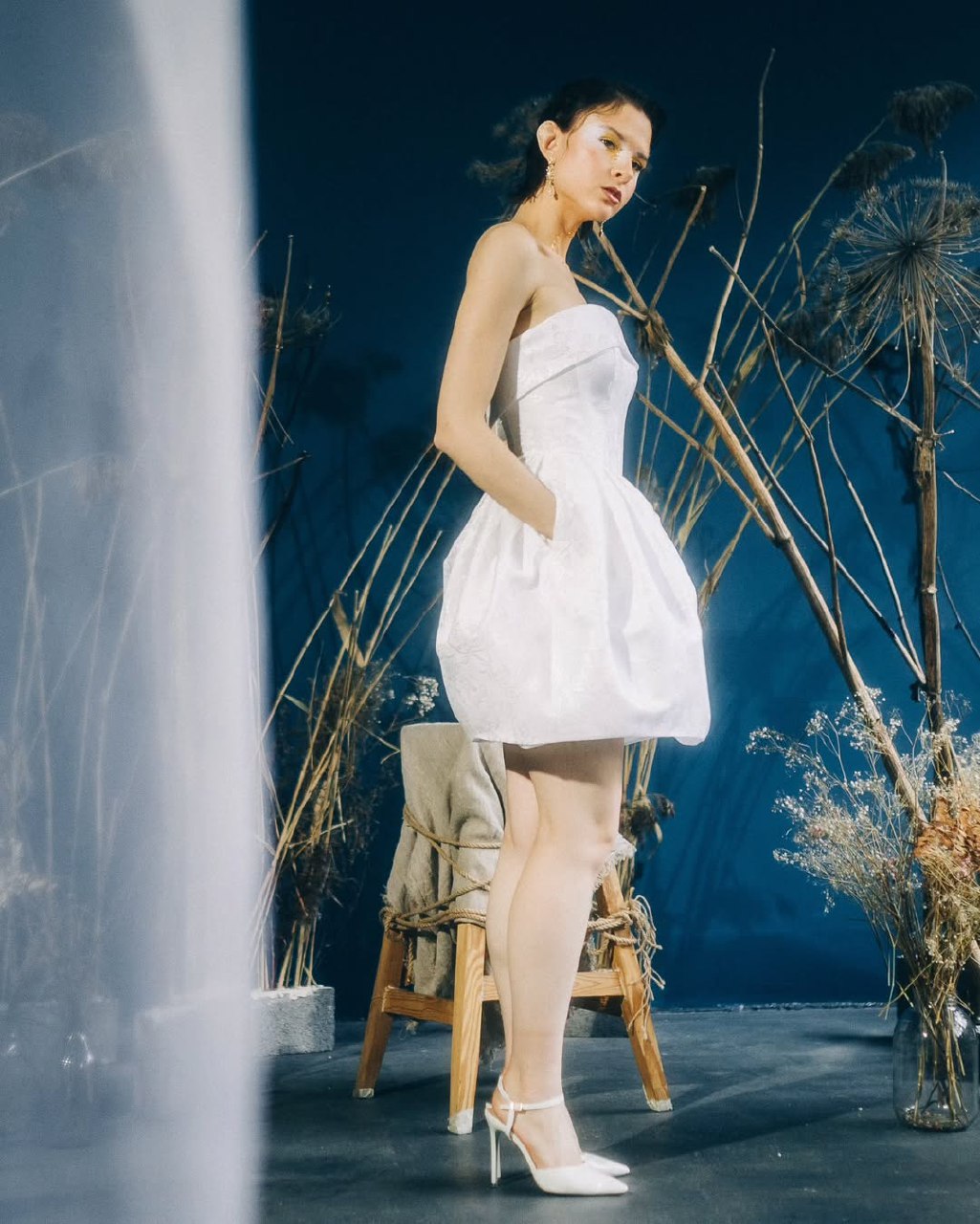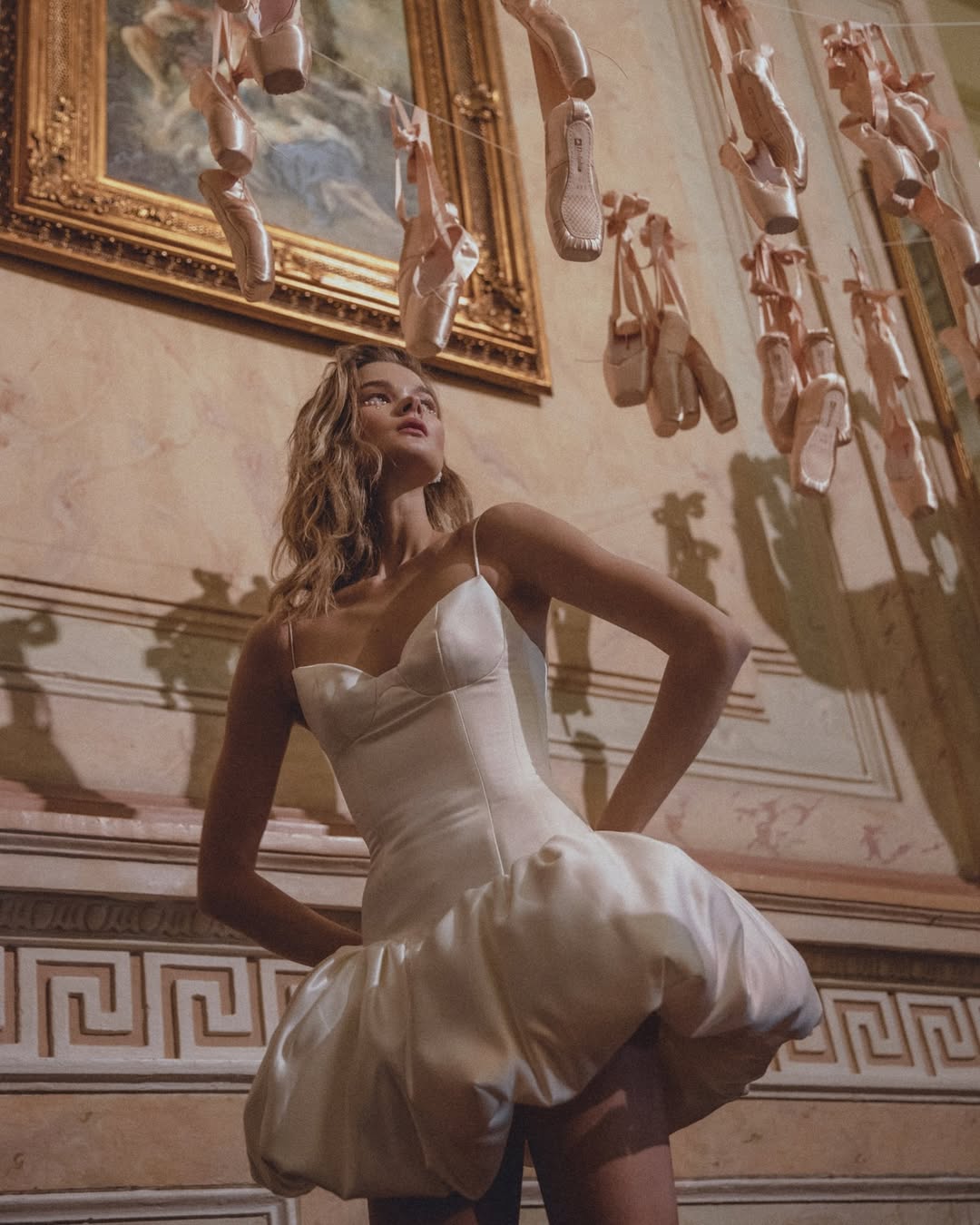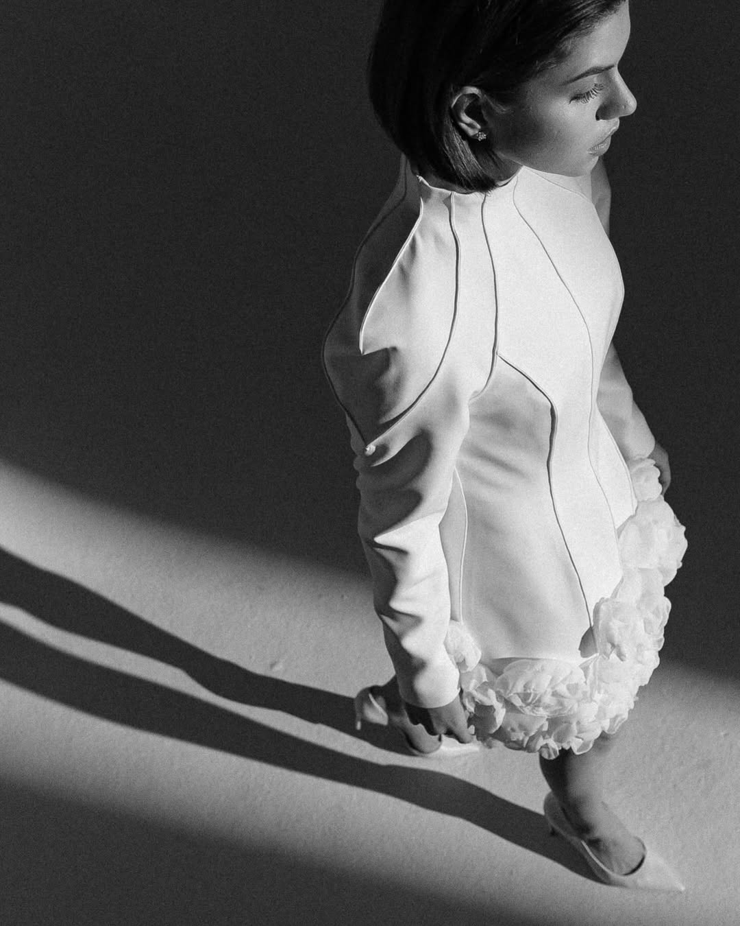 Если образ на церемонию более классический и торжественный, то второй — это пространство для самовыражения. Именно здесь можно позволить себе чуть больше свободы: поиграть с силуэтом, длиной, фактурой, добавить неожиданные акценты или выбрать более смелые решения.