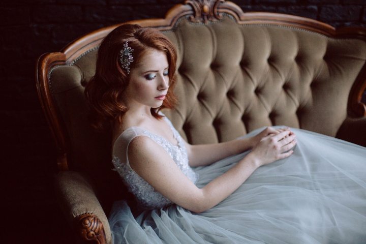 В день съемок и пространство, и свет, и состояние моделей вместе с их проработанными образами были созвучны нашей главной идее — создания сумеречной атмосферы, в которой существует возвышенная красота рыжеволосых героинь, будущих невест.