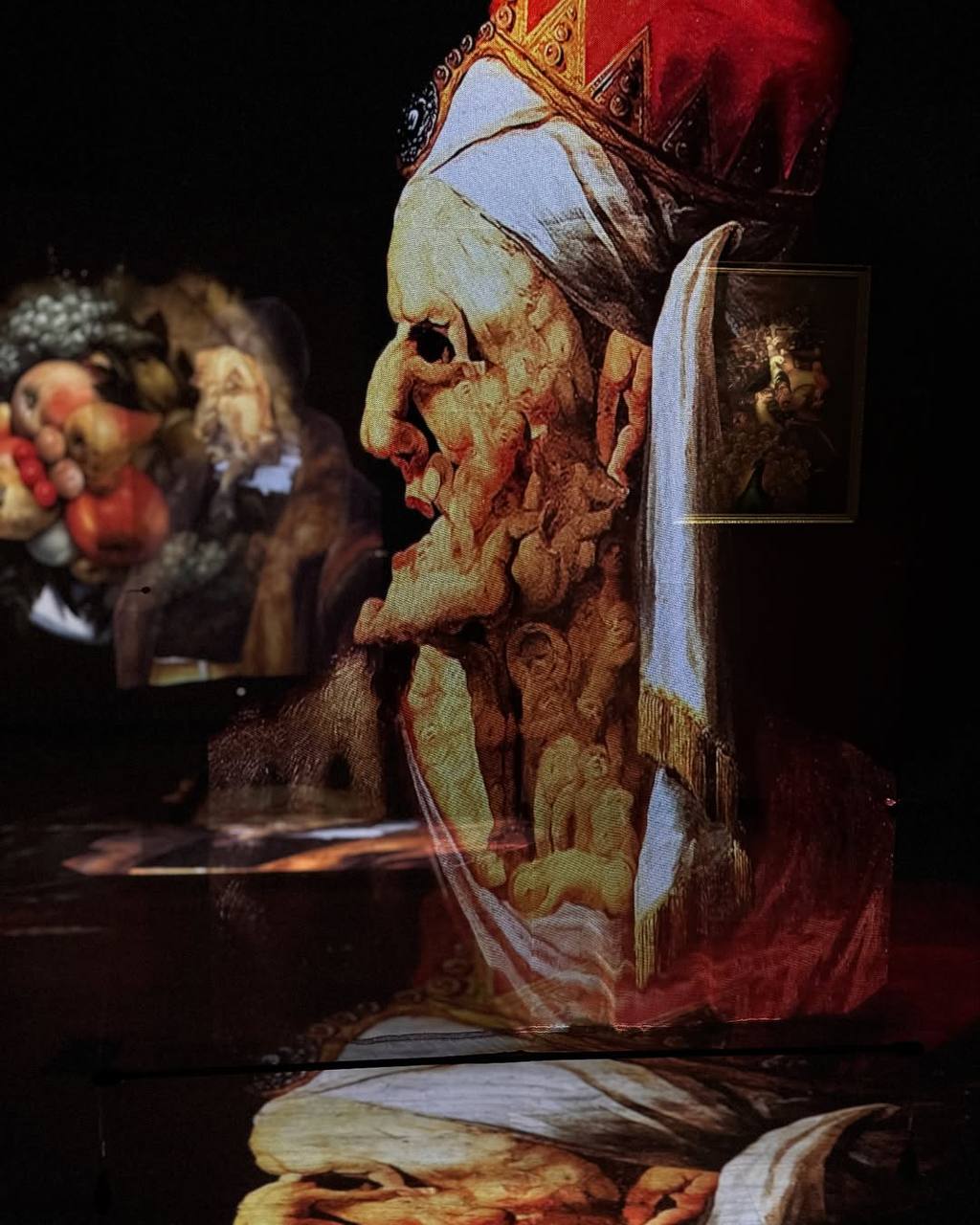 Выставка посвящена работам Джузеппе Арчимбольдо — художника XVI века, известного своими аллегорическими портретами, собранными из предметов и природных форм.