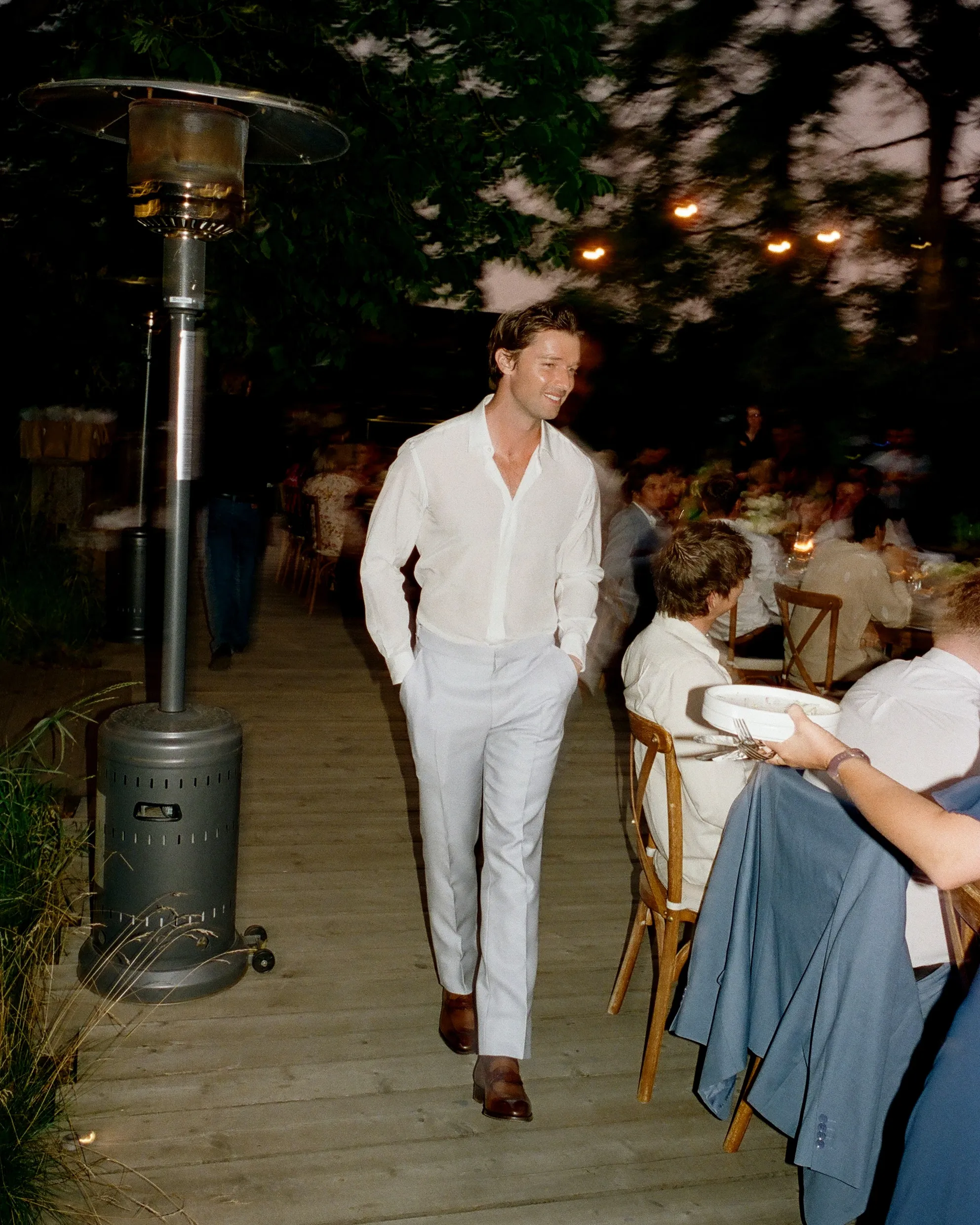 В четверг, 4 сентября, пара устроила камерный ужин‑репетицию в кругу семьи, на котором Эбби была в платье от модного дома Zimmerman. Патрик выбрал костюм Tom Ford нежно‑голубого оттенка.
